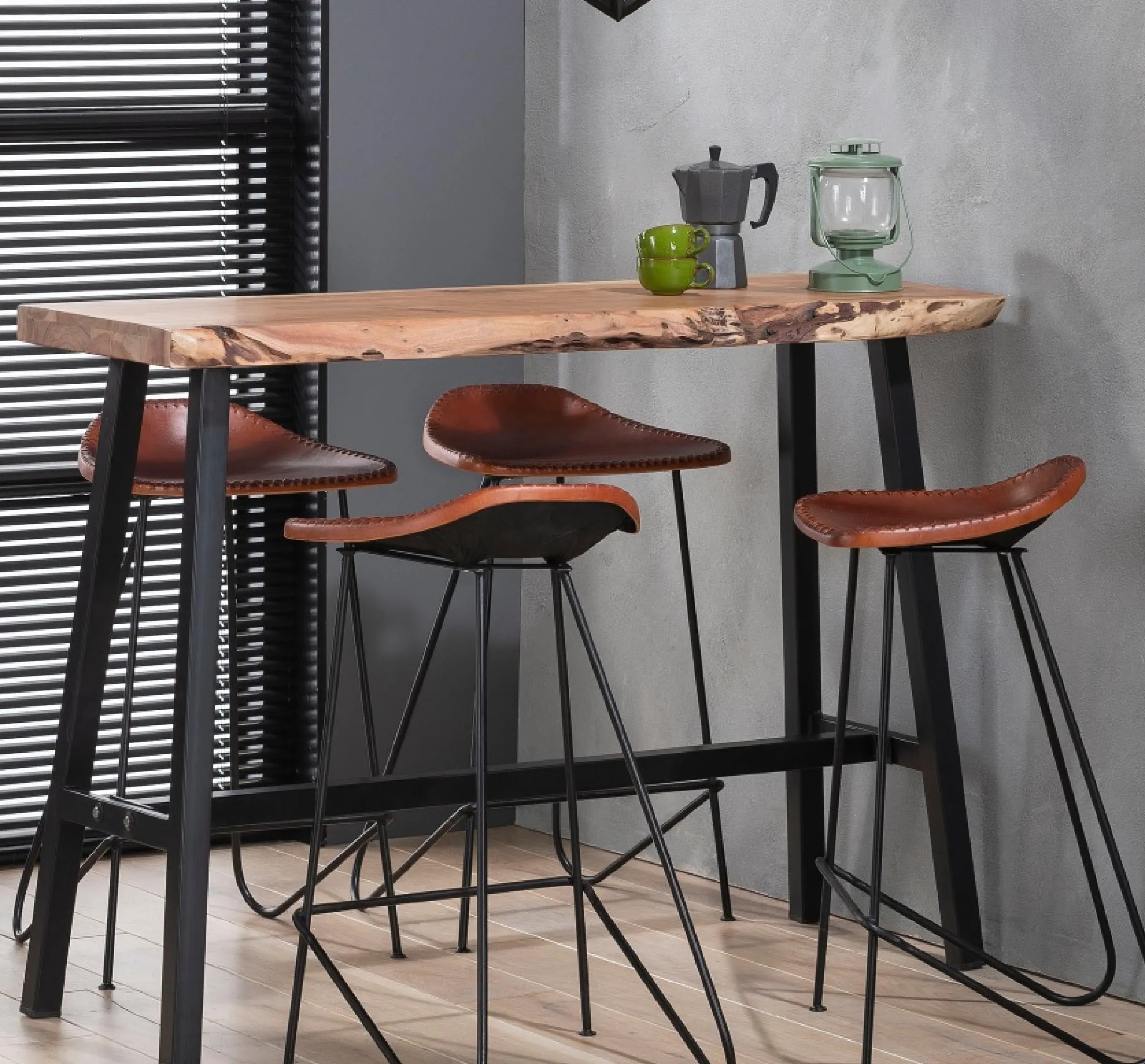 Der Esstisch Wood ist mit seinem Maß ein perfekter Begleiter in kleinen Küchen oder Esszimmern und bietet ausreichend Platz um die Mahlzeiten allein oder mit der Familie zu genießen. Durch die Höhe verbreitet er den Flair eines Cafes, das Material und Design kommt im Industrial-Look daher. Passend dazu haben wir auch die Barhocker im Programm.
