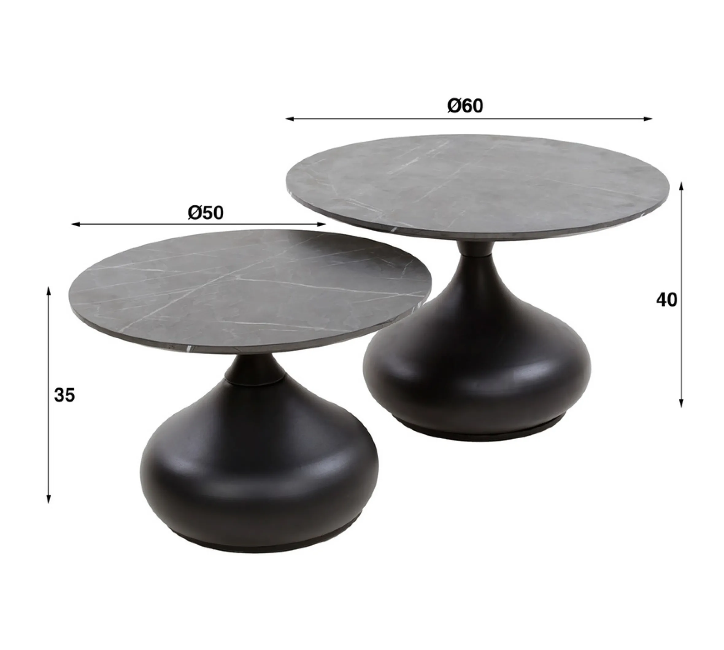 Couchtisch 2er Set Black Drops Melamin in Keramikoptik