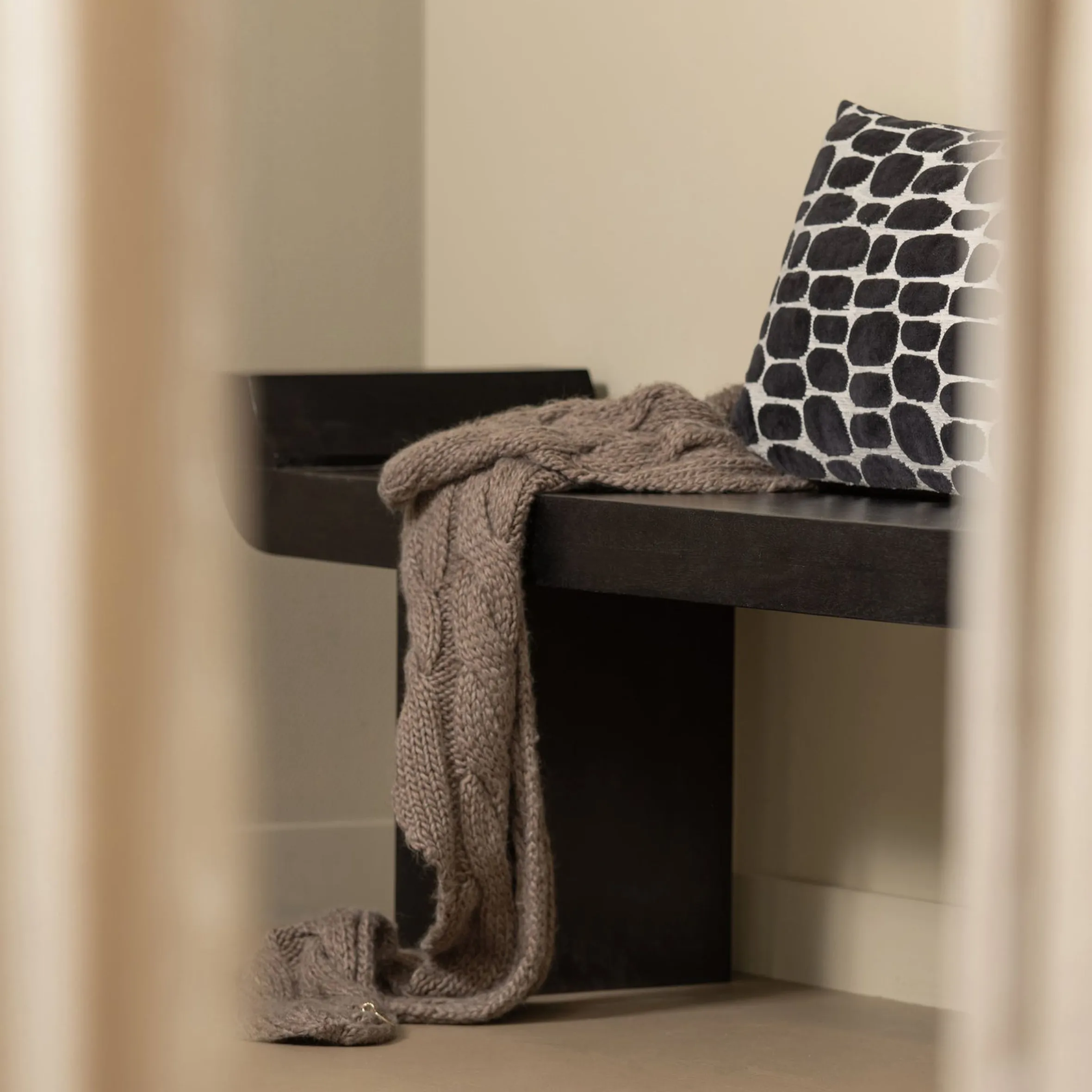 Diese außergewöhnliche Sitzbank aus hochwertigem Mangoholz verbindet minimalistisches asiatisches Design mit der robusten Schönheit eines natürlichen Materials. Die dunkle, matte Oberfläche betont die einzigartige Maserung des Mangoholzes und verleiht der Bank einen zeitlosen und modernen Charakter.