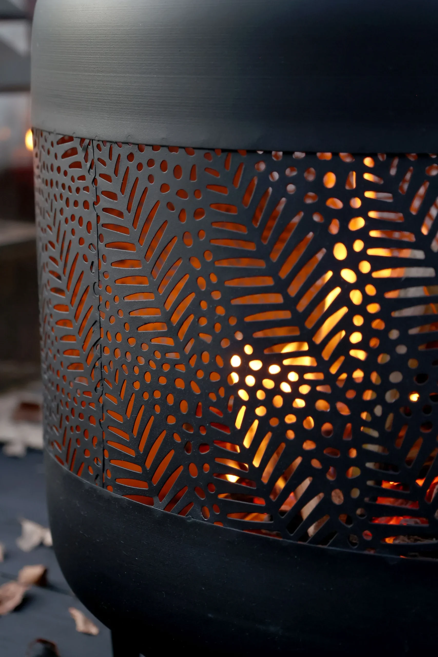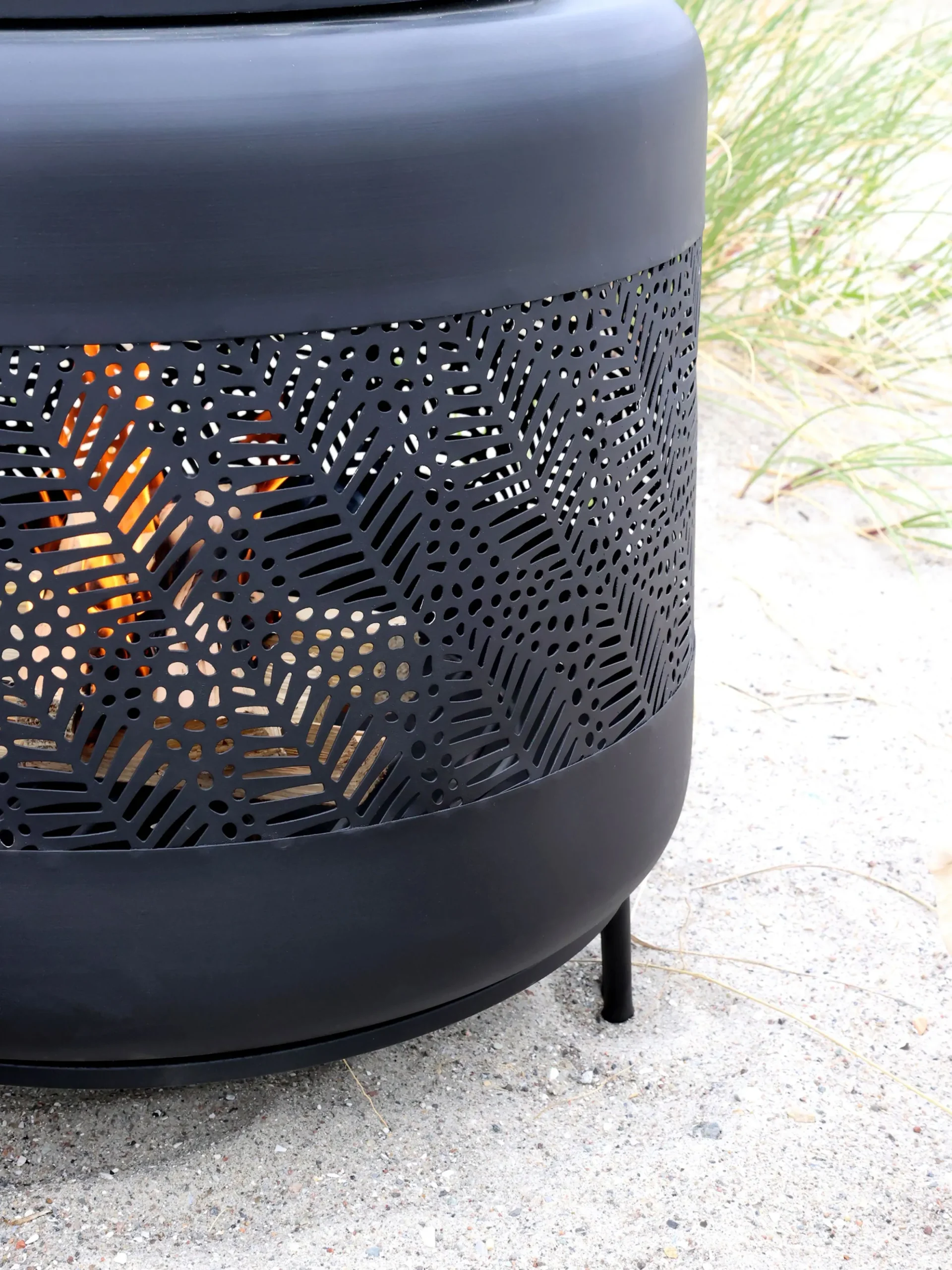 Diese stilvolle und robuste Feuerstelle bringt Wärme und Atmosphäre in Ihren Garten oder auf Ihre Terrasse. Hergestellt aus langlebigem, schwarzem Eisen überzeugt sie durch ihr modernes Lochstahldesign mit stabilen Standfüßen. Das schön gestaltete Gitterkonstruktion sorgt für ein sicheres und beeindruckendes Flammenspiel, während der integrierte Kaminabzug Rauch optimal nach oben ableitet.