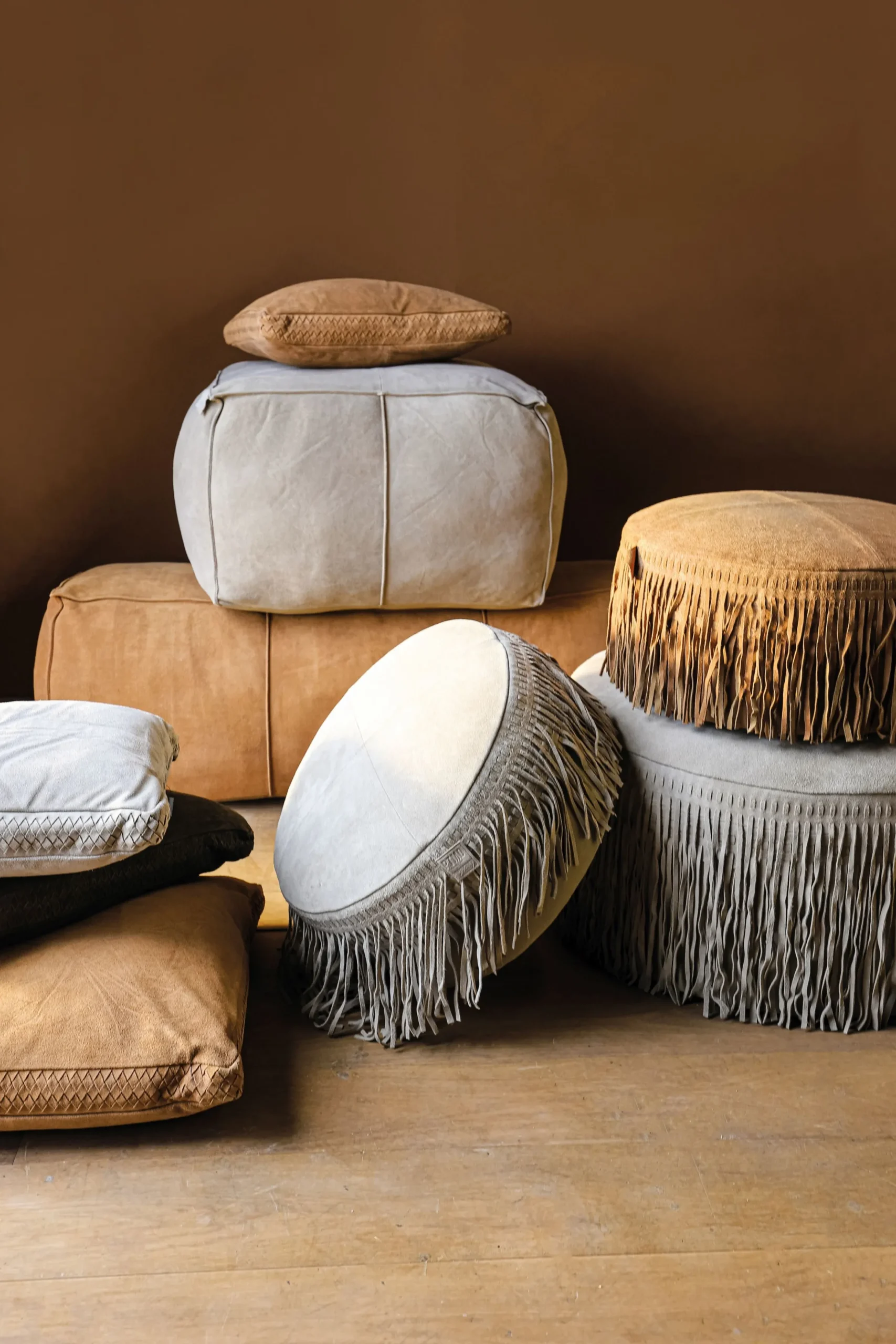 Rustikal und markant ist das Motto des Lederhockers Carla, der ideal in ein stylishes Loft oder auch in eine im Kolonial-Stil eingerichtete Wohnung passt. Gemütlich die Füße hochlegen oder eine Sitzgelegenheit mehr, wenn mal wieder unerwartet Gäste erscheinen – der Allrounder, aus edlem Leder gefertigt, ist ein unverzichtbarer Begleiter, der bei jeder Gelegenheit eine gute Figur macht. Die Fransen lassen zusätzlich Retro-Charme aufkommen.