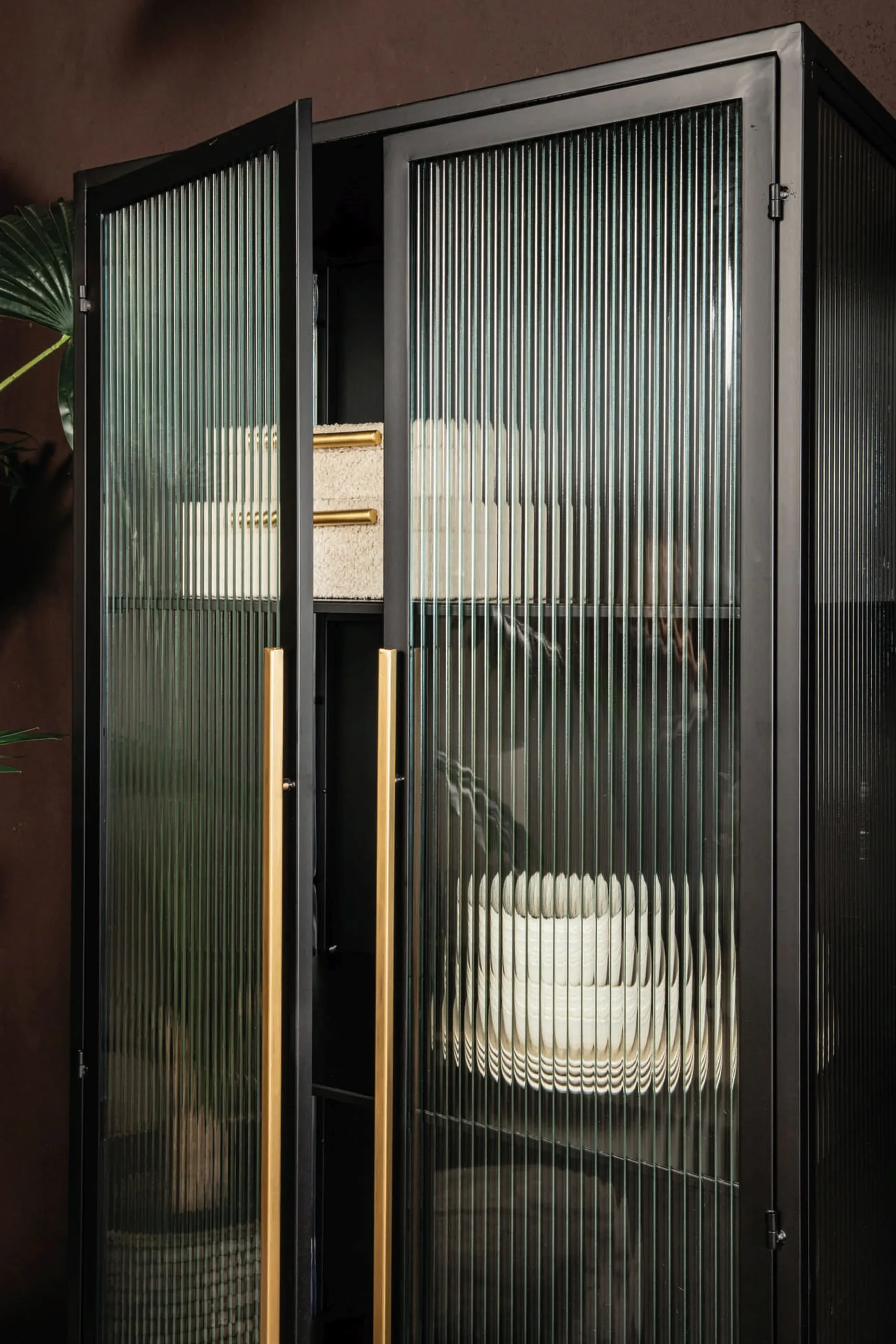 Industrial Vitrine Caeleen Metall mit geriffeltem Glas