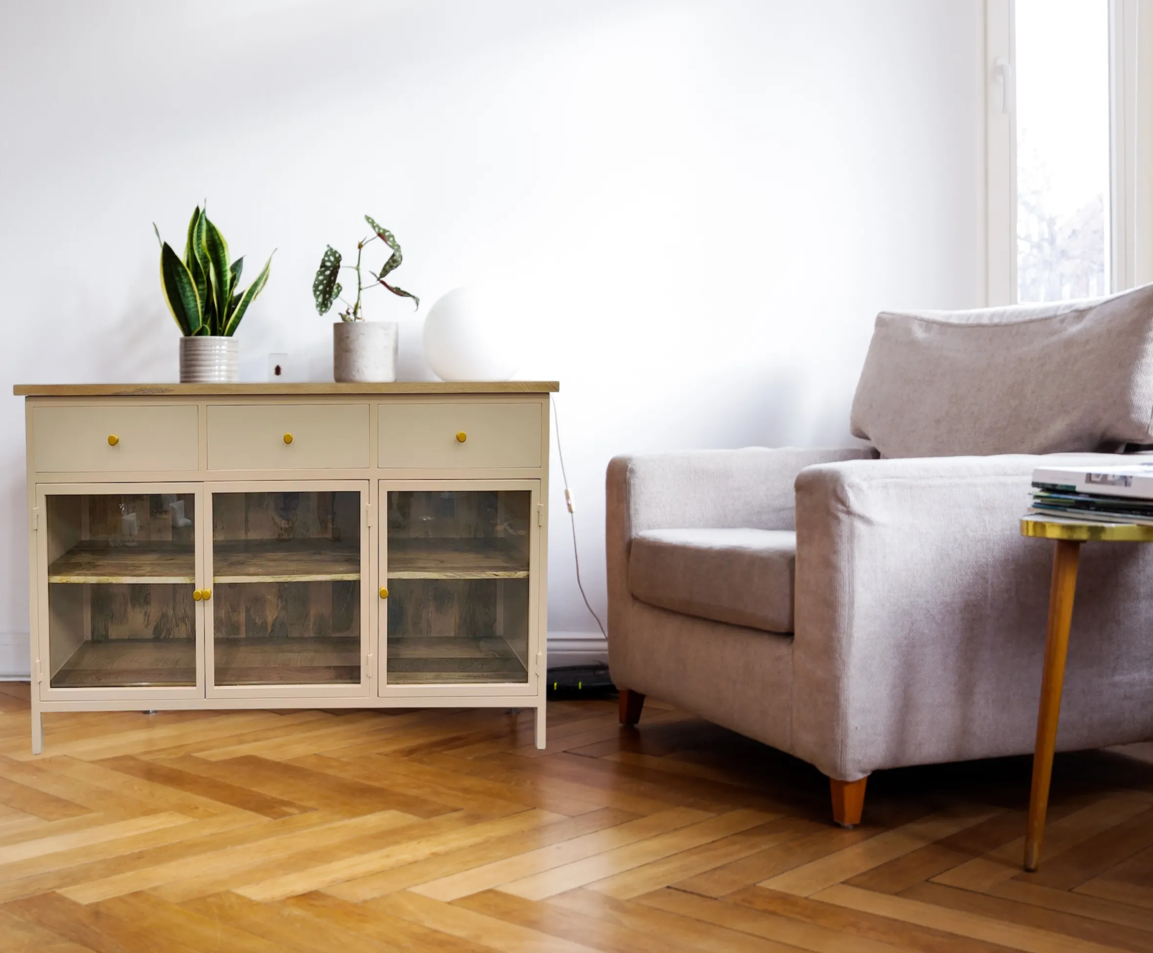 Landhaus Sideboard Provence Metallkorpus Holz Champagner 160