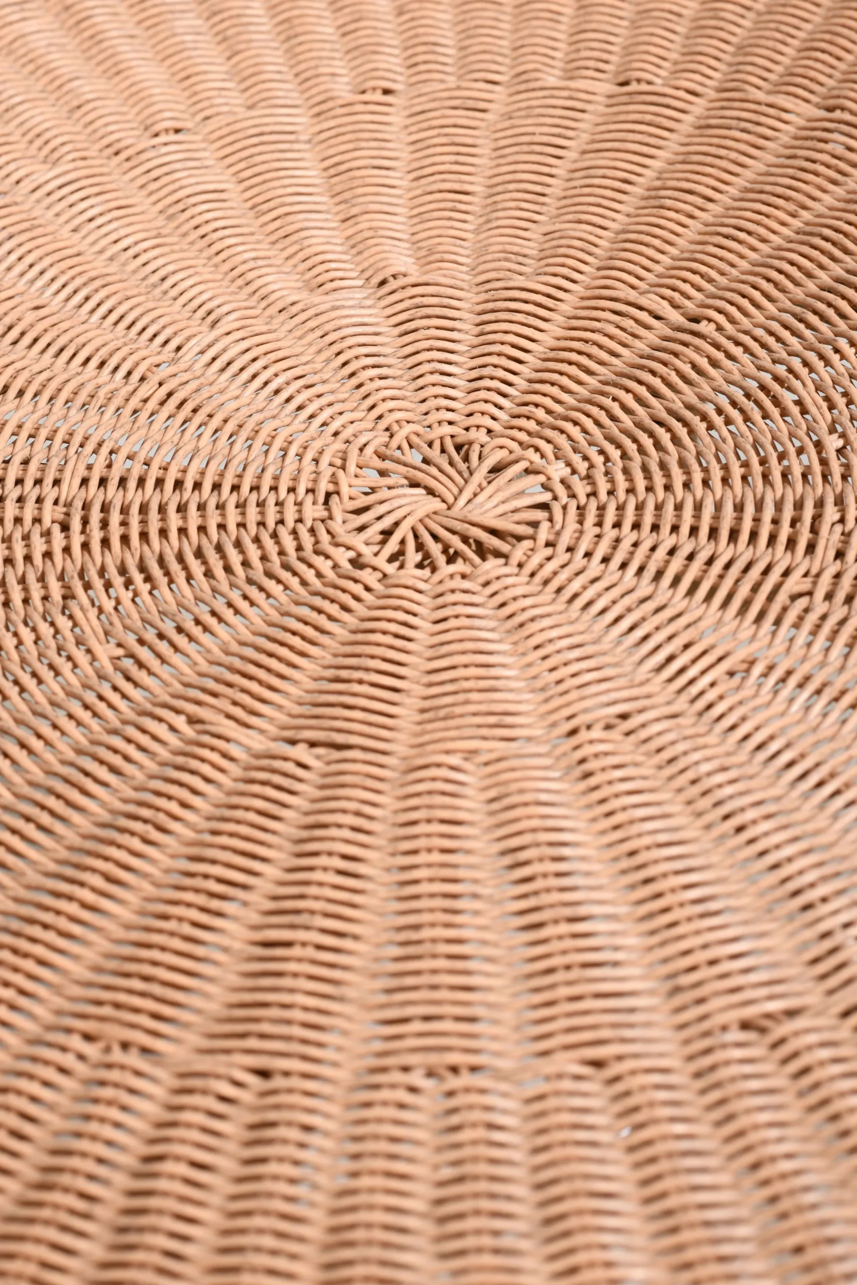 Runder Esstisch mit toller geflochtener Tischplatte, der sowohl drinnen wie draußen ein Urlaubsgefühle aufkommen lässt! Die gekonnt geflochtenen Polyethylenseile in toller Rattanoptik formen den Tisch zu einem Hingucker der ideal zu unseren Cabana Stühlen und Sesseln passt. Die stabilen lackierten Metalleine geben dem Tisch den Stand. Die engmaschige Flechtung ist eine aufwendige Handarbeit die viel Zeit benötigt. Das Ergebnis ist ein hochwertiges Möbel im angesagten Scandi Boho Stil.