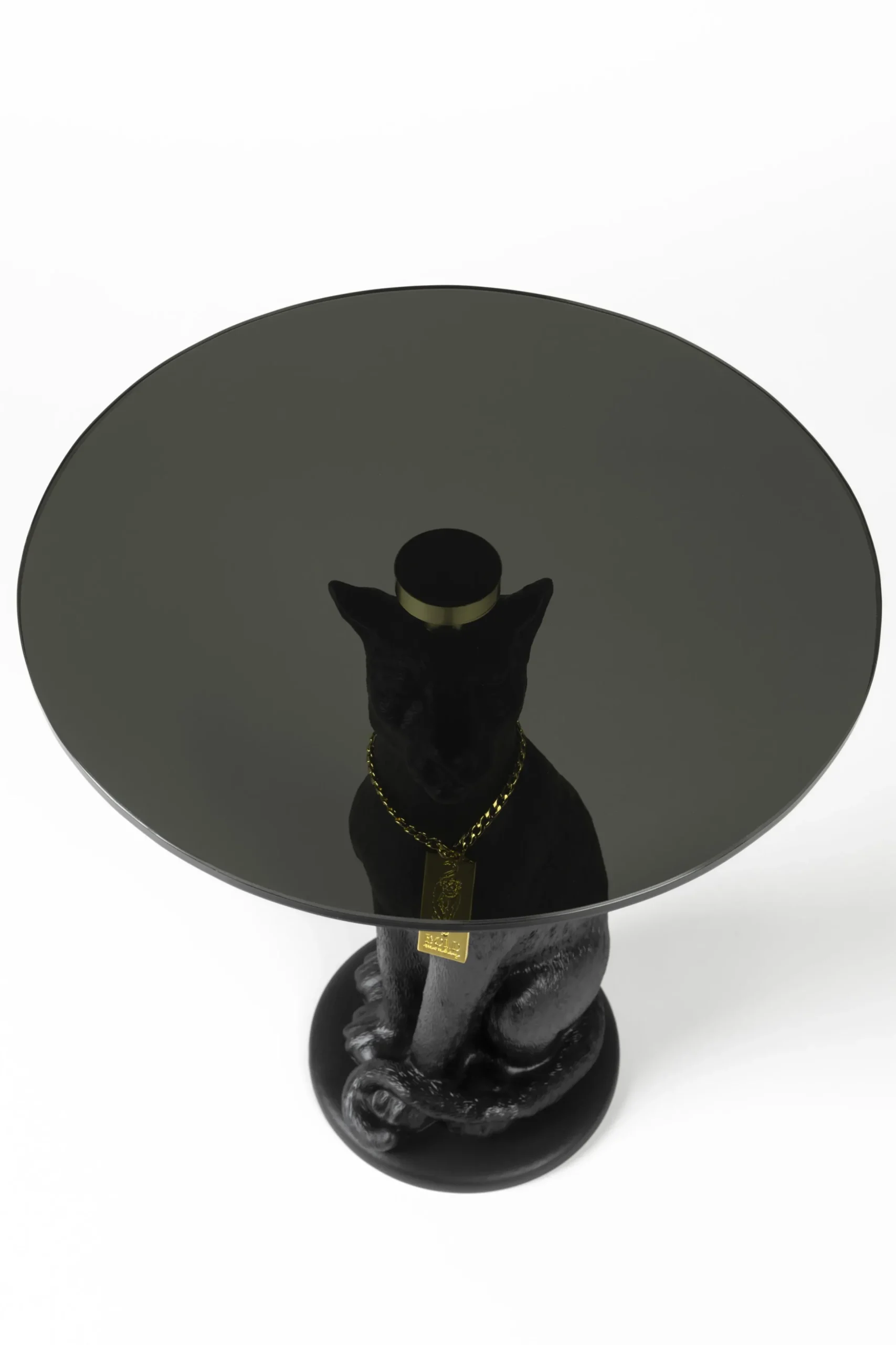 Die Panther sind auf dem Vormarsch, und dieses gewagte Stück bietet Ihnen eine weitere Möglichkeit, auf den Zug der Katzenfans aufzuspringen. Mit einer goldenen Kette versehen, vereinen sich schwarz lackiertes Harz und goldfarbene Galvanisierung in perfekter Harmonie – ganz gleich, welchen Stil Sie bevorzugen. Der Proudly Crowned Panther Beistelltisch verleiht einem bereits eklektisch eingerichteten Raum einen Hauch von Spaß oder wird zu einem einzigartigen Blickpunkt in einer ansonsten minimalistisch eingerichteten Wohnung. Dieser glamouröse Couchtisch ist ein kultiges Sammlerstück für jeden Designliebhaber und der Inbegriff des Bold Monkey Stils: extravagantes Design zu einem erschwinglichen Preis.