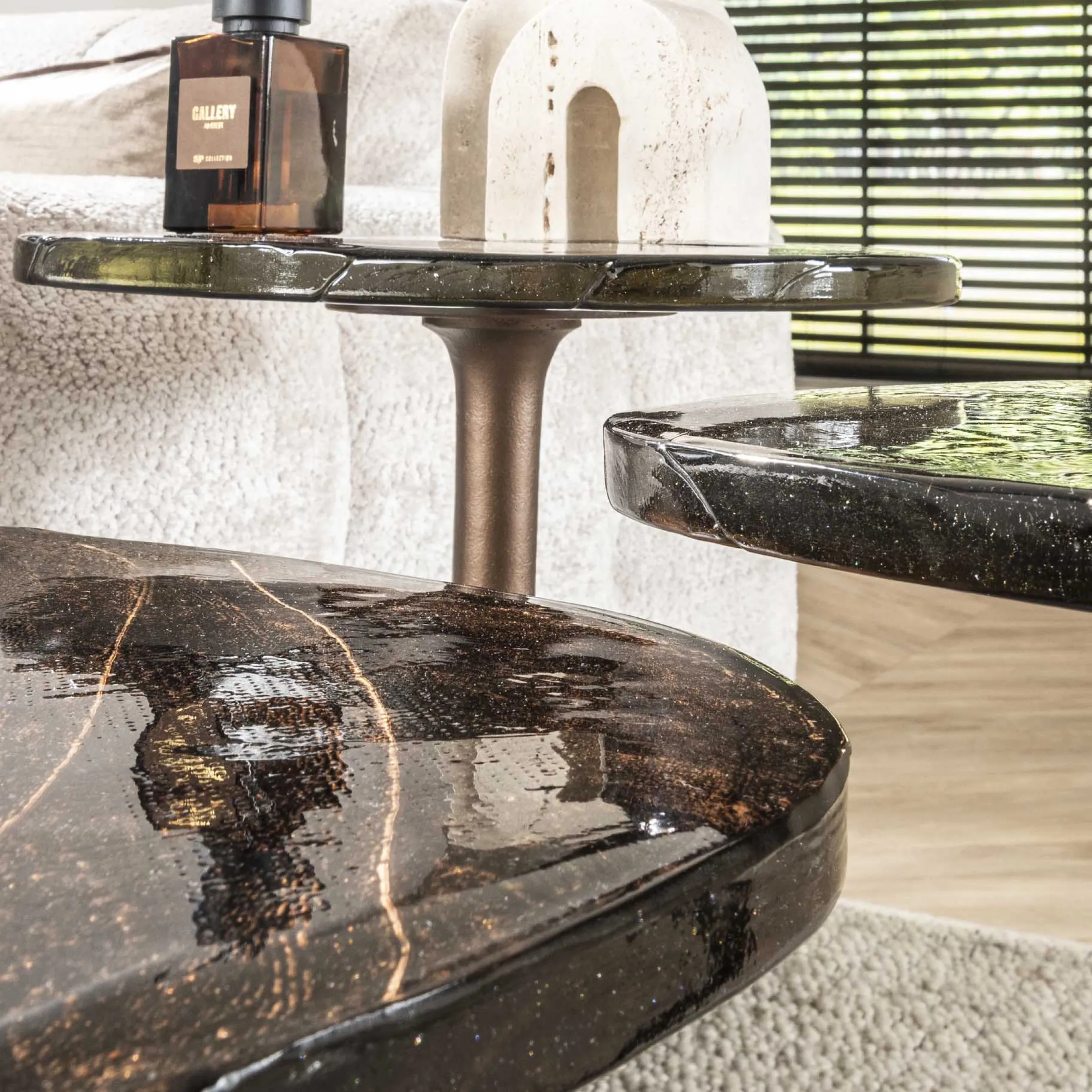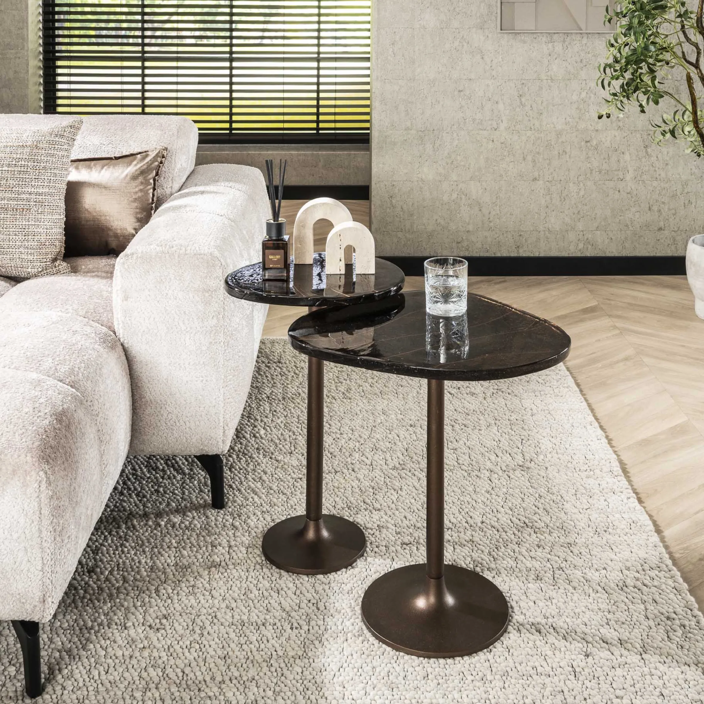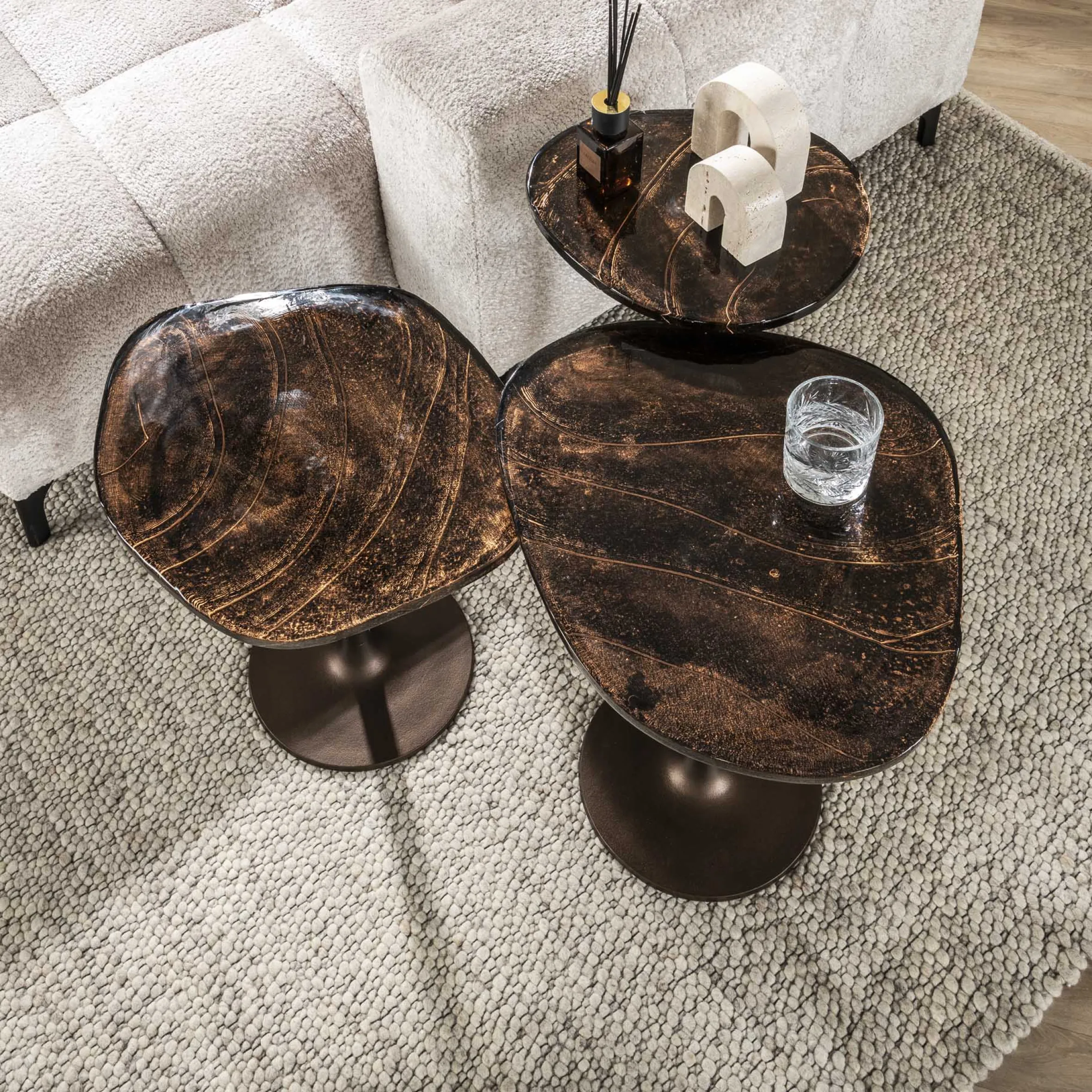 Retro Beistelltische Eclipse Glas Metall Antik-Kupfer L