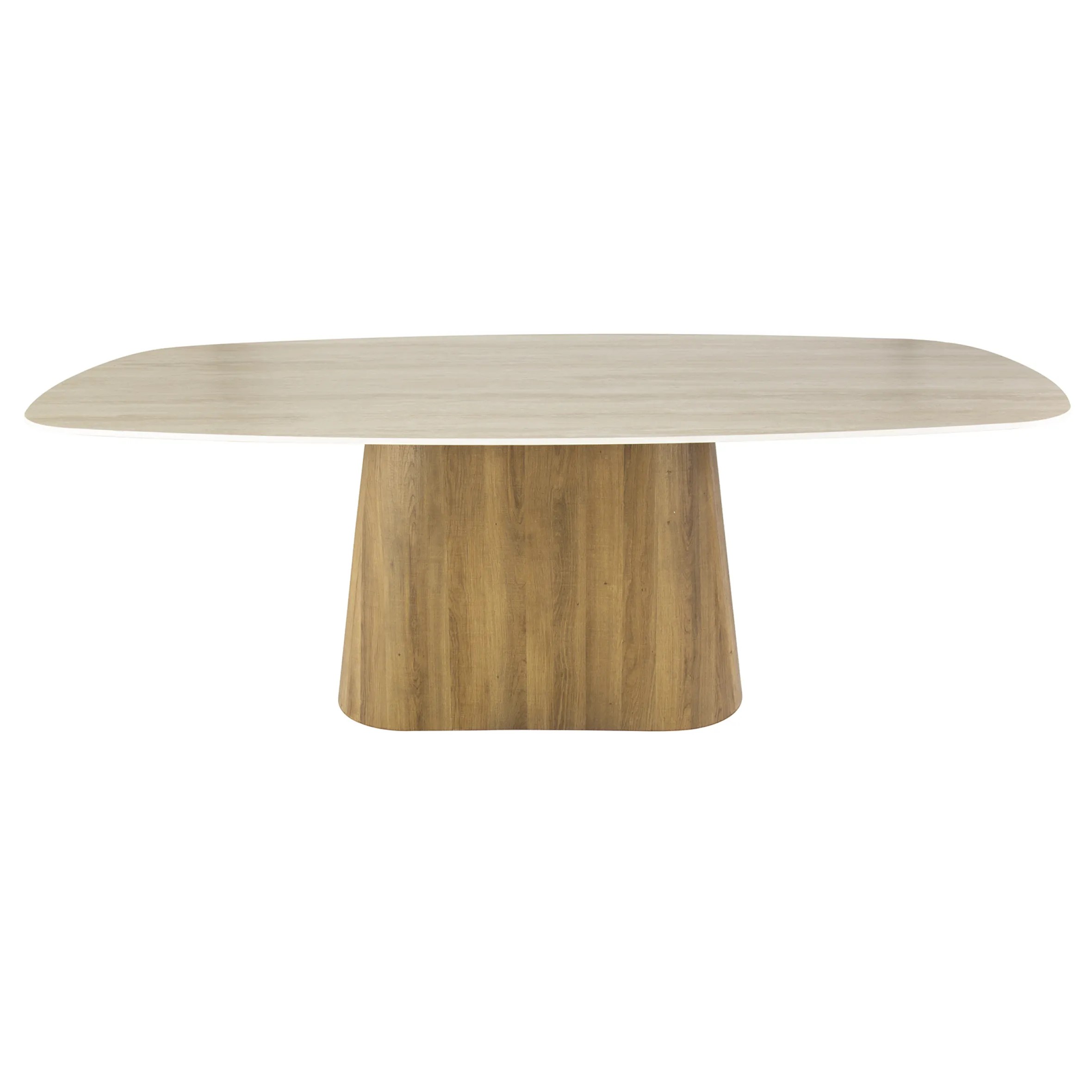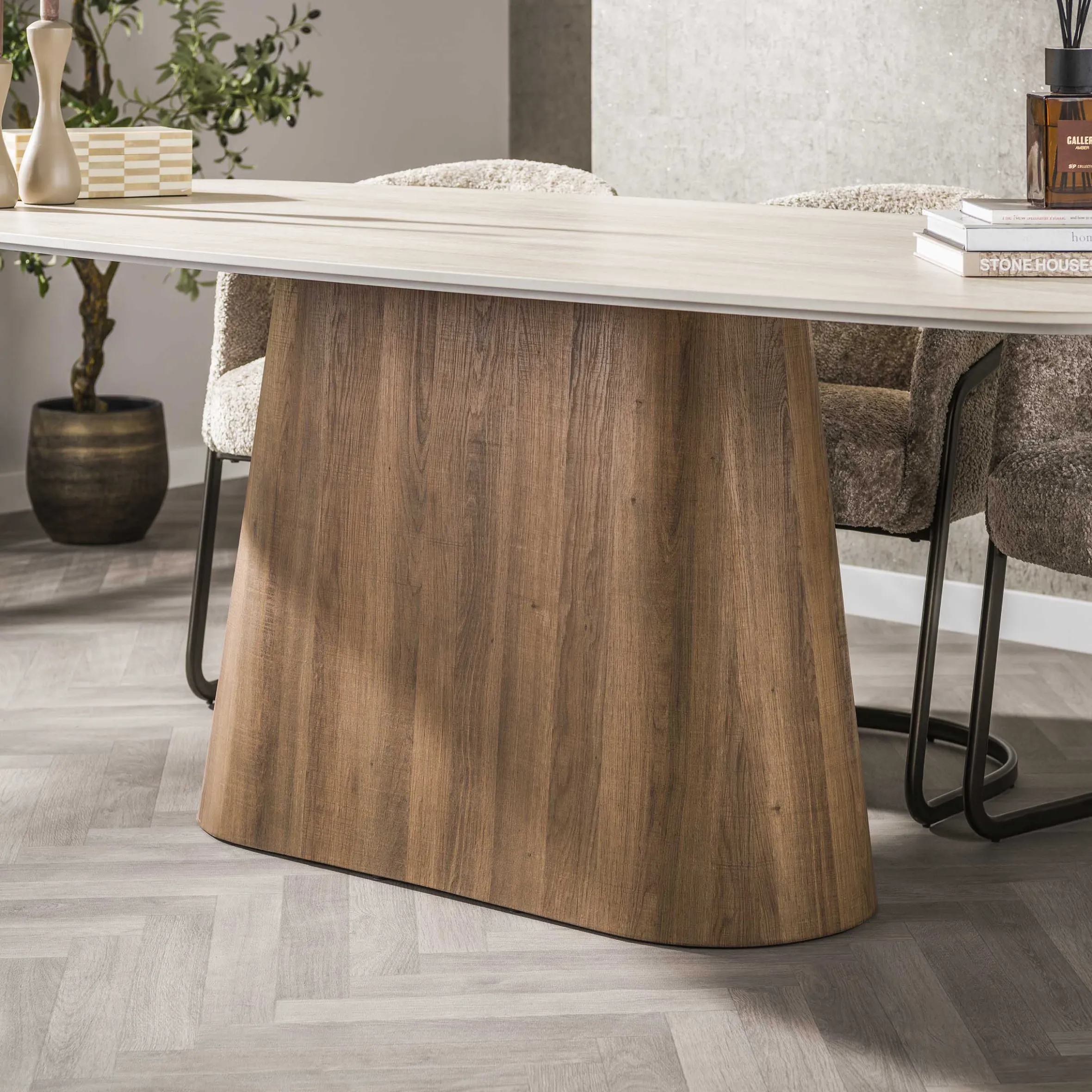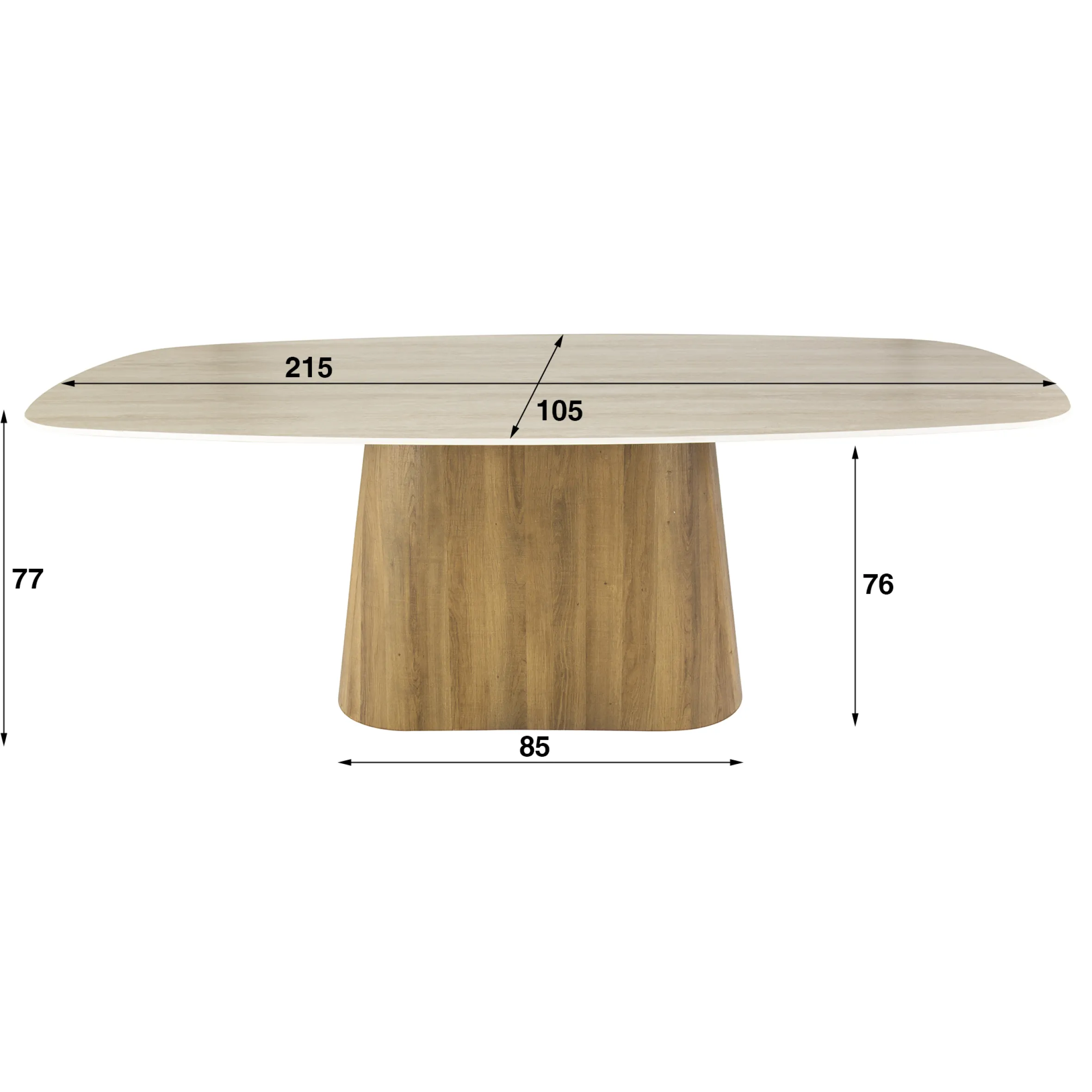 Der kraftvolle, konisch geformte Fuß, mit hochwertigem Melamin in vollendeter Eichenoptik beschichtet, bildet das elegante Fundament dieser Skulptur. Er verleiht dem Tisch eine majestätische Präsenz – beständig, ausgewogen und von zeitloser Schönheit.