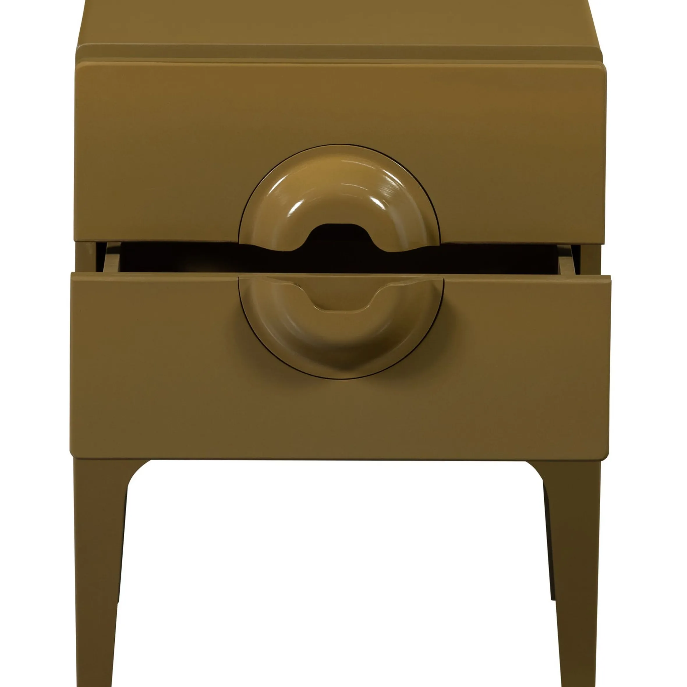 Retro Kommode Nachttisch Merge Olivgrün 2 Schubladen