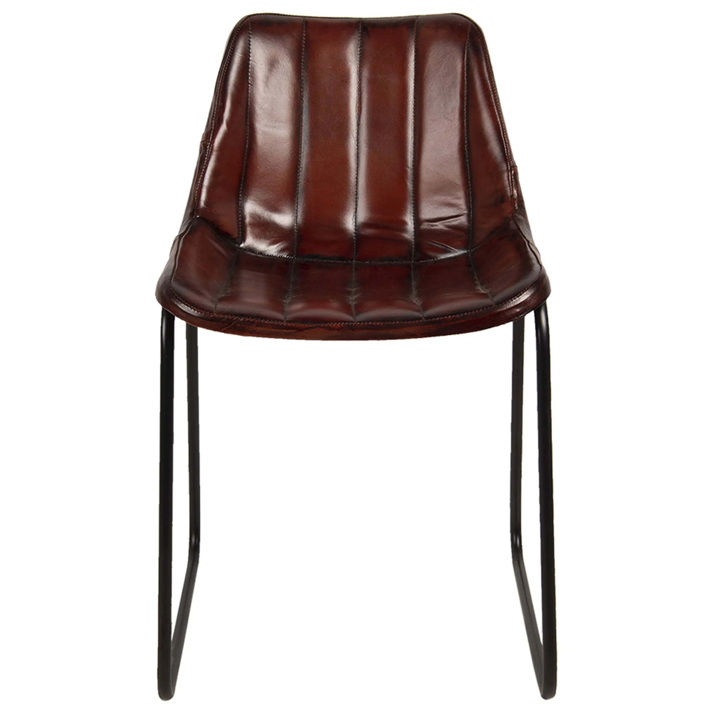 Der Echt-Leder Stuhl Brown Stripes im Retro-Style paßt zu Ihrer Industrial-Style-Einrichtung wie kaum ein Zweiter. Die Kombination der Leder-Sitzschale mit den filigranen Metallbeinen ist unschlagbar. Die rötlich-braune Farbe des Leders ist zeitlos und macht an einem Esstisch, aber auch an jedem anderen Platz eine gute Figur. Angenehm auffallend ist die Streifennaht entlang der Sitzschale. Die bezogene Kunststoffschale liegt auf dem Metallgestell auf und ist somit stabilisiert.