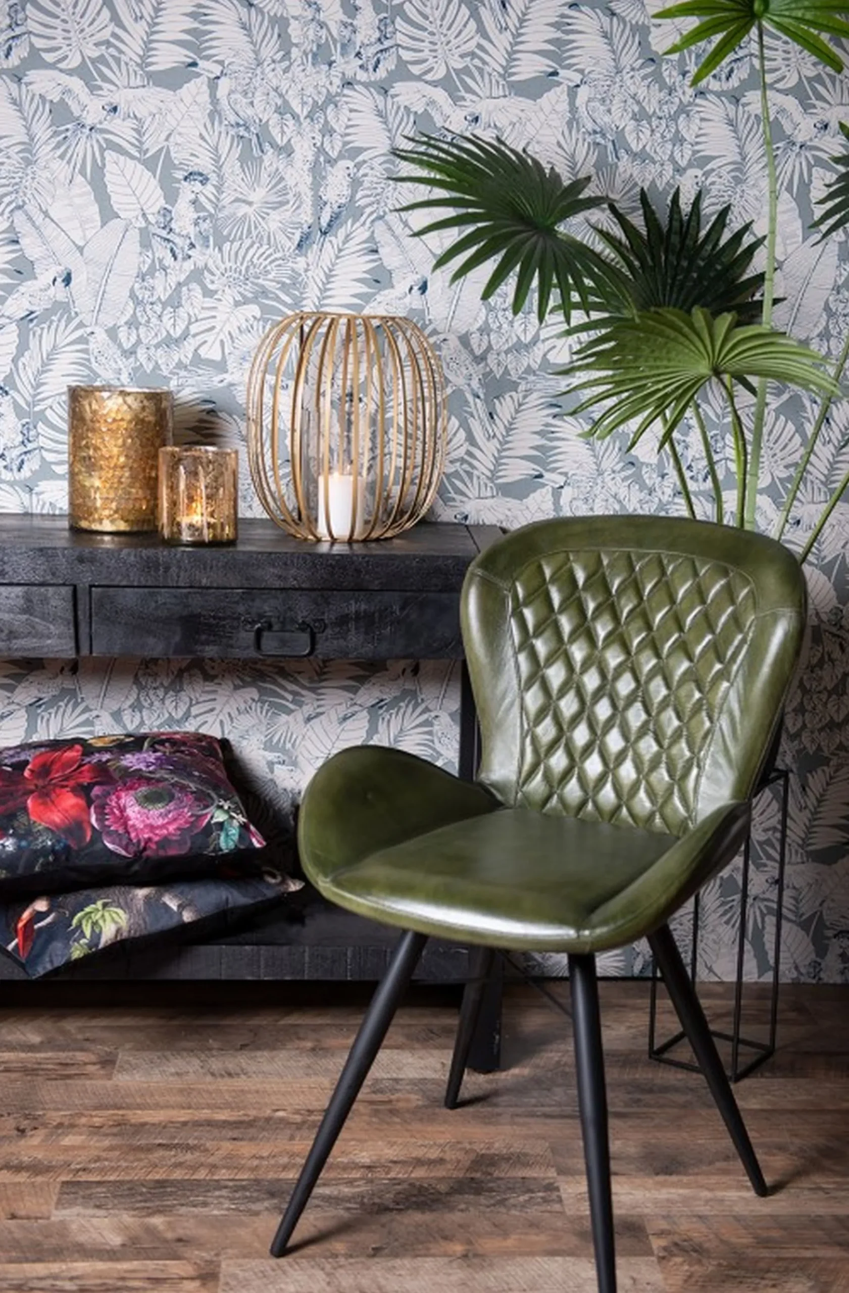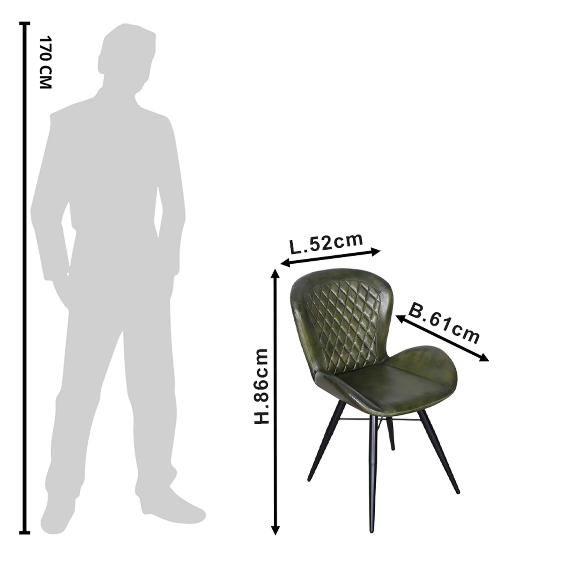 Der Echtleder Stuhl Green mit Rautensteppung im Retro-Style paßt zu Ihrer Industrial-Style-Einrichtung wie kaum ein Zweiter. Die Kombination der Leder-Sitzschale mit den filigranen Metallbeinen ist unschlagbar. Die olive Farbe des Leders ist modern, ausgefallen und macht an einem Esstisch, aber auch an jedem anderen Platz eine gute Figur. Angenehm auffallend ist die Steppung der Sitzschale. Zusätzliches bequemes Highlight sind die hervorgehobenen Seiten des Sitzbereichs.