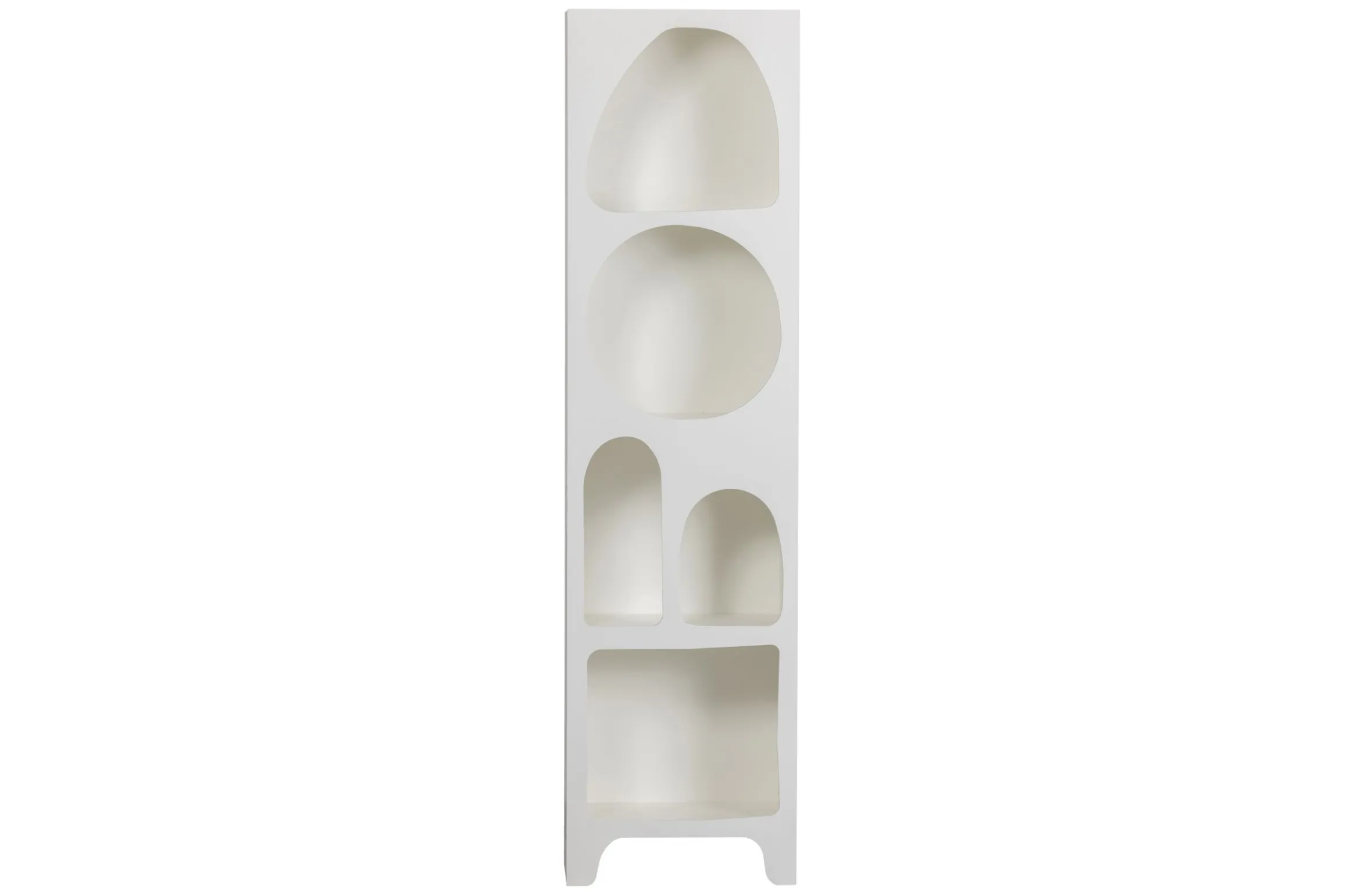 Mit seiner organischen, sanften Form sorgt das Regal Organic Caz für Natürlichkeit und setzt mit seinem einzigartigen Design ein Statement. Die weichen und runden Formen erinnern an eine Steinwand, die von Wind, Wasser und Sand ausgehöhlt wurde. Mit diesem weißen Regal aus der niederländischen WOOOD-Kollektion holen Sie sich ein trendiges und modernes Möbelstück in Ihr Zuhause. Der Schrank Caz ist aus Sperrholz mit weißer Lackierung gefertigt und hat entweder 5 oder 7 Fächer. Durch die großzügigen Abmessungen ist der Schrank ein echter Blickfang, ob einzeln oder im Set. Zum Schutz Ihres Bodens und zum kleinen Höhenausgleich wird empfohlen Filzgleiter unter den Beinen zu befestigen.