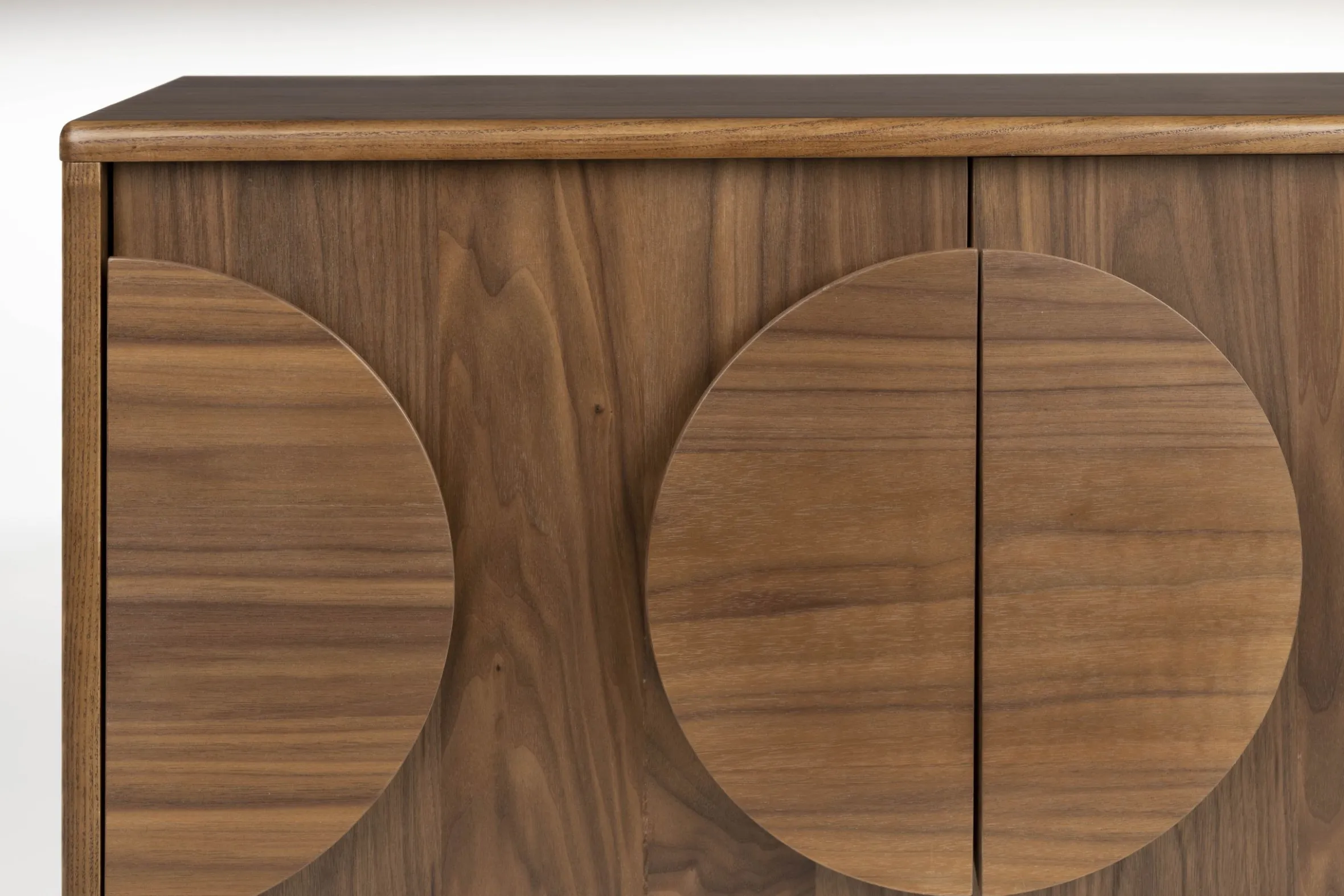 Entdecken Sie mit dem Sideboard Groove großzügigen Stauraum, ohne Kompromisse beim Stil einzugehen. Die runden Holzelemente an den Türen und die zierlichen, bogenförmigen Beine sorgen für eine einzigartige Note. Groove ist die perfekte Verschmelzung von Stil und Funktionalität und fügt sich mühelos in jeden Raum ein. Durch das Nebeneinanderstellen verschiedener Sideboards wird das Muster der Türen fortgesetzt. Die Kommoden sind aus natürlichem Holzfurnier gefertigt und werden zum Schutz ihrer Schönheit mit Öl gebeizt. Groove ist in verschiedenen Farben und Größen erhältlich, so dass für jeden Stil und Geschmack etwas dabei ist.