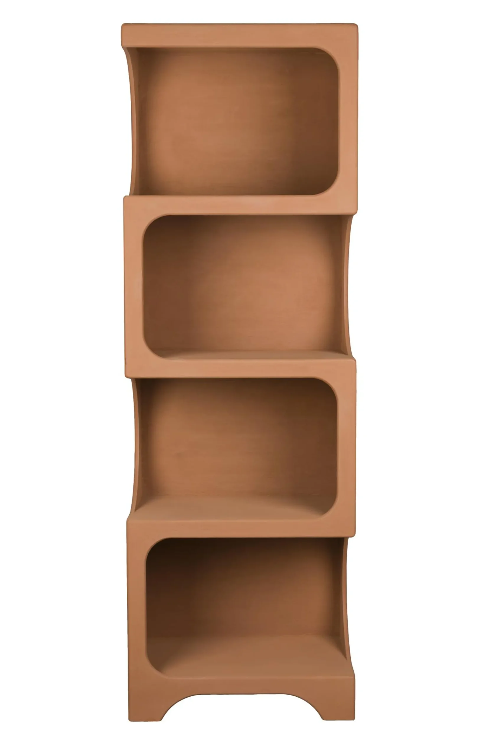Diese Regale aus hochwertigem MDF sind weit mehr als reine Aufbewahrungsmöbel – sie sind ein Statement. Mit ihrer organisch abgerundeten Formensprache wirken sie fast wie kleine Architekturen im Raum, weich und zugleich kraftvoll. Die warm schokoladig-erdige Oberfläche unterstreicht ihren skulpturalen Charakter und bringt eine natürliche Behaglichkeit in jedes Interieur.