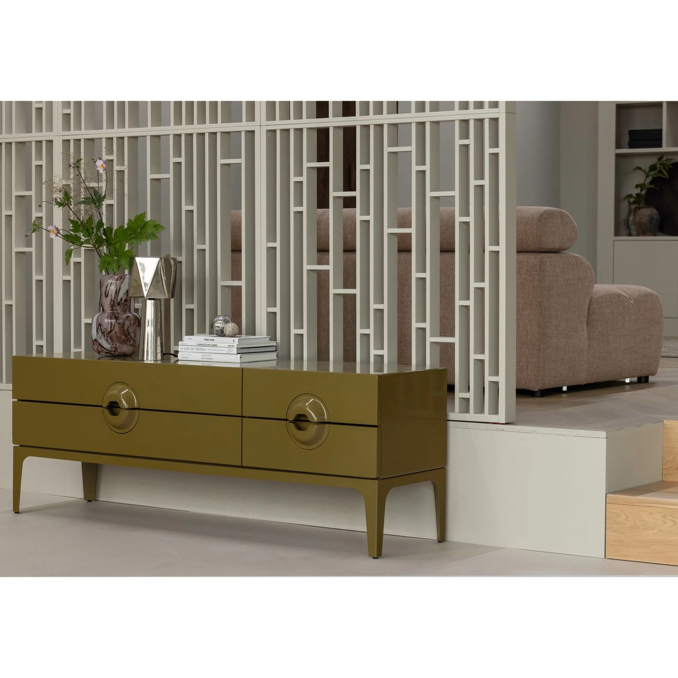 Retro TV-Board Lowboard Merge Olivgrün