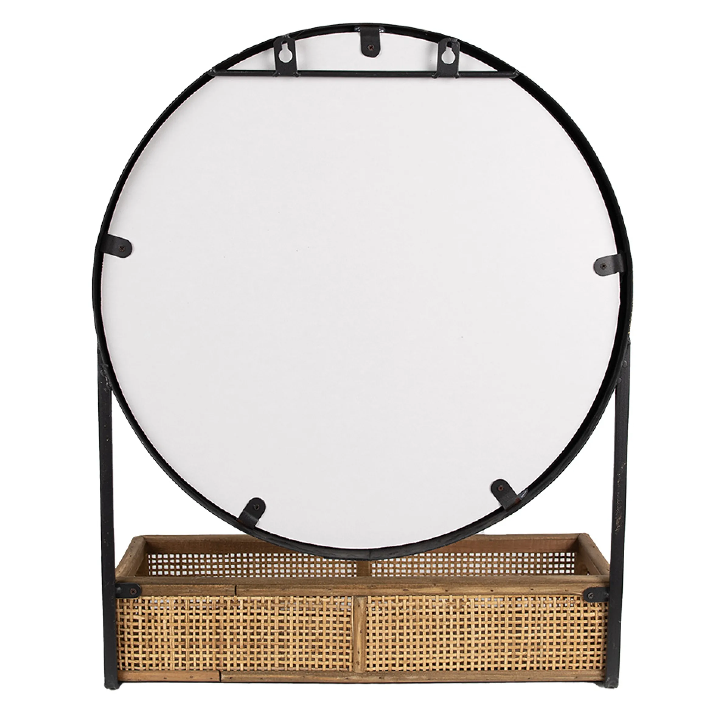 Retro Wandspiegel Industrial Round mit Rattan-Korb