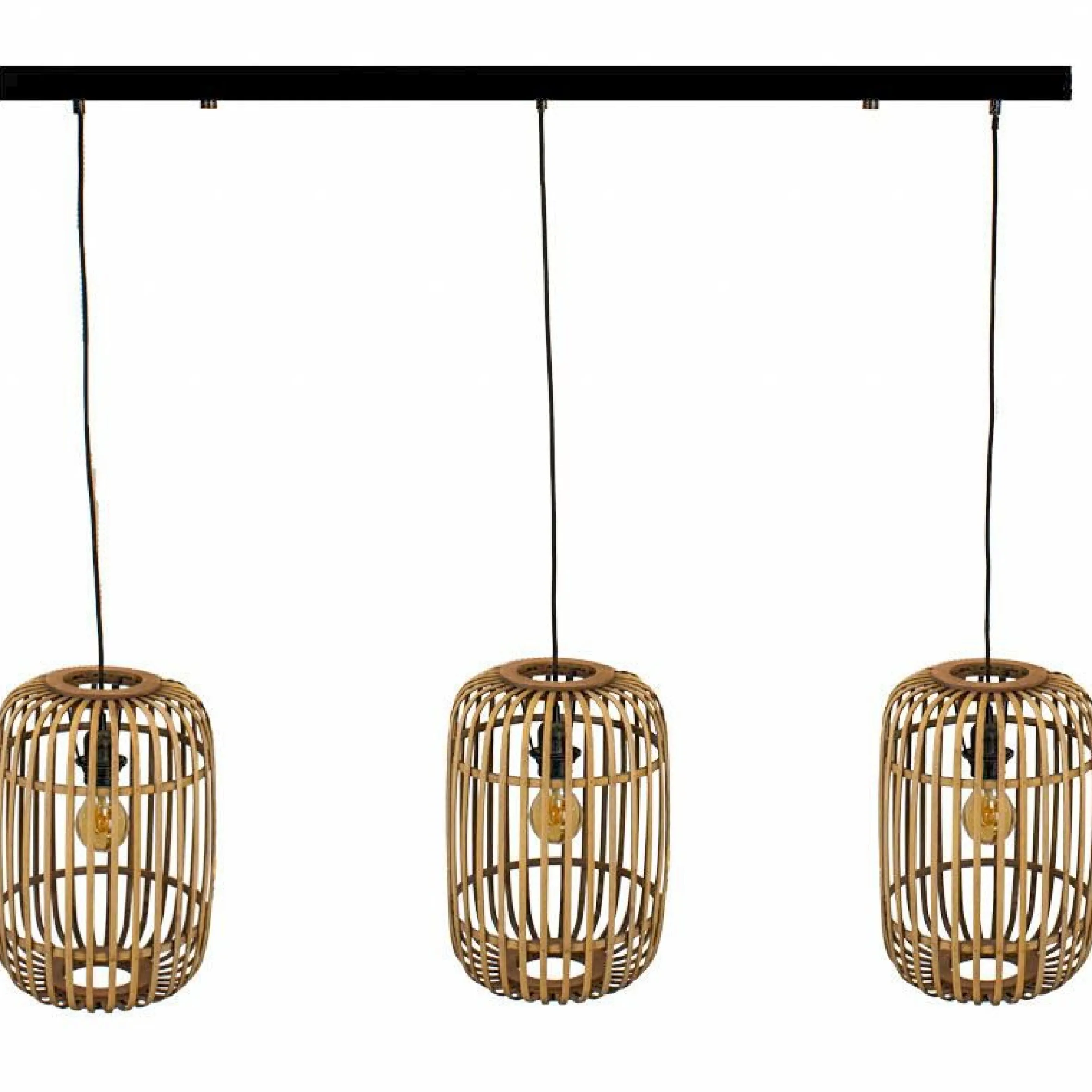 Ibiza ist eine Hängelampe, die eine angenehme Atmosphäre im Raum schafft. Sie ist aus Rattan gefertigt und vereint natürliche Materialien und ein einzigartiges Design zu einem fesselnden Ganzen. Die drei kunstfertig gearbeiteten Lampenschirme aus Holz geben durch das offene Design den Blick auf die Glühlampen frei. So verteilt sich das Licht gleichmäßig im Raum. Auch im ausgeschaltenen Zustand zieht die Lampe durch die schönen Holzschirme die Blicke auf sich. Die Rattanschirme in Kombination mit den Glühfadenbirnen und den Stoffkabeln lässt die Lampe zum wortwörtlichen Highlight Ihres Zuhauses werden.