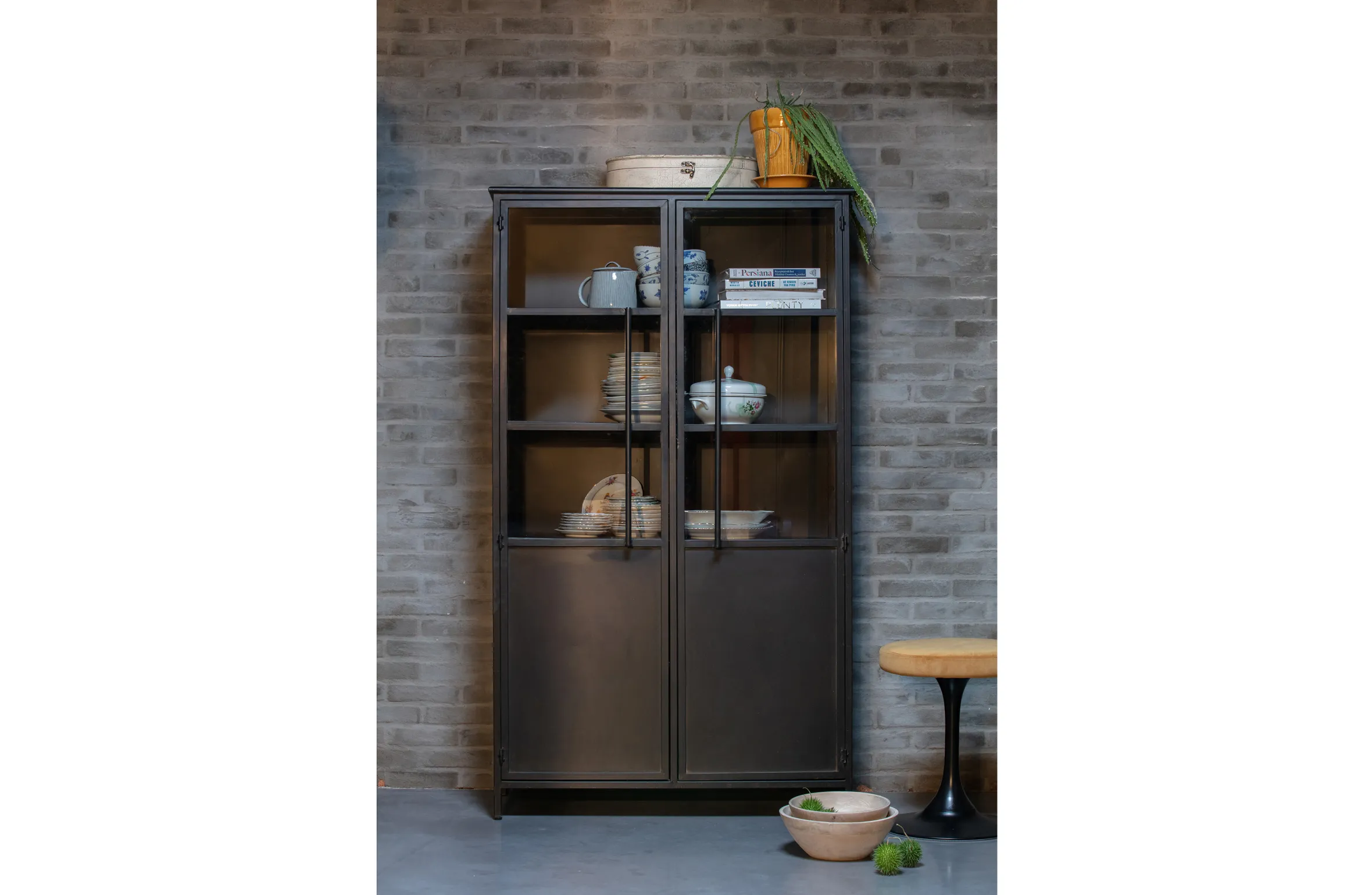 Vitrine Metallschrank Exhibit Industrial Schwarz Metall/Glas 170
