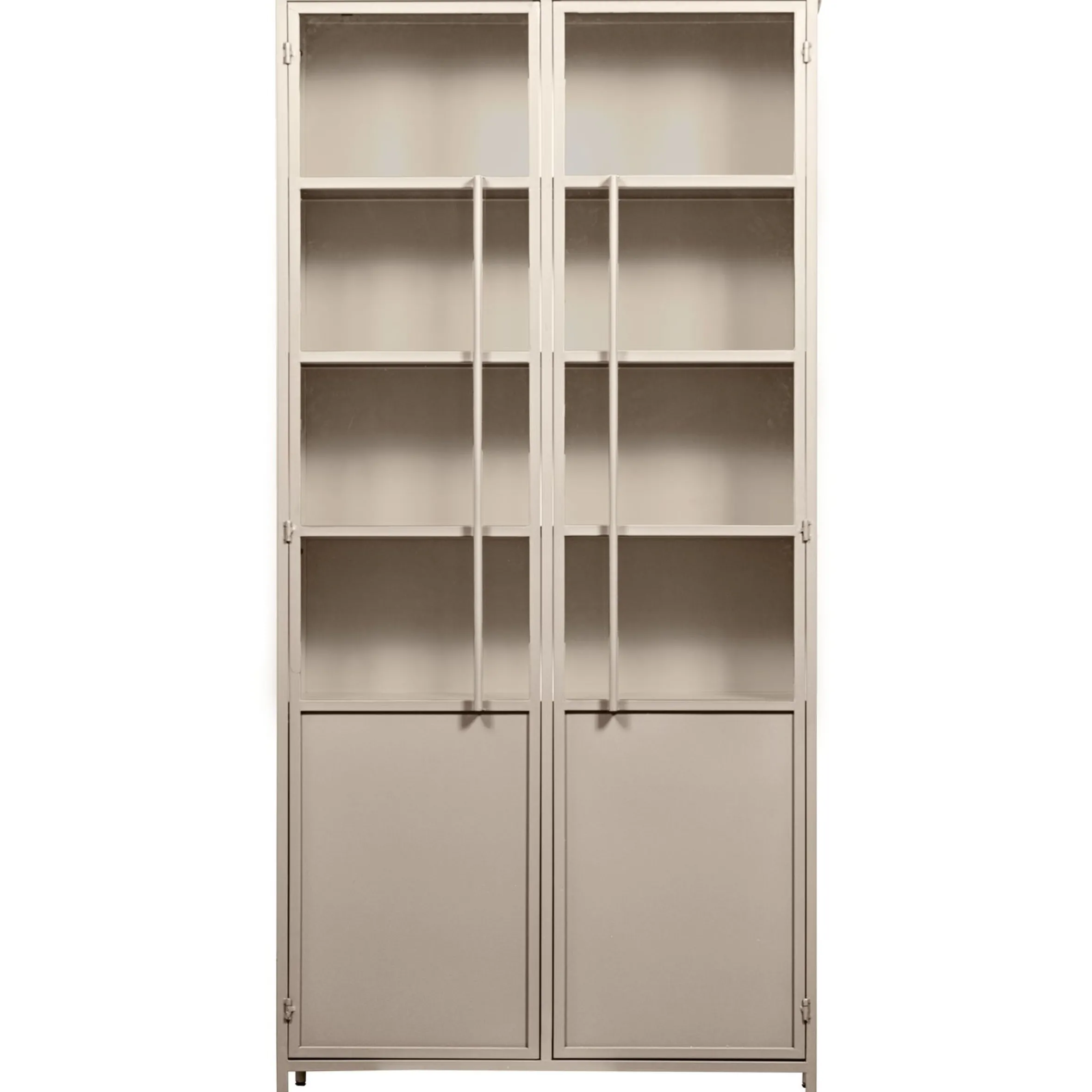 Diese robuste im industrial Style gefertigte Vitrine stammt aus der Kollektion der Firma BePureHome. Sie bietet mit sechs Fächern ausreichend Platz für Gläser, Geschirr oder ähnliches. Die Vitrine ist aus Metall mit einer trendigen, matten Beschichtung gefertigt, die Türen sind mit gehärtetem Glas und stabilen Metallgriffen ausgestattet. Die inneren Regale erstrecken sich über die gesamte Breite. Die Höhe der Fächer beträgt 29-34 cm, die Tragfähigkeit pro Regal 20 kg.