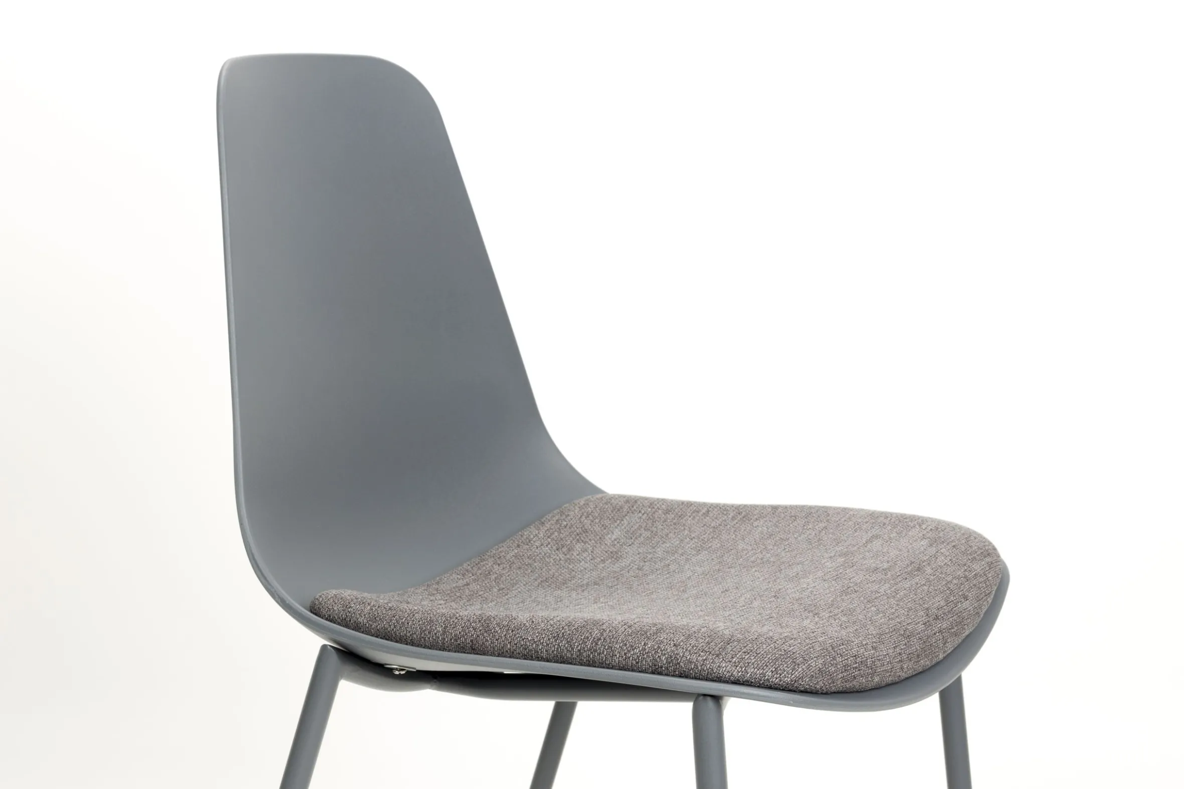 Die gemütlich geformte Kunststoffschale mit einer robusten Stoffsitzfläche bietet optimalen Sitzkomfort und unterstützt Ihre Körperhaltung ideal. Die stabilen Metallbeine verleihen dem Stuhl nicht nur eine robuste Standfestigkeit, sondern auch einen modernen Look. Ob in der Küche, im Esszimmer oder im Büro – dieser Schalenstuhl macht in jedem Raum eine gute Figur. Die dezenten Farbtöne sorgen für eine beruhigende Atmosphäre und lassen sich leicht mit anderen Möbelstücken kombinieren.