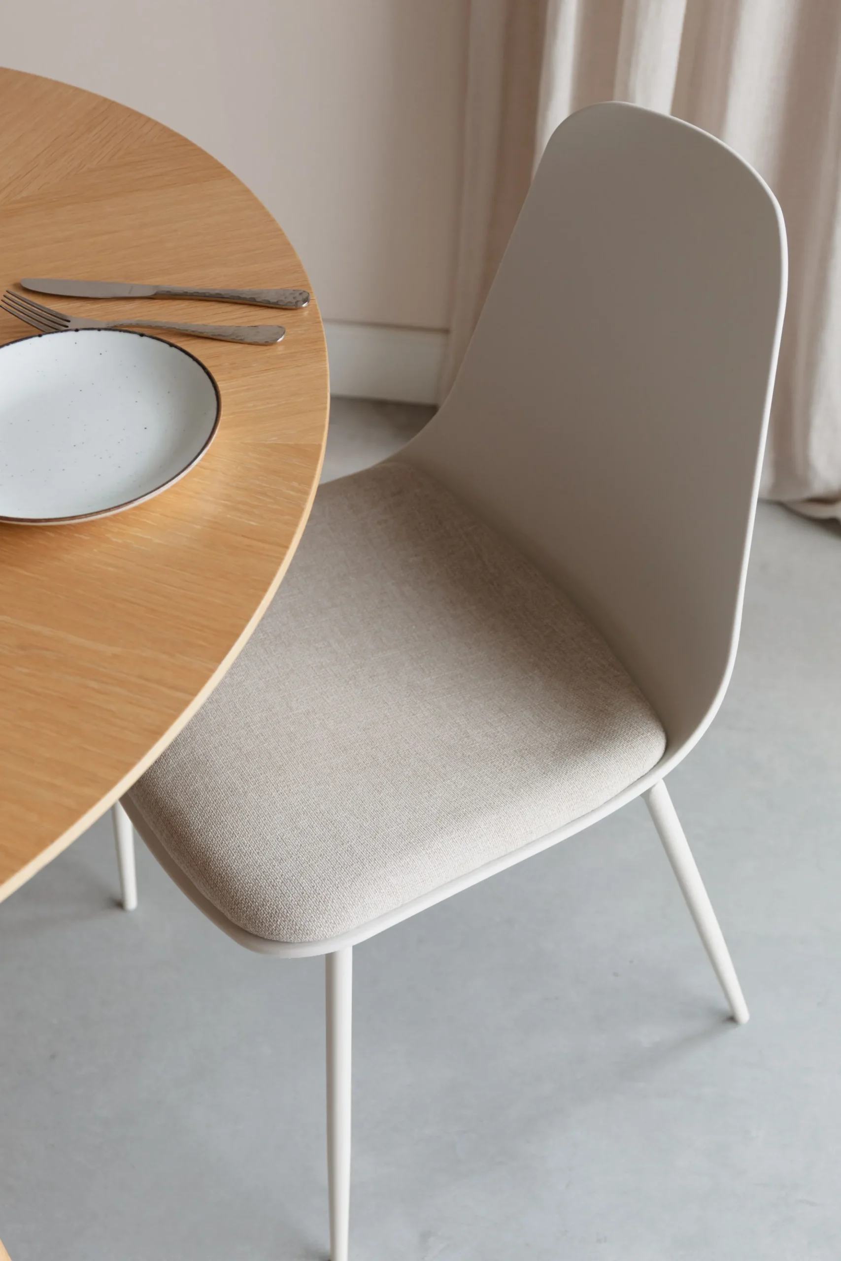 Die gemütlich geformte Kunststoffschale mit einer robusten Stoffsitzfläche bietet optimalen Sitzkomfort und unterstützt Ihre Körperhaltung ideal. Die stabilen Metallbeine verleihen dem Stuhl nicht nur eine robuste Standfestigkeit, sondern auch einen modernen Look. Ob in der Küche, im Esszimmer oder im Büro – dieser Schalenstuhl macht in jedem Raum eine gute Figur. Die dezenten Farbtöne sorgen für eine beruhigende Atmosphäre und lassen sich leicht mit anderen Möbelstücken kombinieren.