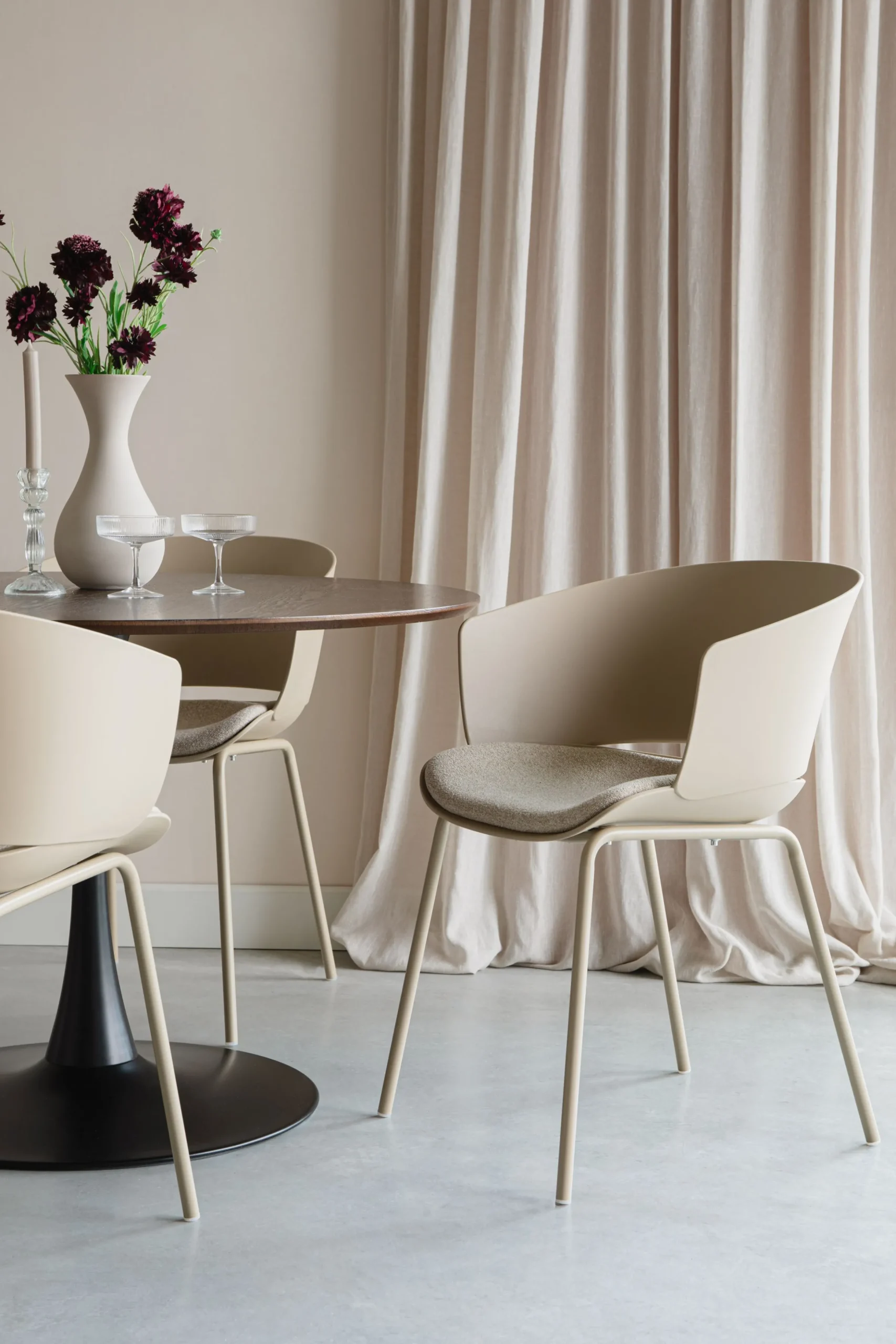 Die gemütlich geformte Kunststoffschale mit einer robusten Stoffsitzfläche bietet optimalen Sitzkomfort und unterstützt Ihre Körperhaltung ideal. Die stabilen Metallbeine verleihen dem Stuhl nicht nur eine robuste Standfestigkeit, sondern auch einen modernen Look. Ob in der Küche, im Esszimmer oder im Büro – dieser Schalenstuhl macht in jedem Raum eine gute Figur. Die dezenten Farbtöne sorgen für eine beruhigende Atmosphäre und lassen sich leicht mit anderen Möbelstücken kombinieren.