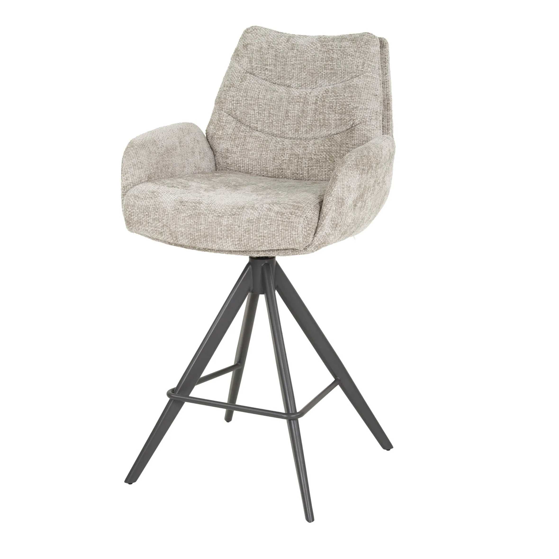 Dieser stilvolle Barhocker bietet maximalen Sitzkomfort und überzeugt durch sein kuscheliges Design. Der weiche, strukturierte Bezug ist in den zeitlosen Farben Taupe und Sand erhältlich und verleiht jedem Raum eine warme, einladende Atmosphäre. Die ergonomisch geformte Rückenlehne mit dezenter Steppung sowie die gepolsterten Armlehnen sorgen für entspanntes Sitzen – perfekt für lange Abende am Küchentresen oder der Hausbar.