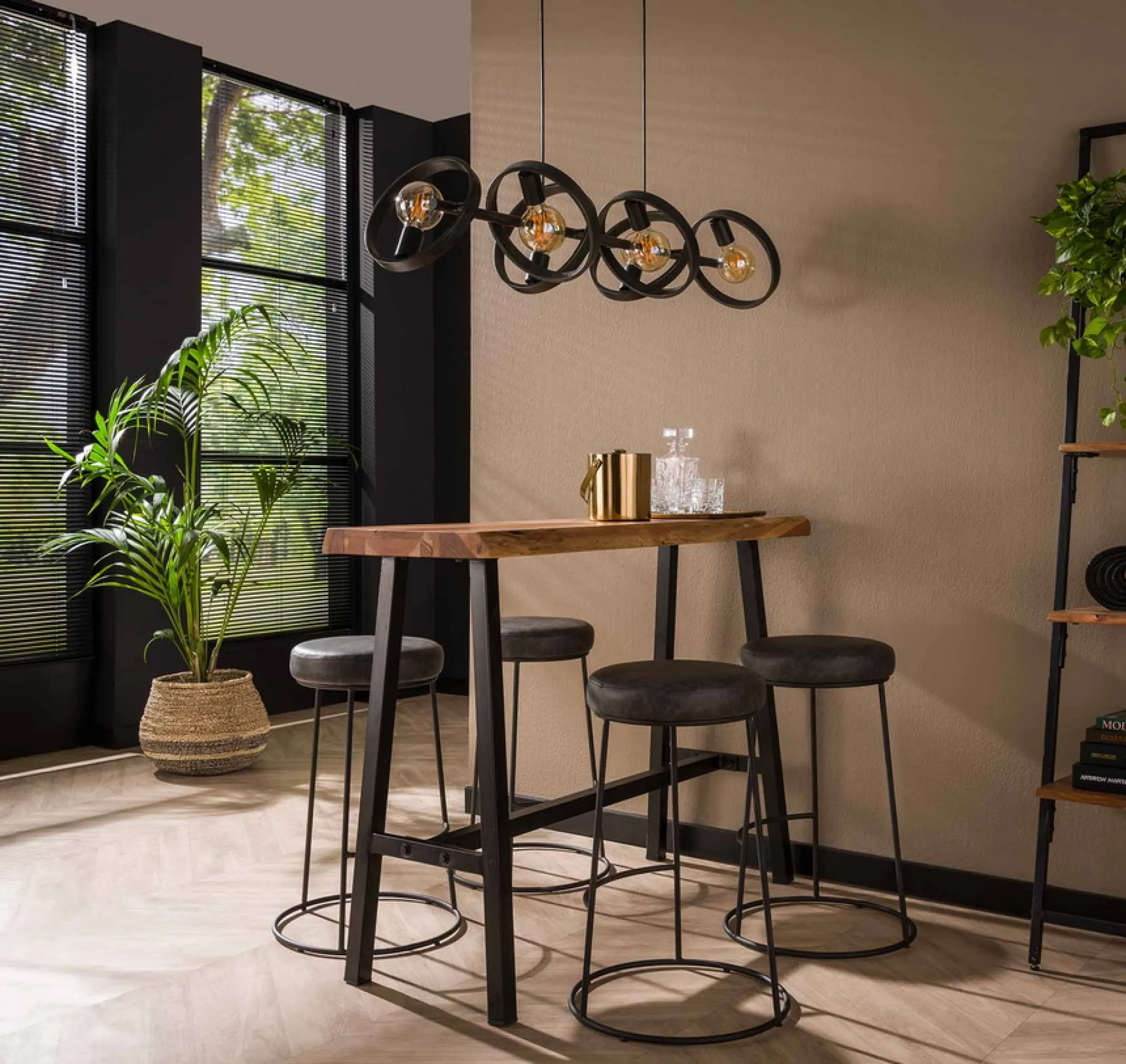 Der Esstisch Wood ist mit seinem Maß ein perfekter Begleiter in kleinen Küchen oder Esszimmern und bietet ausreichend Platz um die Mahlzeiten allein oder mit der Familie zu genießen. Durch die Höhe verbreitet er den Flair eines Cafes, das Material und Design kommt im Industrial-Look daher. Passend dazu haben wir auch die Barhocker im Programm.