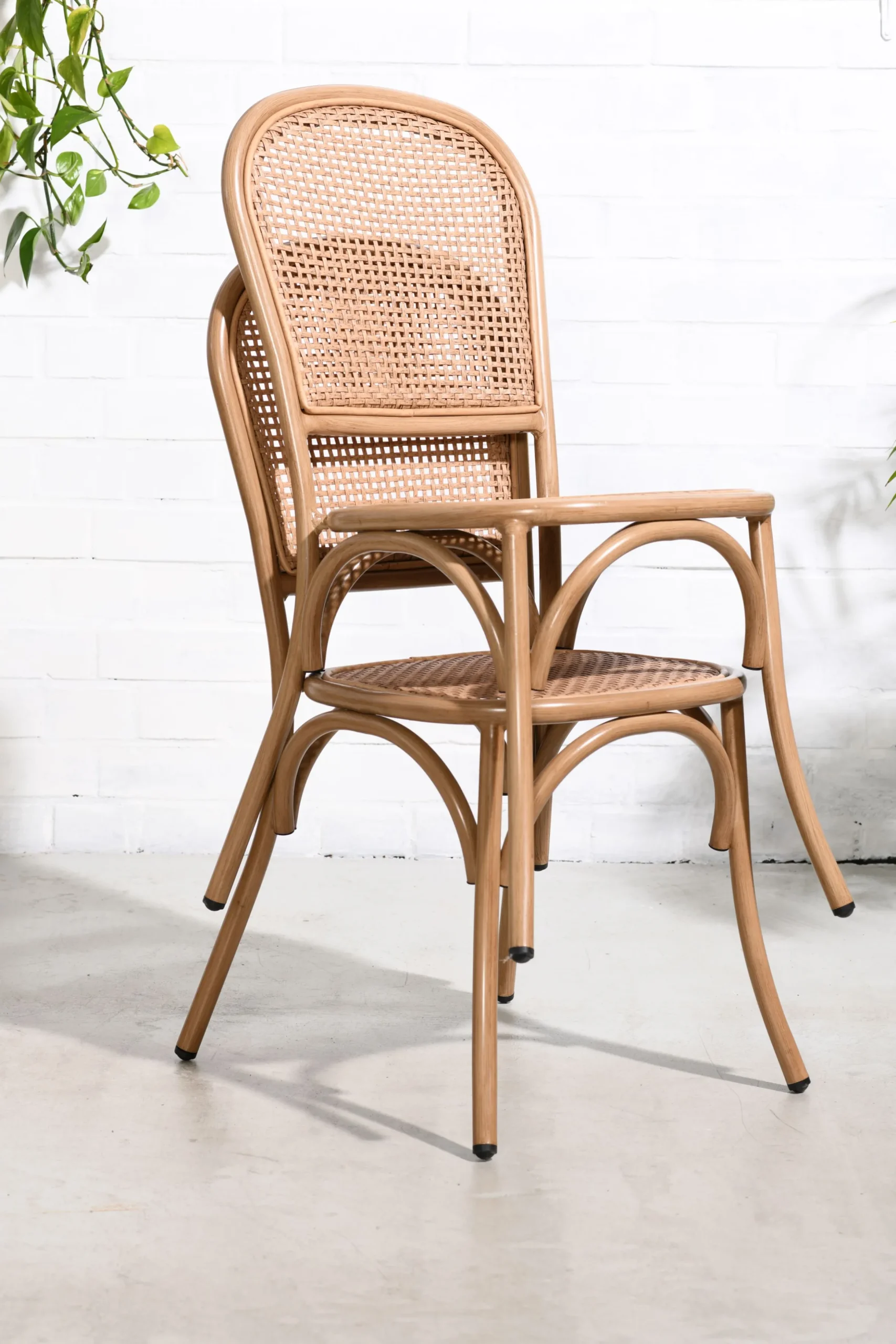 Die Cabana Serie setzt Akzente im Garten, auf der Veranda oder auch am Esstisch. Leicht und unglaublich formstabil sind die mit PE-Rattangeflecht überzogenen Möbelstücke perfekte Begleiter für draußen und drinnen. Durch das Design und der warmen Farbgebung ist der Stuhl leicht mit einem modernen oder klassischen Einrichtungsstil kombinierbar. Die frontseitige Verblendung der Flechtung ist eine aufwendige Handarbeit die viel Zeit benötigt. Das Ergebnis ist ein hochwertiger gearbeiteter Stuhl im angesagten Scandi Boho Stil.