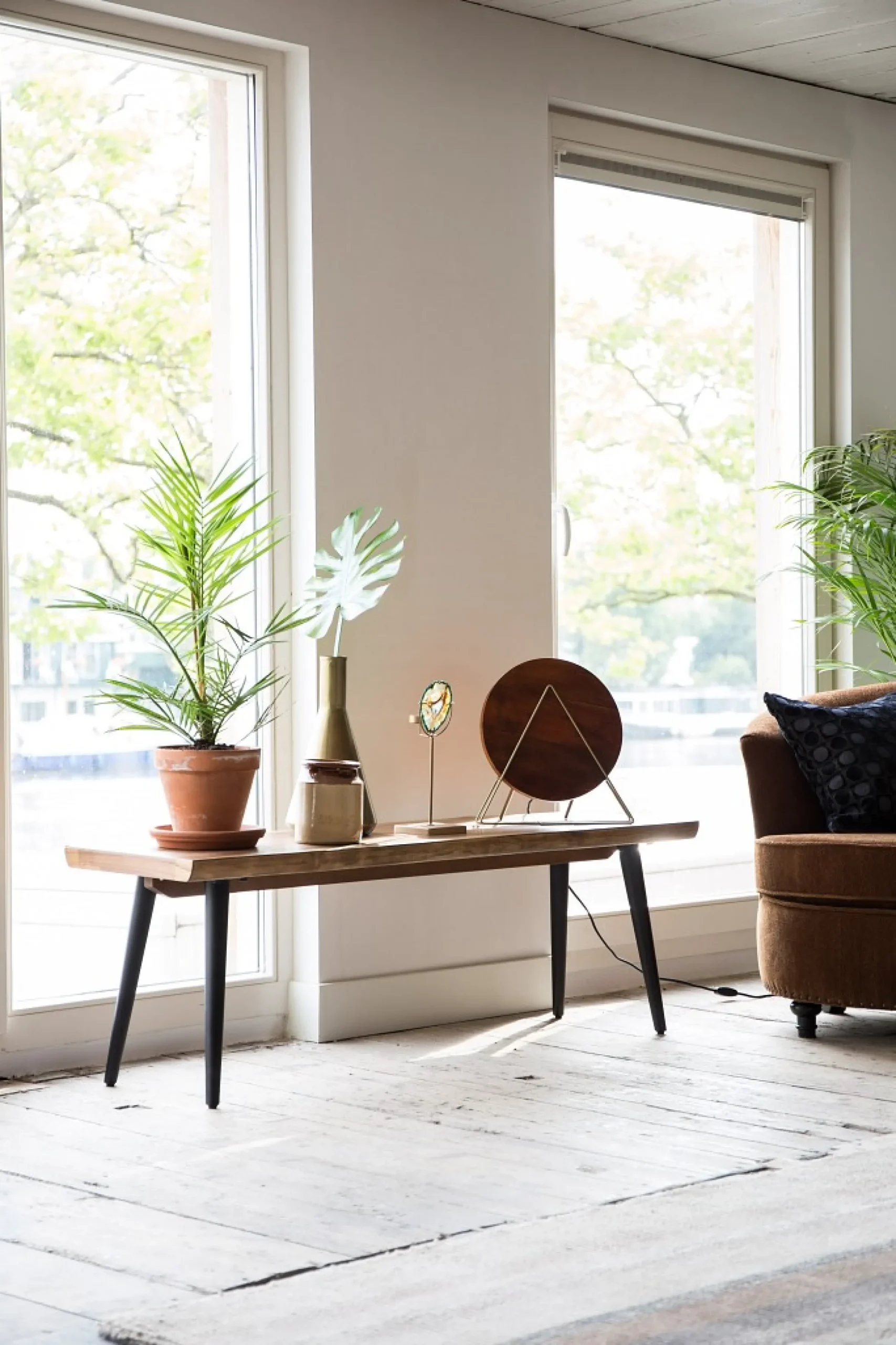 Die Alagon Serie gibt es von groß bis eher klein, egal ob Tísch oder Bank. So passt sich Alagon Ihren Bedürfnissen an. Die Stücke haben den Charme und die unregelmäßigen Kanten eines Walnußbaumstammes. Das Holz ist nicht nur ein Highlight für das Auge, sondern beweist auch, wieviel Liebe und Aufwand wir ins Detail stecken. Ein weiteres Beispiel sind die konischen Beine aus schwarzem Metall.