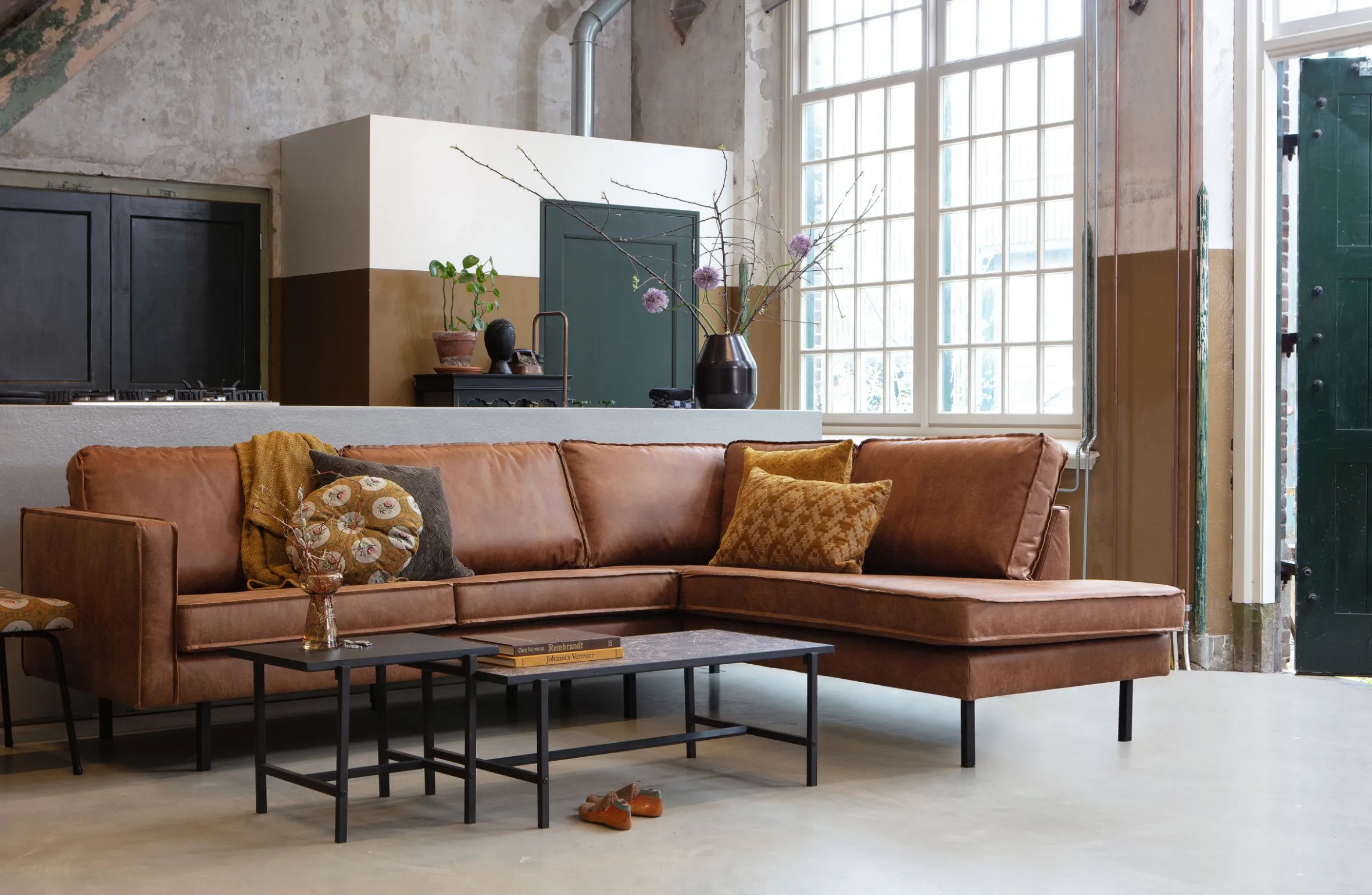 Das Sofa Rodeo von BePureHome ist ein modernes, robustes und zeitgemäßes Möbelstück für Ihr Wohnzimmer. Es ist aus 70% Leder und 30% Polyester gefertigt und bietet Ihnen einen hohen Sitzkomfort und eine lange Lebensdauer. Das Sofa hat eine klassische Eckform mit einer Breite von 266 cm und einer Tiefe der Liegeseite von 213 cm. Die Farbe Cognac verleiht dem Sofa einen warmen und eleganten Charakter. Die Rodeo Serie ist geräumig und bietet einen herrlich festen Sitzkomfort. Das hohe Fußgestell lässt die Möbel schlank und luftig wirken. Die Sofas und Sessel sind mit recyceltem Leder gepolstert. Recycle-Leder verleiht einen einzigartigen Look und ist durch die Verwendung von Lederresten eine nachhaltige Wahl! Das Material besteht aus zwei Teilen: Die untere Schicht besteht aus recyceltem Echtleder, das für den natürlichen Look sorgt. Die obere Schicht besteht aus einer Polyesterschicht, die das Leder schützt und Unebenheiten verhindert. Das macht das Ganze zu einem robusten Kombinationsgewebe mit feiner, weichen Haptik. Je nach Geschmack führen wir die Rodeo-Reihe als Zwei- und Dreisitzer oder als Ecksofa.