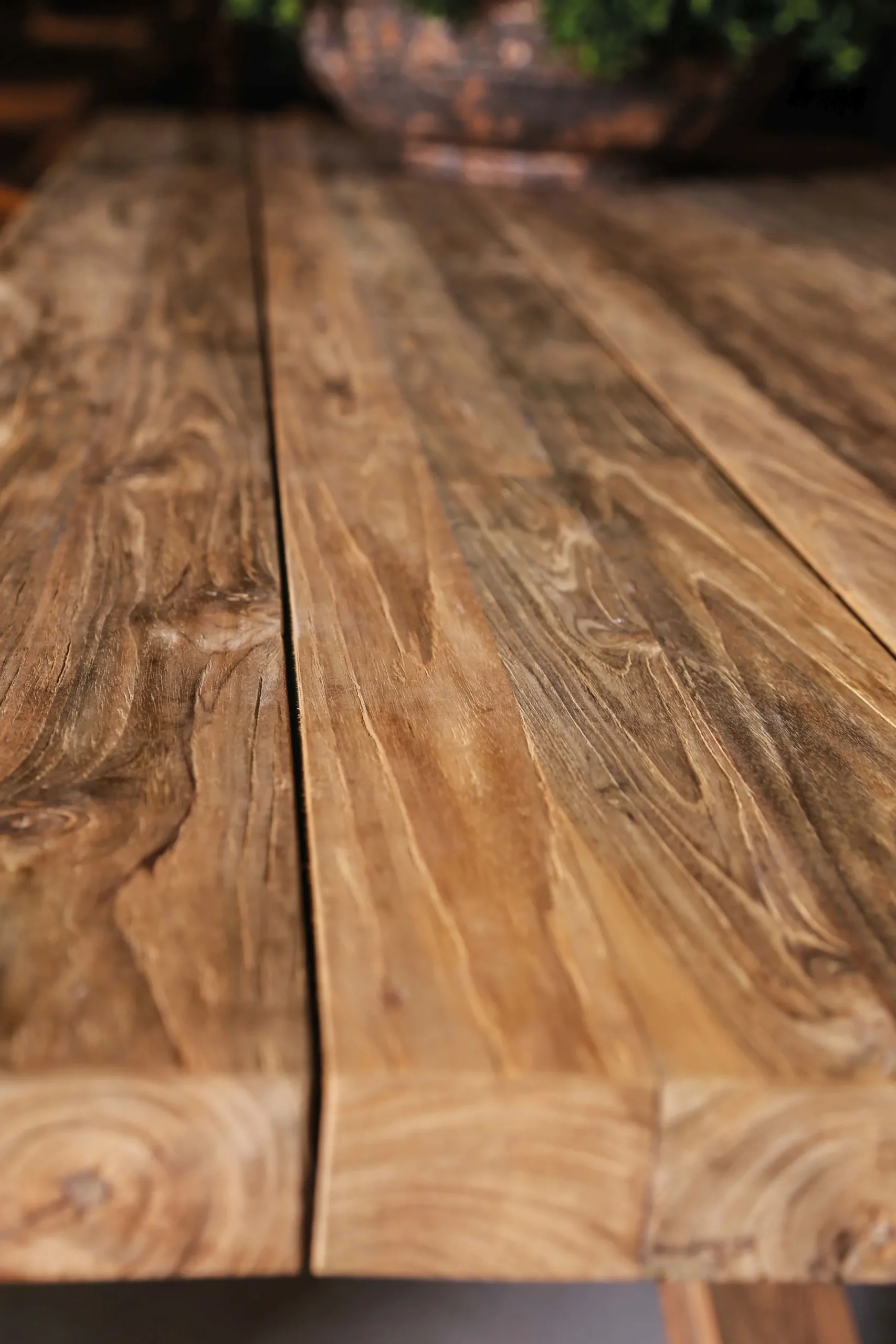 - Langlebige Materialien: Recyceltes Teakholz