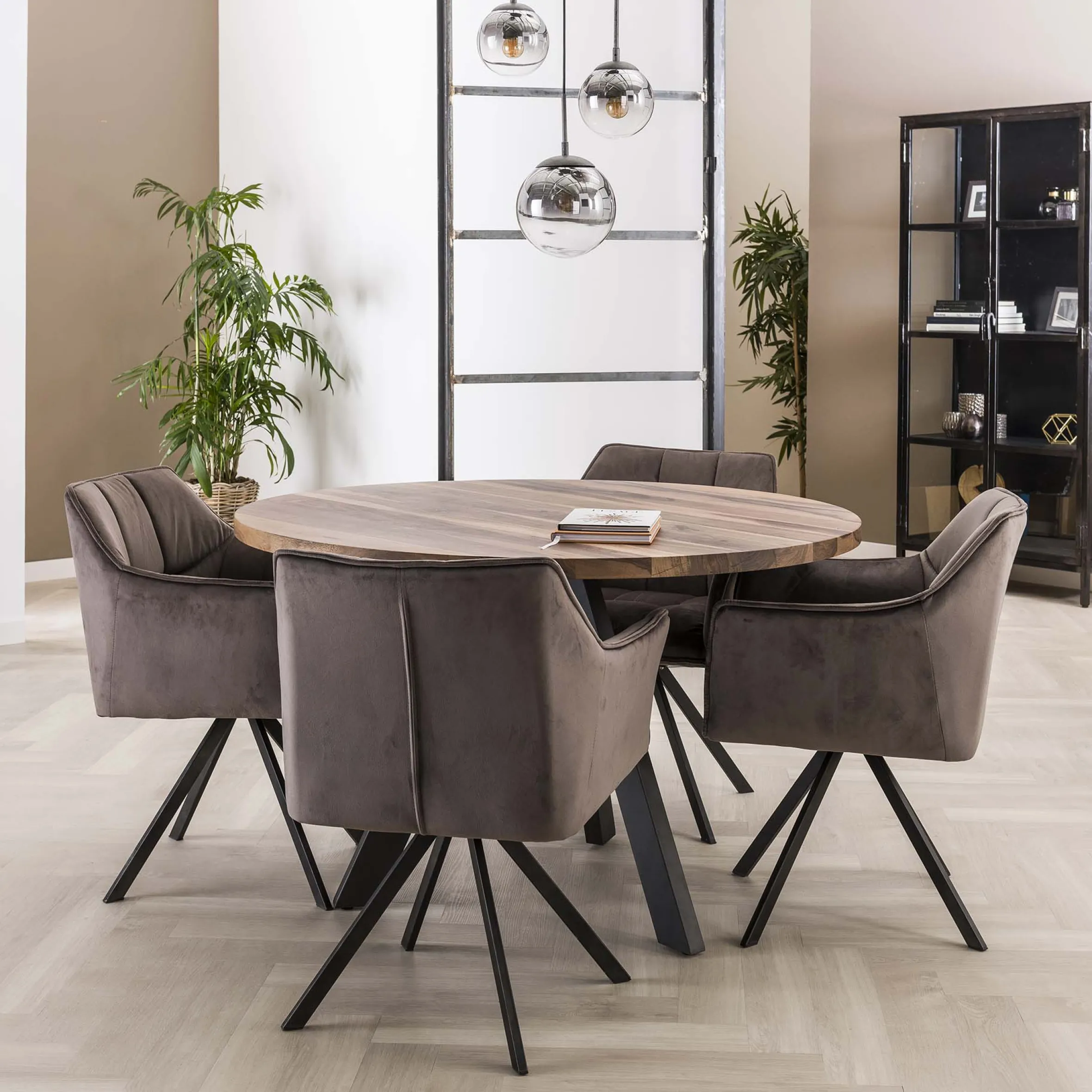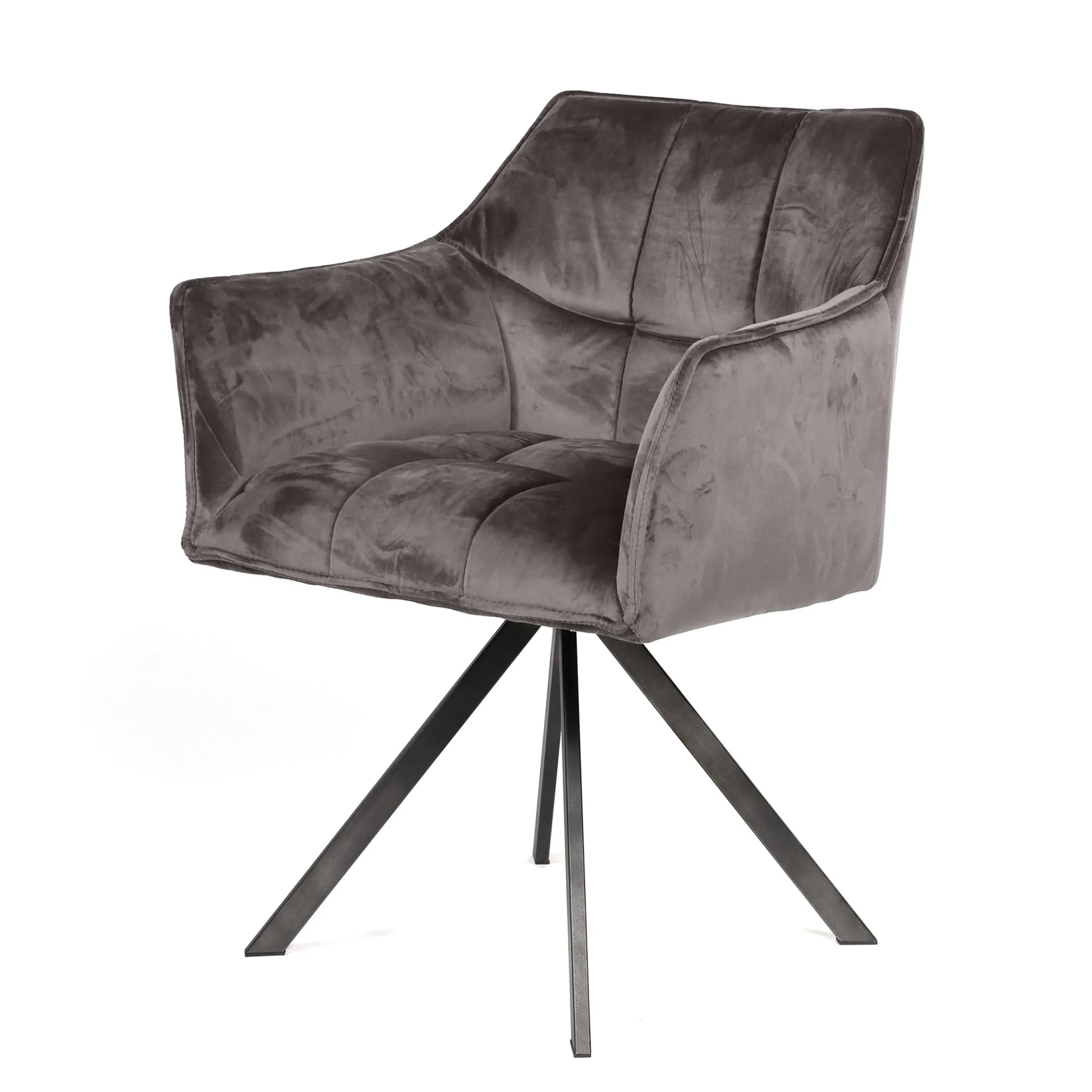 Herrlich elegant und eine Bereicherung für jeden Haushalt ist der Armlehnstuhl Raster aus der Vintagehaus Serie. Er begeistert durch den modernen Samt-Look in Verbindung mit den schwarzen ausgestellten Metallbeinen. Ob beim Candlelight Dinner oder beim entspannten Abend mit Freunden, auf dem Samtstuhl nehmen Sie bequem Platz und möchten diesen, Dank der weichen Polsterung, auch nicht mehr so schnell verlassen. Der Stuhl ist um 360 Grad drehbar. Das Design funktioniert aber auch als Schreibtischstuhl im Büro. Um den Look zu komplettieren, haben wir auch die passende Esstischbank zu den Drehstühlen.