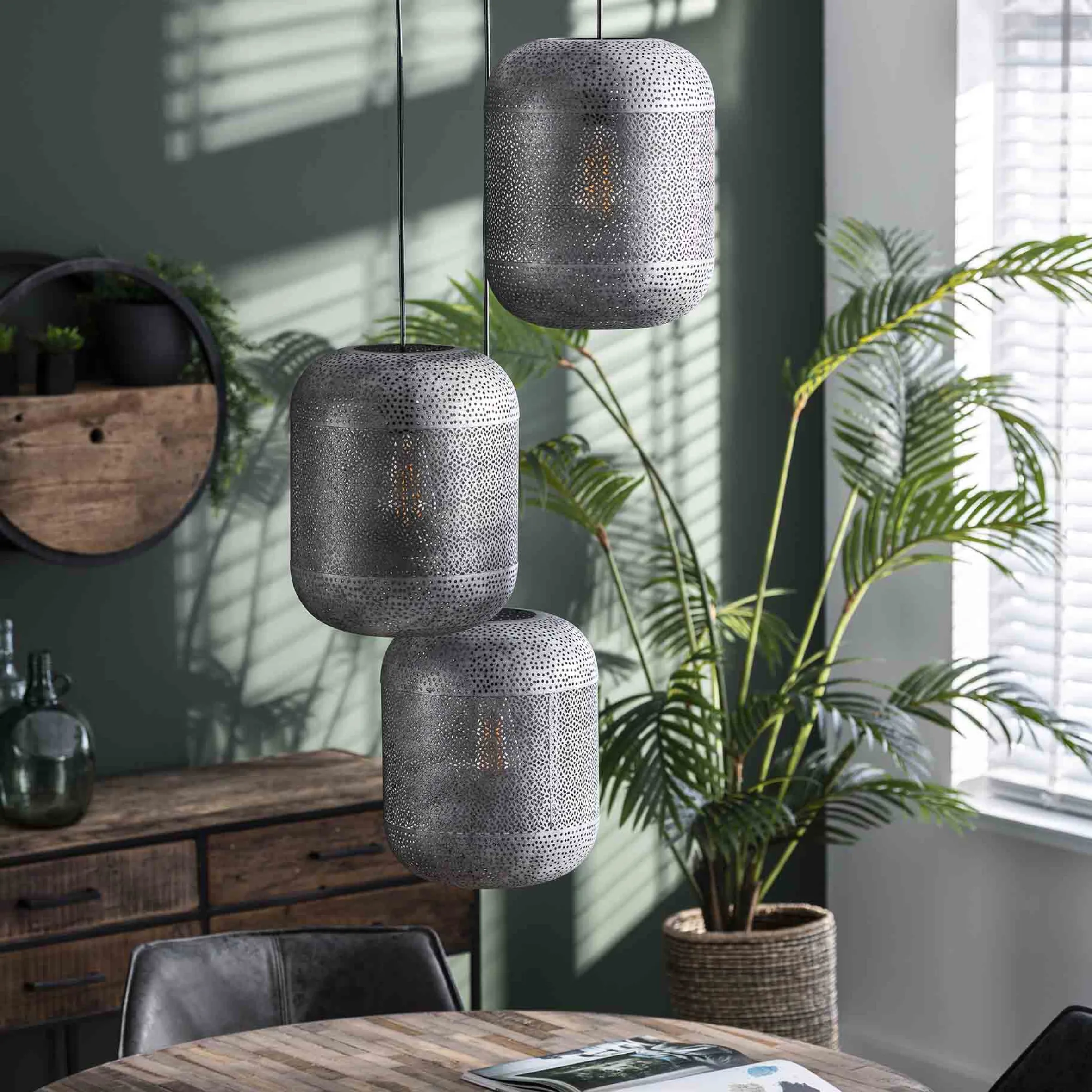 Verzaubern Sie Ihr Zuhause mit orientalischem Flair! Die feine Lochung, die aus jedem Schirm herausgelasert wurde, lässt das Licht durchscheinen und erinnert an die Märchen von Tausendundeine Nacht. Die Oberfläche der Lampenschirme wurde mit einer Metallätzung behandelt. So entsand eine unregelmäßige Oberfläche mit wunderschöner Patina. Inspiriert vom Look marrokanischer Riads und arabischer Paläste sorgt diese Pendelleuchte für prächtige Beleuchtung. Diese gestufte Lampe ist Teil der Etch Serie.