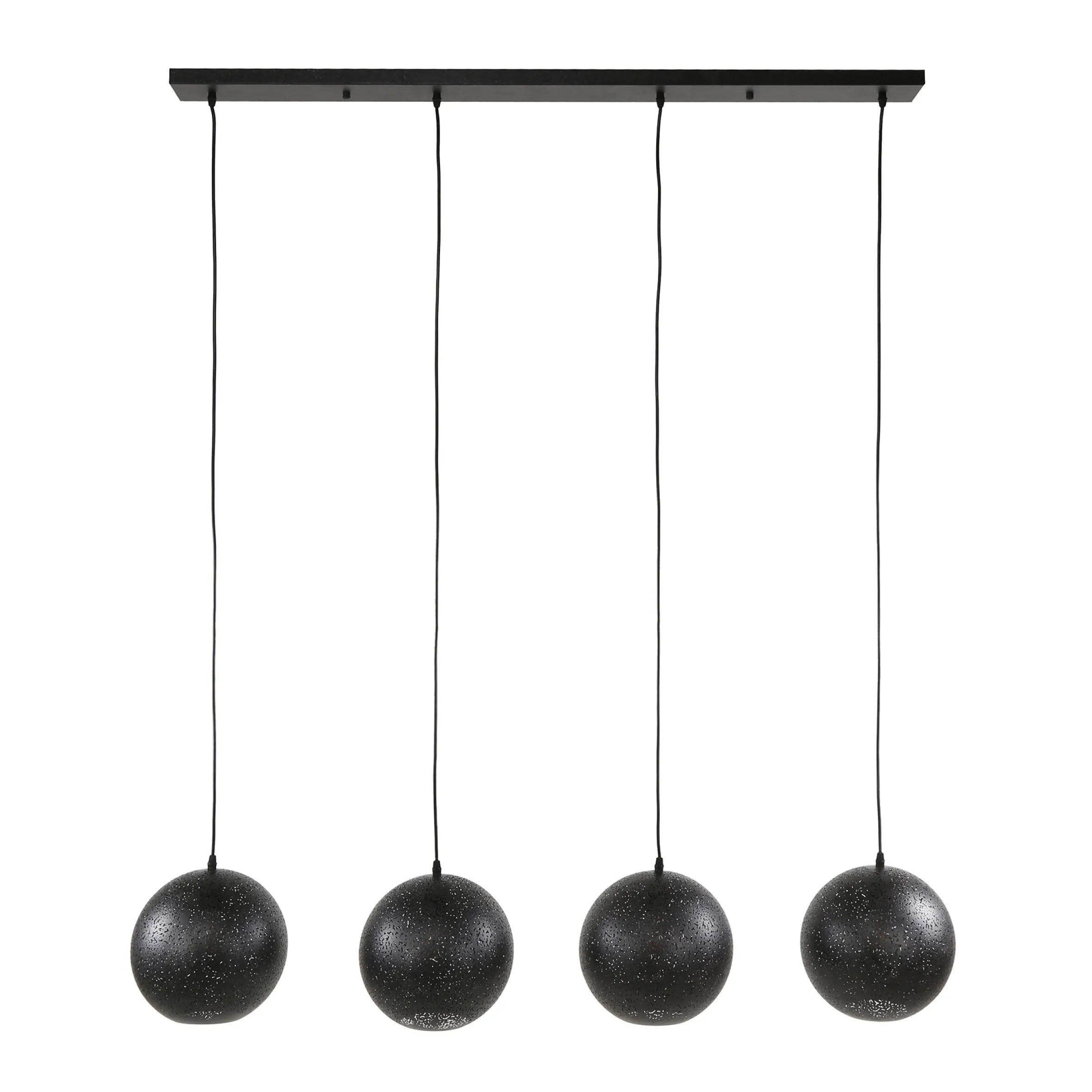 Erleuchten Sie Ihr Zuhause mit unserer einzigartigen Hängelampe, die mit vier runden Metallschirmen in einem eleganten schwarzen Finish ausgestattet ist. Jeder Schirm verfügt über eine handgefertigte individuelle Lochung, die für eine faszinierende Lichtstreuung sorgt und eine angenehme Atmosphäre schafft. Somit ist jeder Lampenschirm einzigartig und gleicht keinem anderen. Diese vielseitige Hängelampe eignet sich perfekt für Wohnzimmer, Essbereiche oder andere Räume, in denen Sie einen Hauch von Stil und Funktionalität suchen. Sie können die Schirme auf gleicher oder unterschiedlicher Höhe anbringen, überschüssiges Kabel lässt sich in der Deckenleiste verstecken.
