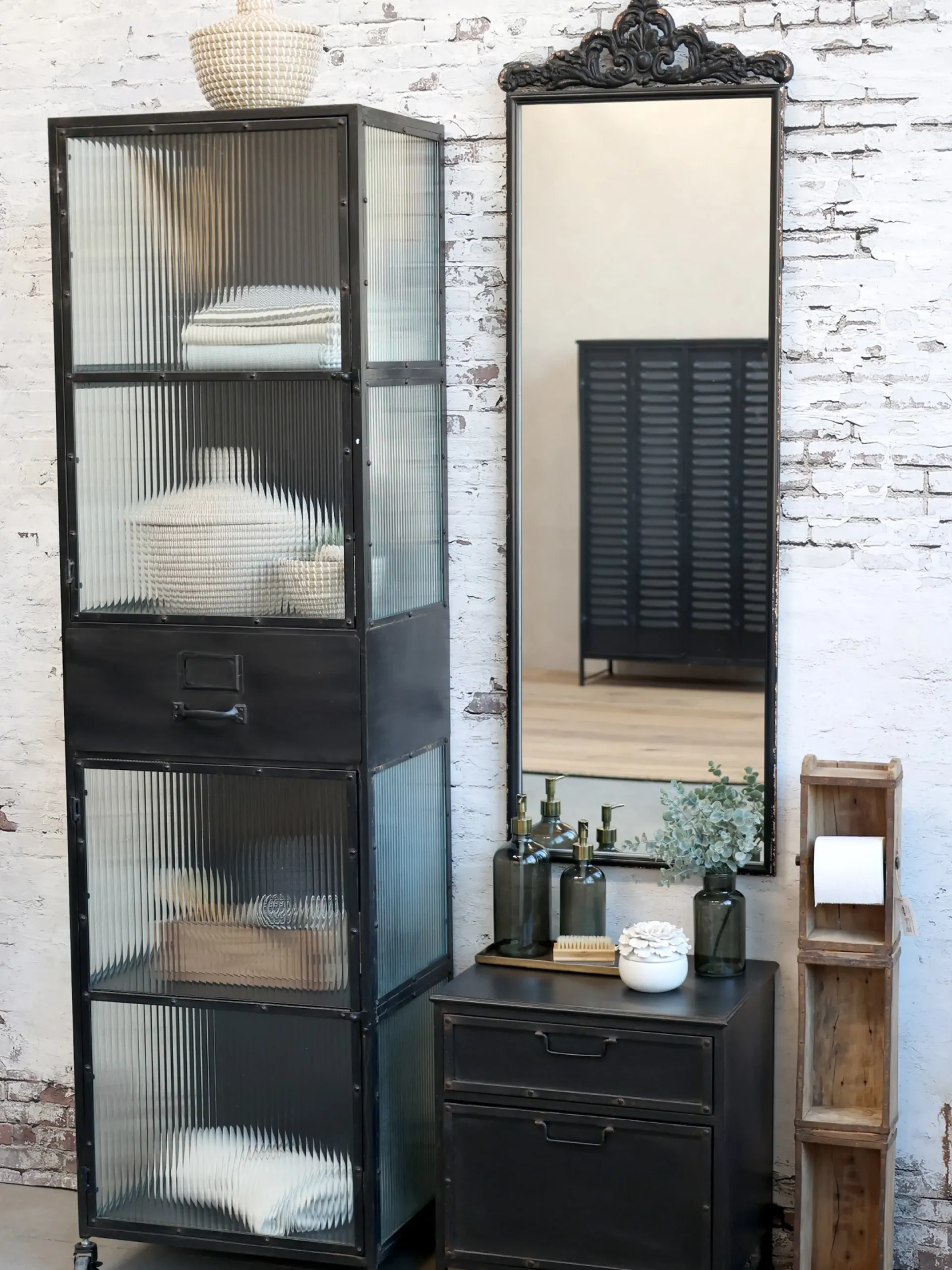 Diese kleine Kommode im Industrial Style ist hervorragend geeignet um im Flur oder Bad die kleinen Dinge des Alltags zu verstauen. Mit seinem gewollten Used Look passt sie perfekt zum Industral Style – auch im Schlafzimmer als Nachttisch. Die Nieten und die robusten Griffe der zwei Schubladen betonen den Einrichtungsstil.