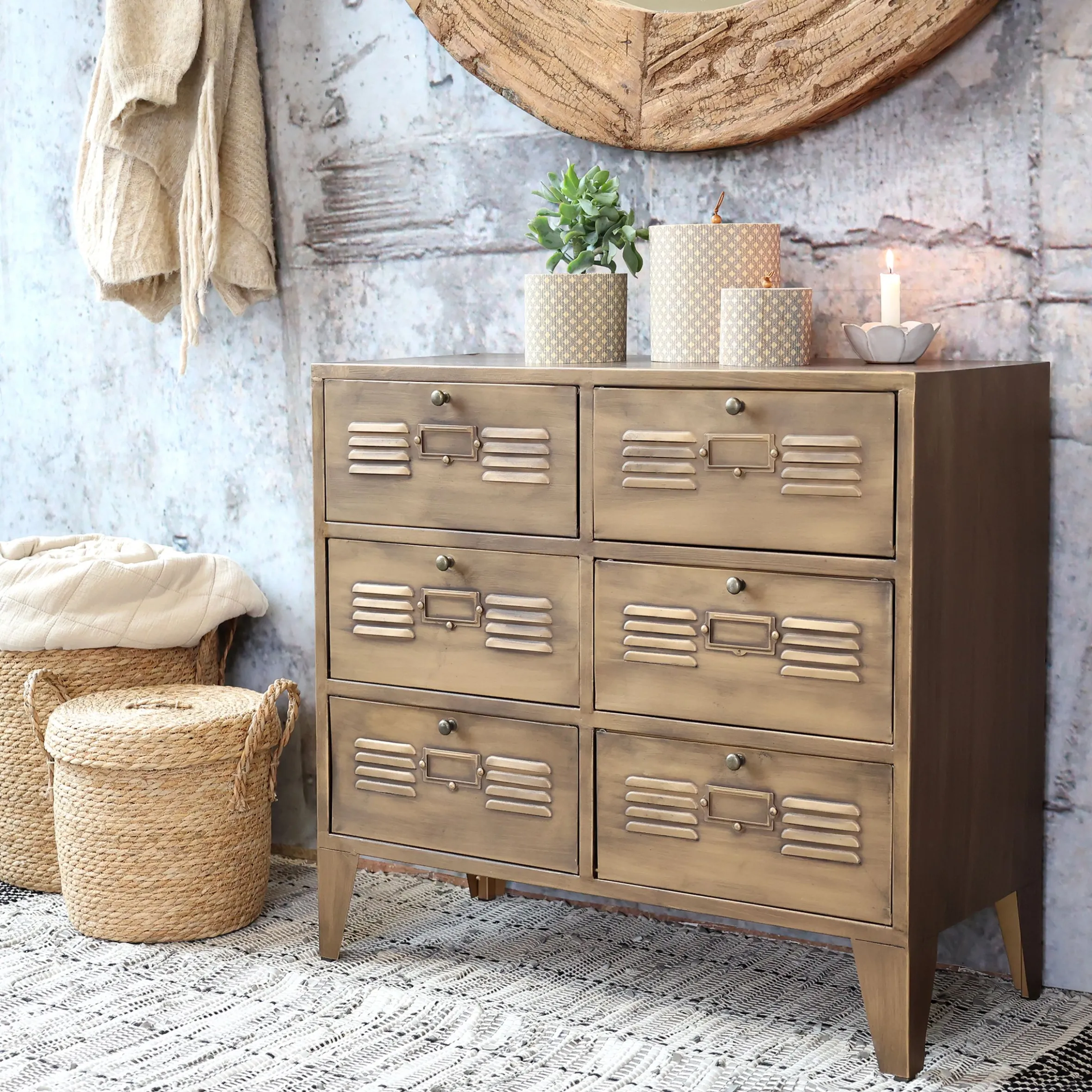 Industrial Kommode Spind Amaury Metall 6 Fächer Antik-Messing