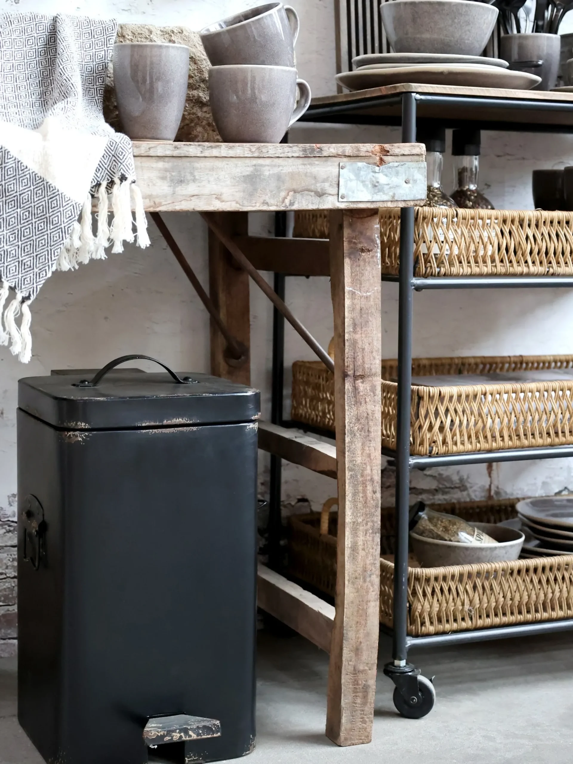 Wer sagt denn, dass Abfalleimer nicht stylisch sein dürfen?! Dieser hier kann sich in der Küche – perfekt für Kompost -, im Bad oder aber auf Ihrer Terrasse auf jeden Fall zeigen lassen. Der praktische Factory Mülleimer im Industrial Design ist ein handliches und hübsches Hilfsmittel zugleich. Seine Erscheinungsbild ist gewollt im Used-Look. Durch seine quadratische Form passt der Abfalleimer in jegliche Räumlichkeiten.