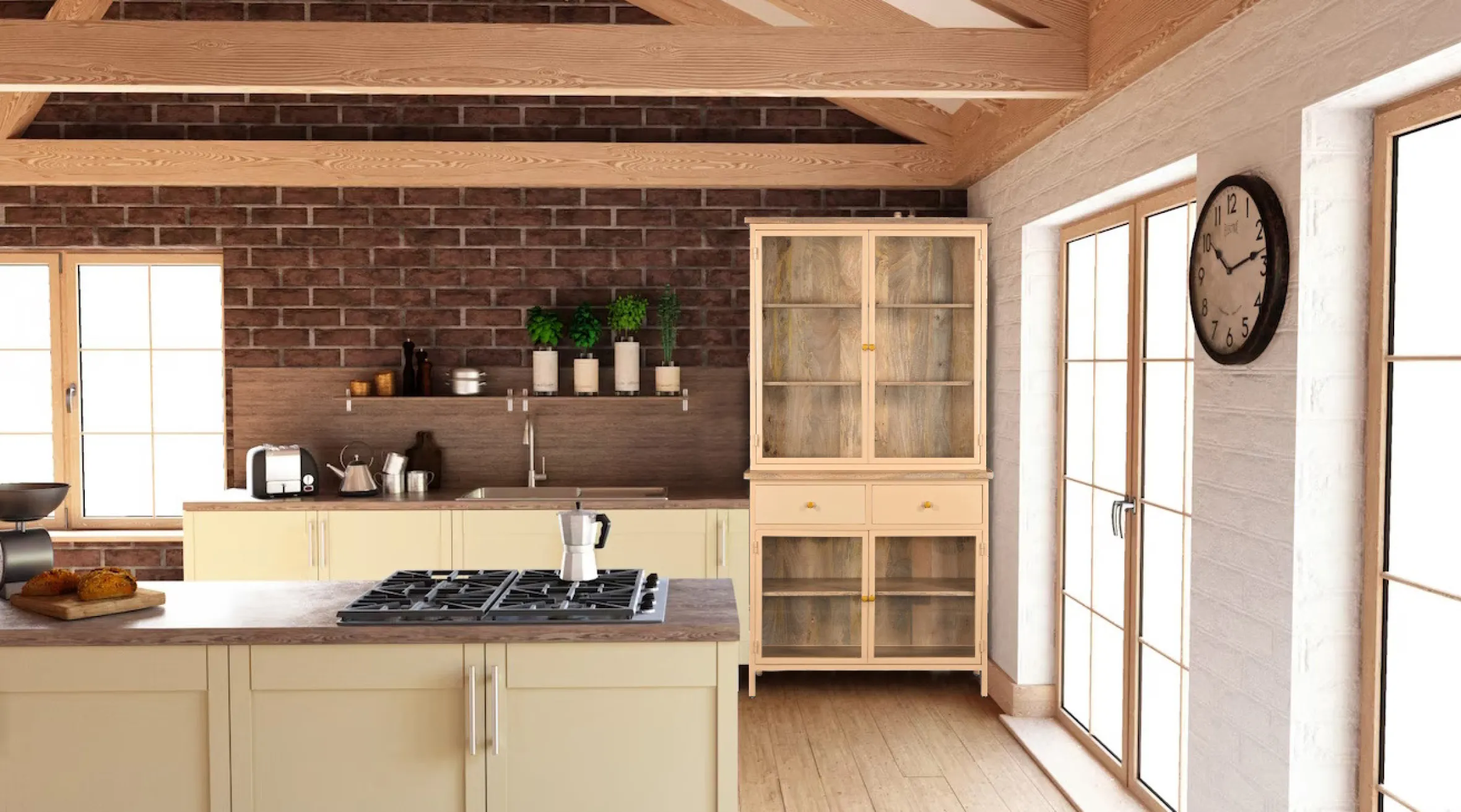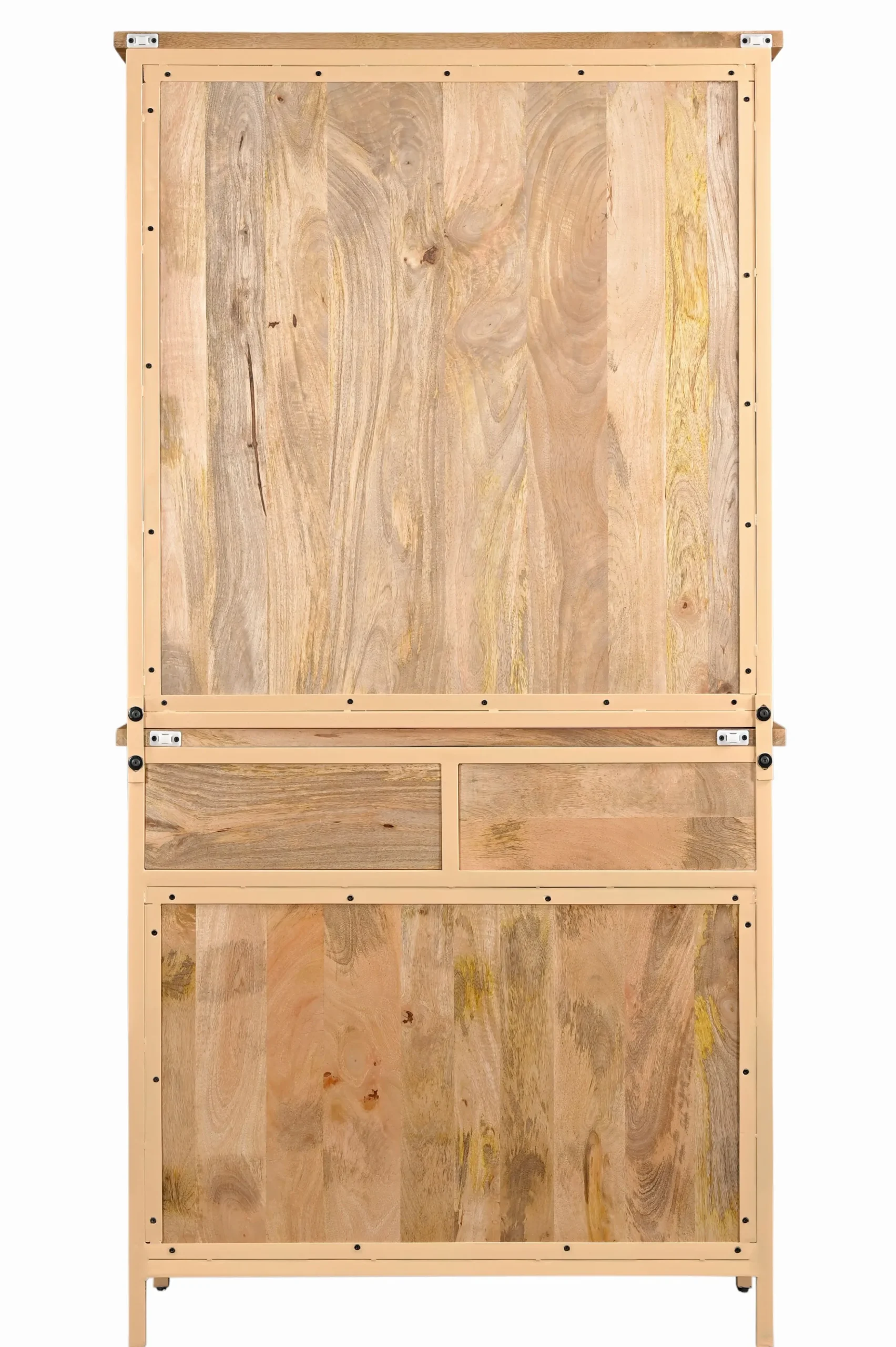 Die Vitrine Provence ist ein wahr gewordener Retro-Traum aus Metall, Holz und Glas! Sie entfaltet ihre besondere Raumwirkung durch das gekonnte Zusammenspiel von Farben und Materialien. Der Korpus ist komplett aus Metall, das Innenleben aus wunderschön gemasertem Mangoholz. Die zahlreichen Glaselemente verleihen eine außergewöhnliche Transparenz. Der Schrank bringt im Wohnzimmer wertvolle Bücher und Kunstobjekte, kostbare Sammler- und geliebte Erinnerungsstücke stilvoll zur Geltung, im Speisezimmer oder der Küche präsentiert er edles Porzellan und Kristallglas. Zusätzlichen Stauraum bieten die beiden Schubladen. Abgerundet wird das Ganze mit goldenen Griffen. Und der ganz große Auftritt ist dank der Farbgebung garantiert sicher! Die Vitrine wird für den leichteren Transport zweiteilig geliefert.