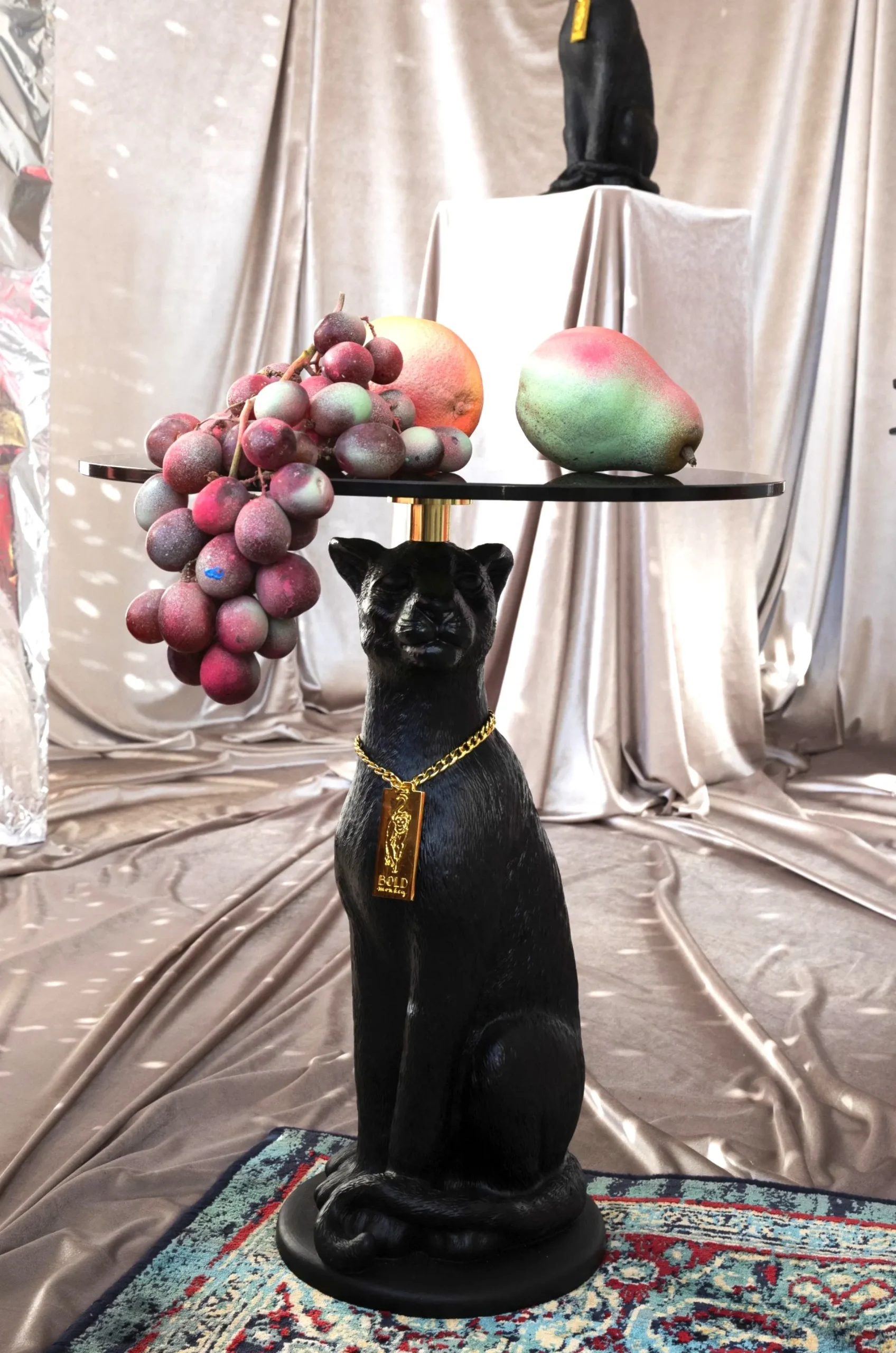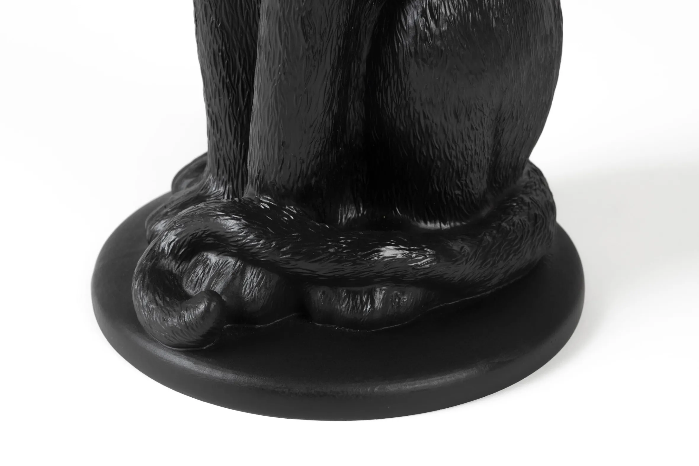 Die Panther sind auf dem Vormarsch, und dieses gewagte Stück bietet Ihnen eine weitere Möglichkeit, auf den Zug der Katzenfans aufzuspringen. Mit einer goldenen Kette versehen, vereinen sich schwarz lackiertes Harz und goldfarbene Galvanisierung in perfekter Harmonie – ganz gleich, welchen Stil Sie bevorzugen. Der Proudly Crowned Panther Beistelltisch verleiht einem bereits eklektisch eingerichteten Raum einen Hauch von Spaß oder wird zu einem einzigartigen Blickpunkt in einer ansonsten minimalistisch eingerichteten Wohnung. Dieser glamouröse Couchtisch ist ein kultiges Sammlerstück für jeden Designliebhaber und der Inbegriff des Bold Monkey Stils: extravagantes Design zu einem erschwinglichen Preis.