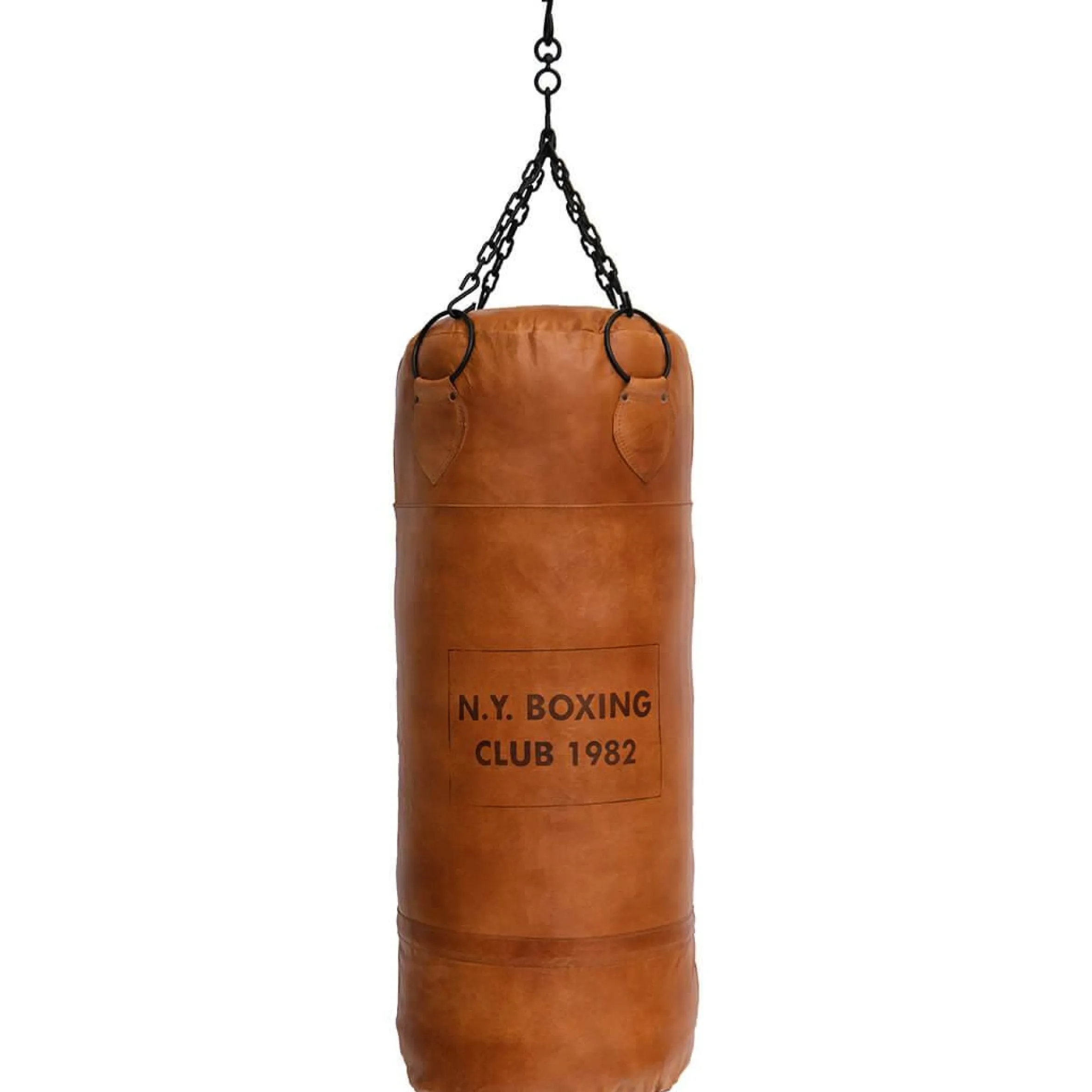 Wenn Sie eine maskuline und besondere Dekoration für Ihr Geschäft oder Ihr Zuhause suchen, sind diese Boxsäcke eine gute Wahl. Ein echtes „Männerhöhlen“-Zubehör! Der Boxsack ist aus braunem Leder, mit Eisenketten oder Juteseilen fürs Aufhängen. Sie sind mit recycelter Baumwolle gefüllt. Bitte beachten Sie, dass der Sack nur als Deko geeignet ist. Leder ist ein Naturprodukt und daher können Unterschiede in der Farbe, im Aussehen und in der Oberfläche vorkommen. Kleine Risse und Narben sind natürlich und keine Produktionsfehler. Sie machen jeden Artikel einzigartig.