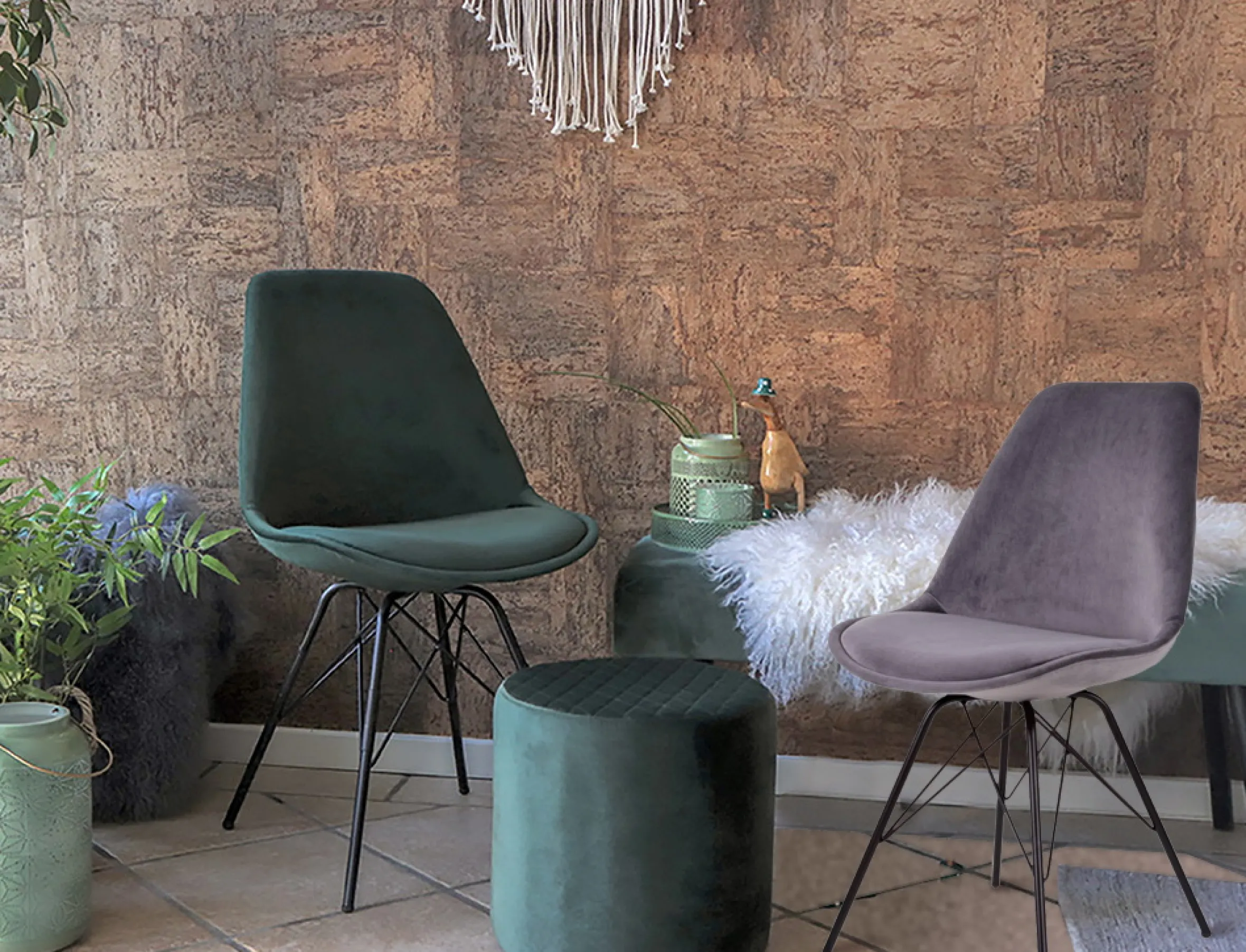 Der Retro Esszimmerstuhl Oslo bietet viele Highlights zu einem günstigen Preis. Die formschöne und komfortabel umgesetzte Sitzschale mit Samtbezug sorgt für eine bequeme und gemütliche Sitzposition. Die Unterkonstruktion besteht aus einem verästelten Metall-Konstrukt, das dem Look Industriedesign zuweist. Die Beine stehen im harmonischen Kontrast zur weichen Sitzschale, die es in zwei schönen Farben gibt.