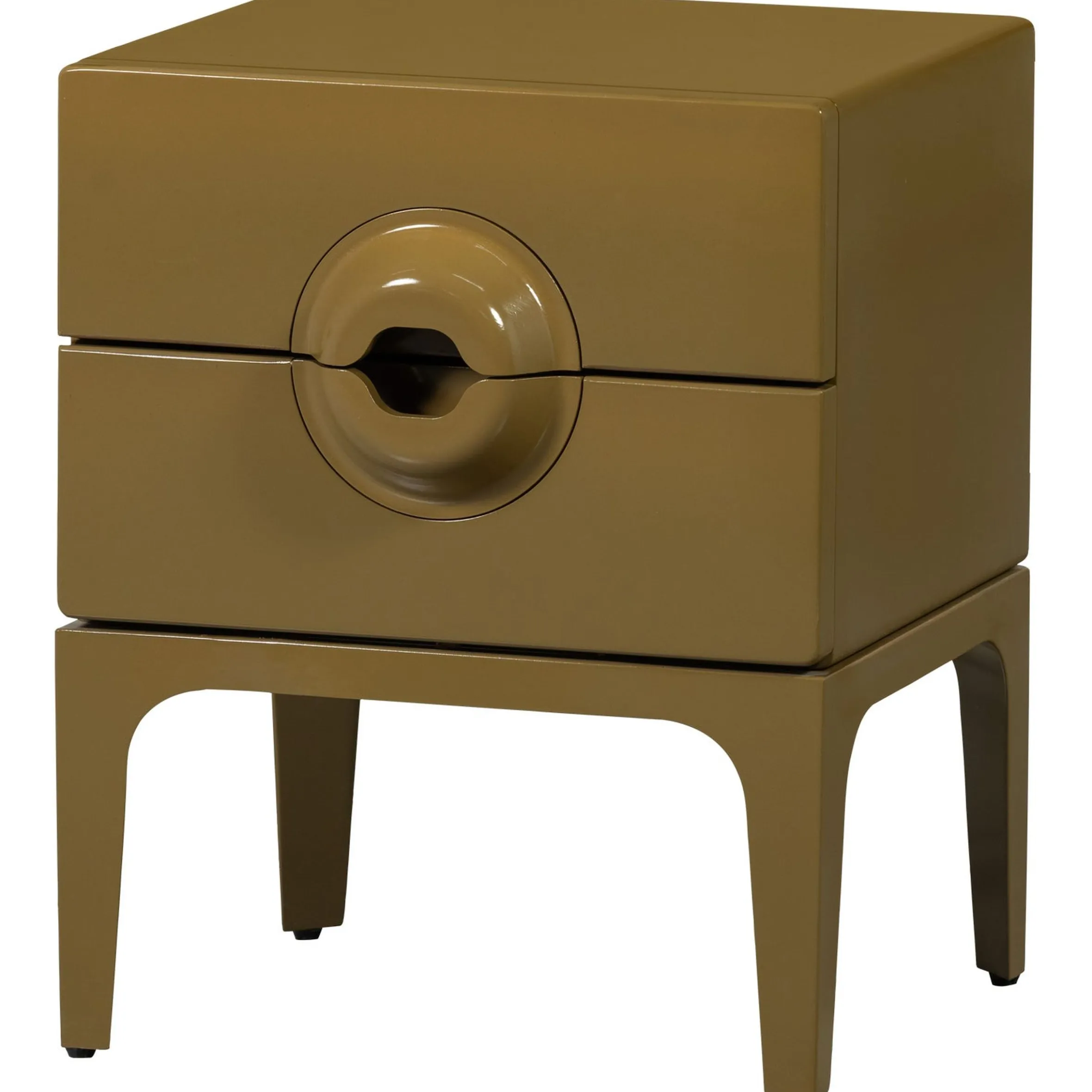 Retro Kommode Nachttisch Merge Olivgrün 2 Schubladen