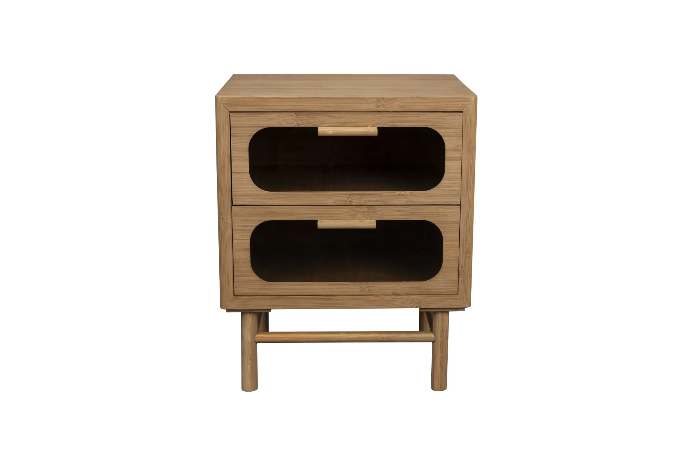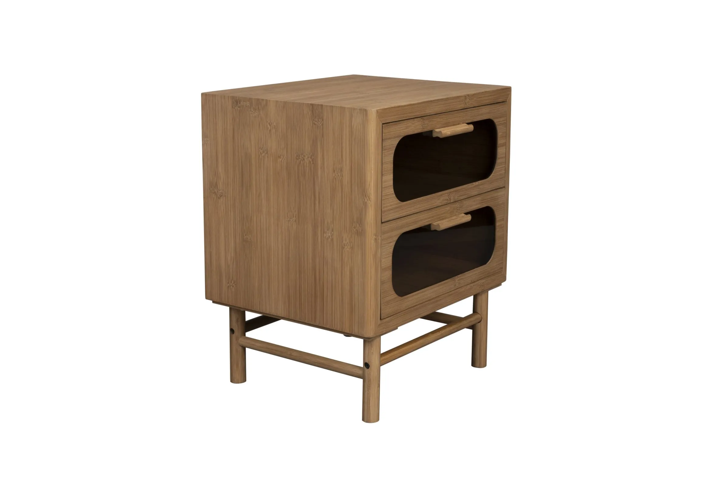Retro Nachttisch Beistelltisch Caroun Bambus Rauchglas