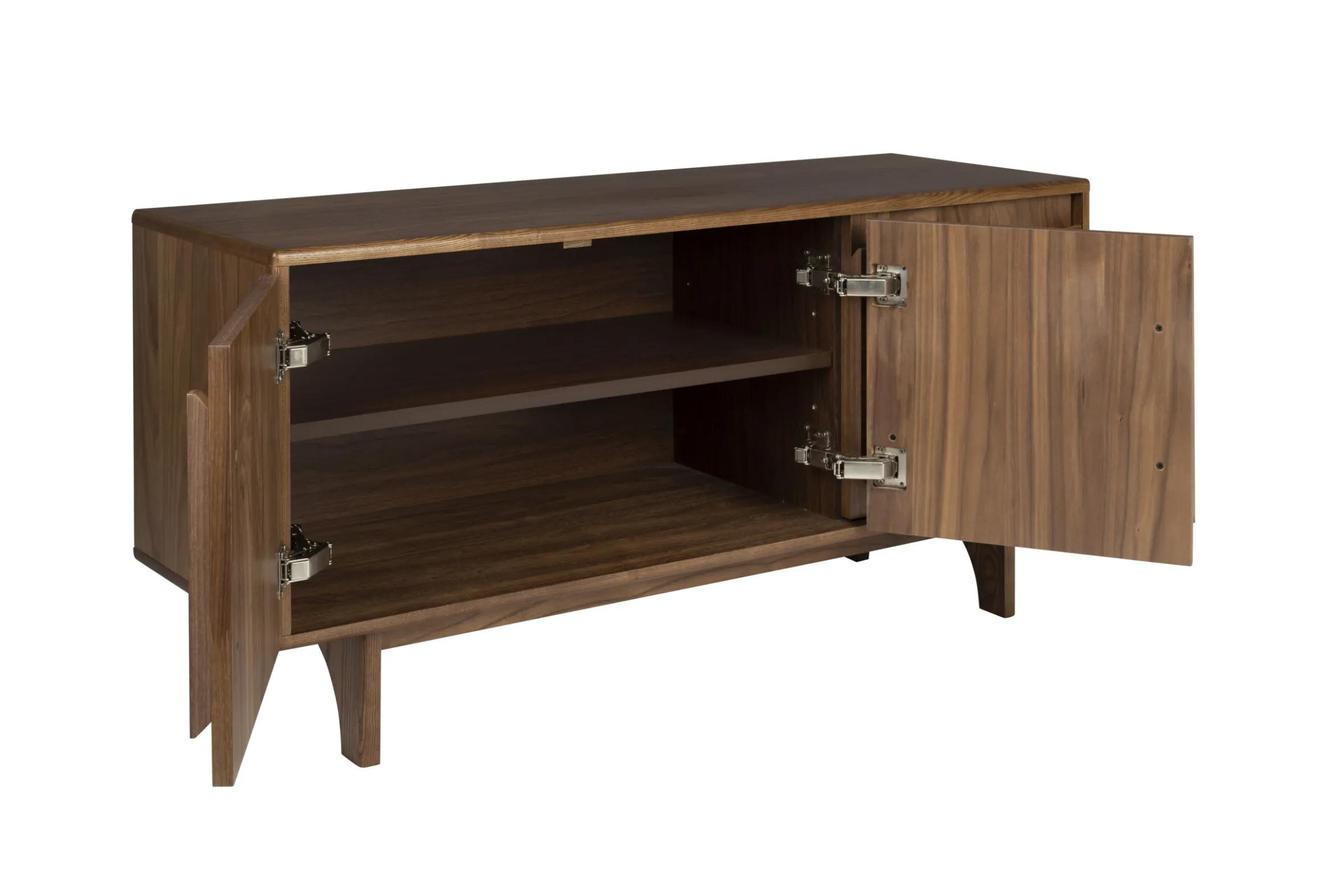 Entdecken Sie mit dem Sideboard Groove großzügigen Stauraum, ohne Kompromisse beim Stil einzugehen. Die runden Holzelemente an den Türen und die zierlichen, bogenförmigen Beine sorgen für eine einzigartige Note. Groove ist die perfekte Verschmelzung von Stil und Funktionalität und fügt sich mühelos in jeden Raum ein. Durch das Nebeneinanderstellen verschiedener Sideboards wird das Muster der Türen fortgesetzt. Die Kommoden sind aus natürlichem Holzfurnier gefertigt und werden zum Schutz ihrer Schönheit mit Öl gebeizt. Groove ist in verschiedenen Farben und Größen erhältlich, so dass für jeden Stil und Geschmack etwas dabei ist.