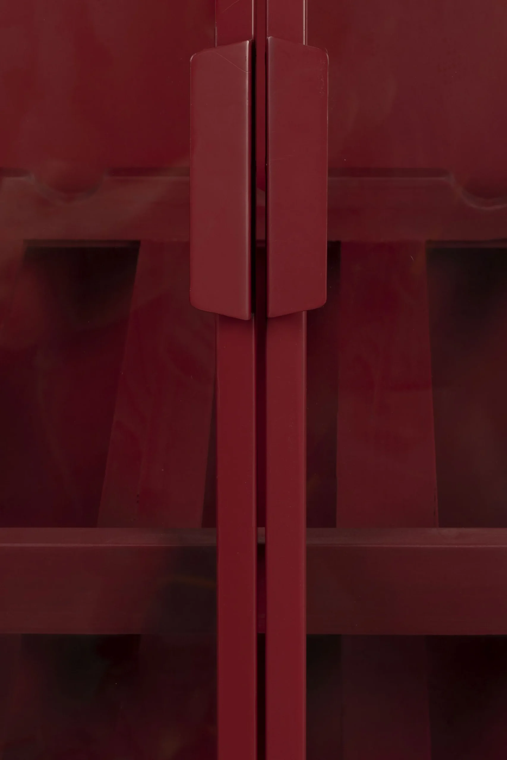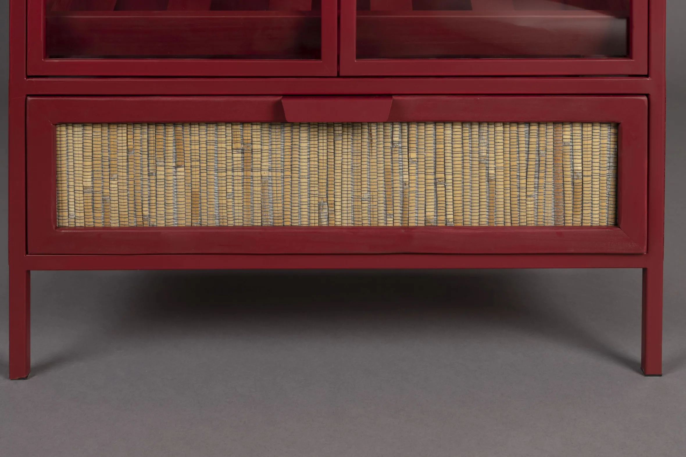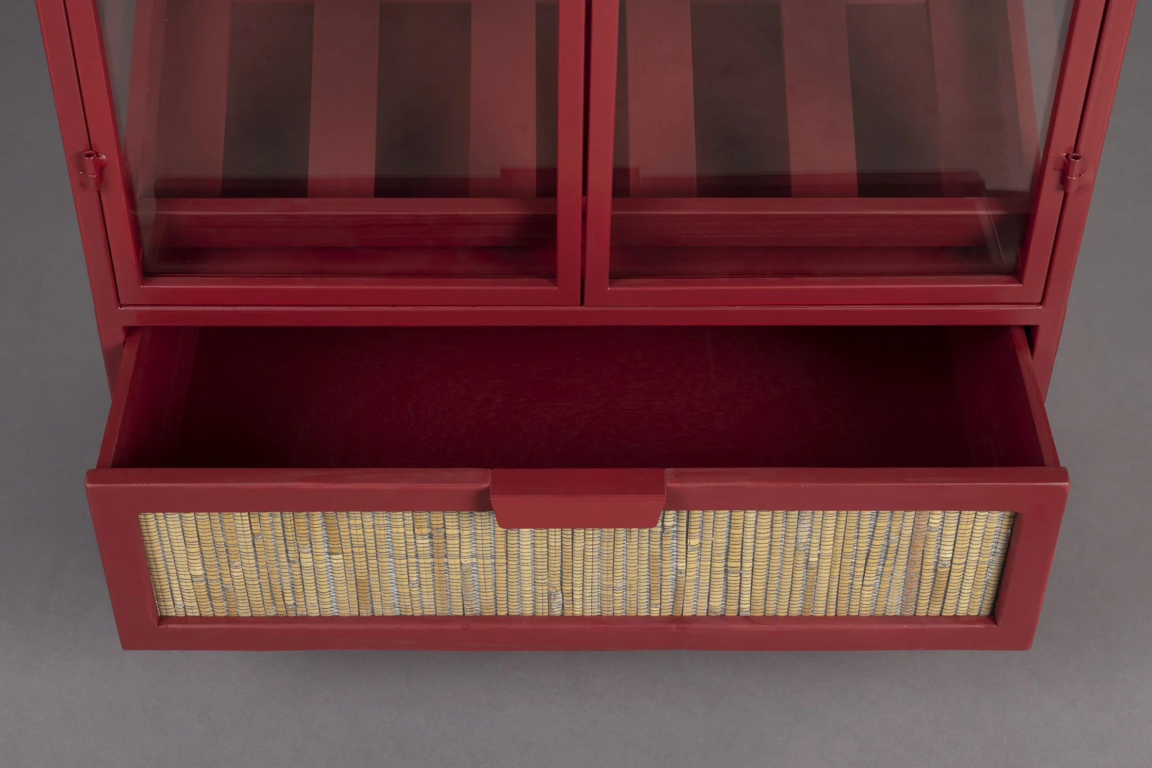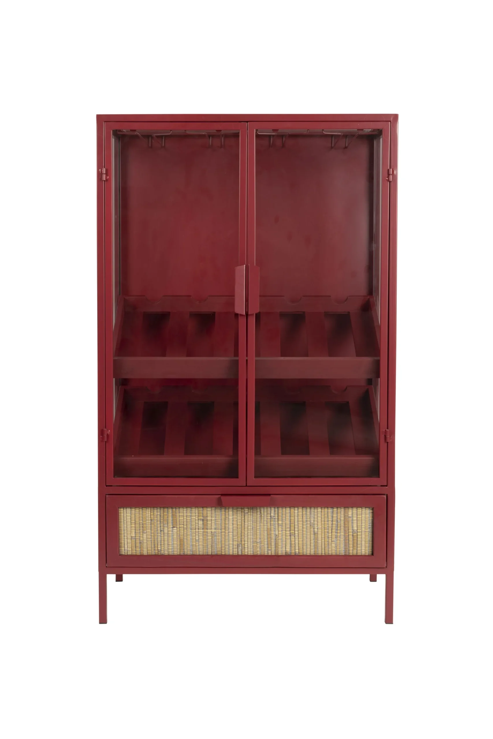 Dieser stilvolle Barschrank ist ein wahrer Blickfang in Ihrer Einrichtung! Der in warmem Rot gehaltene Schrank hat transparente GlastĂŒren, sowie eine Verglasung oben und an der Seite. Der Inhalt ist somit gut zu sehen und es fĂ€llt von allen Seiten Licht hinein. Die FĂ€cher sind angeschrĂ€gt, sodass man das Label der Flaschen leicht lesen kann. Oben befinden sich vier Schienen, in die Sie Ihre WeinglĂ€ser hĂ€ngen können. In der Schublade können Sie Ihre Werkzeuge zum Ăffnen der Flasche oder andere Barutensilien aufbewahren. Die Rattanfront fĂŒgt eine interessante textuierte Note hinzu. Der Name Mori bedeutet ‚kraftvoll‘. Ideal fĂŒr diejenigen, die sowohl FunktionalitĂ€t als auch Design suchen.