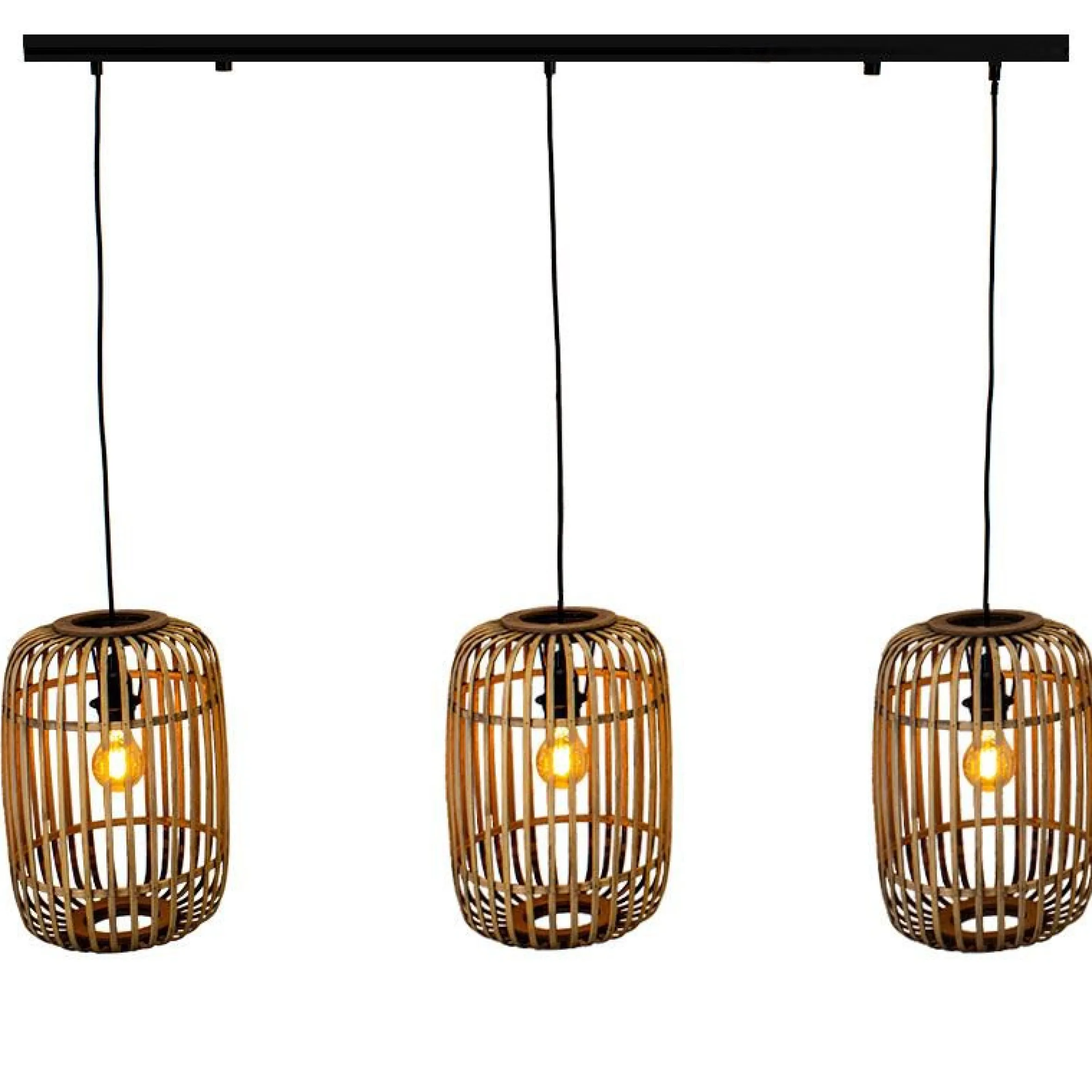 Ibiza ist eine Hängelampe, die eine angenehme Atmosphäre im Raum schafft. Sie ist aus Rattan gefertigt und vereint natürliche Materialien und ein einzigartiges Design zu einem fesselnden Ganzen. Die drei kunstfertig gearbeiteten Lampenschirme aus Holz geben durch das offene Design den Blick auf die Glühlampen frei. So verteilt sich das Licht gleichmäßig im Raum. Auch im ausgeschaltenen Zustand zieht die Lampe durch die schönen Holzschirme die Blicke auf sich. Die Rattanschirme in Kombination mit den Glühfadenbirnen und den Stoffkabeln lässt die Lampe zum wortwörtlichen Highlight Ihres Zuhauses werden.