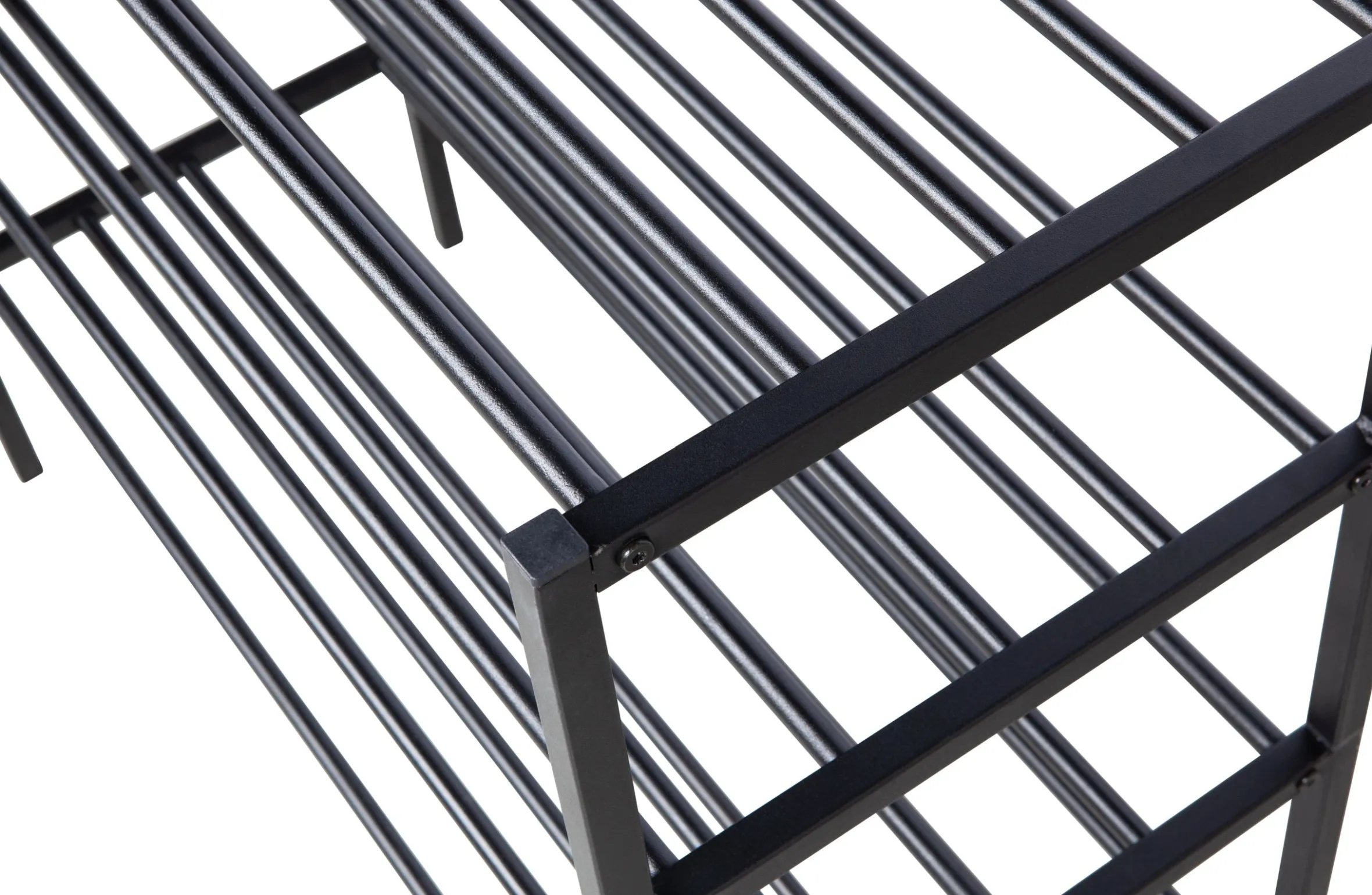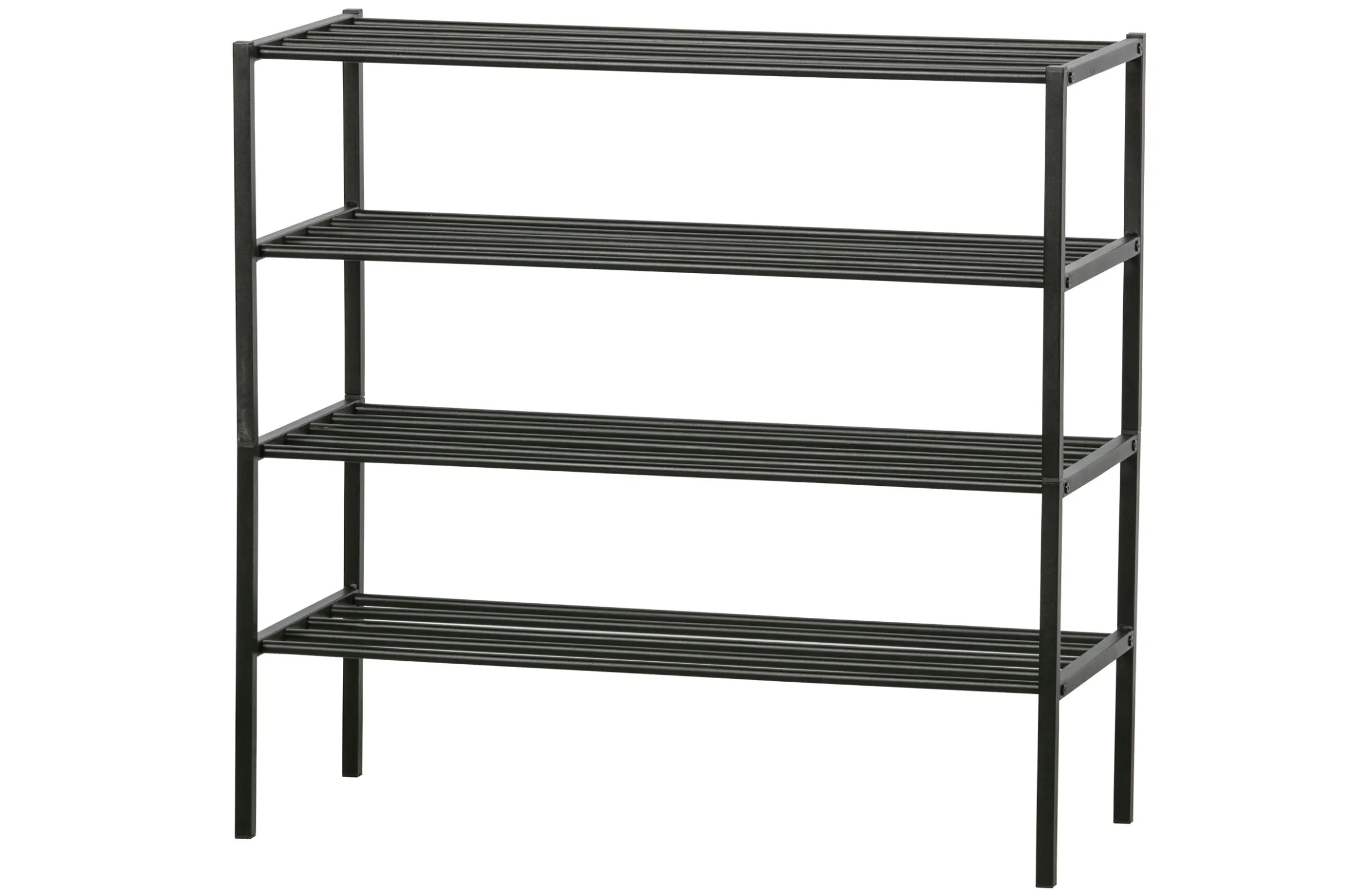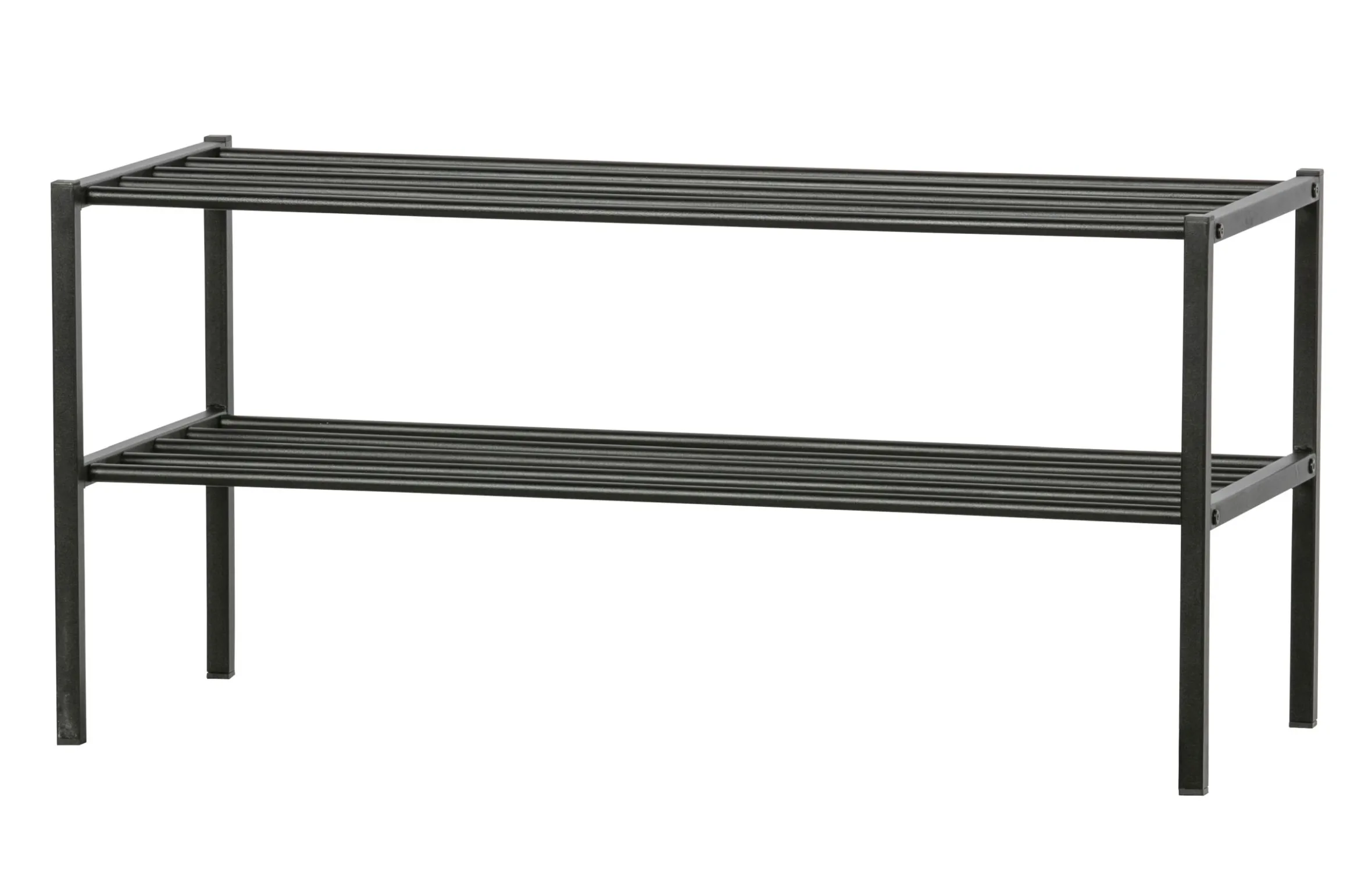 Das Schuhregal Ferro ist ein eigener Entwurf aus der Kollektion der niederländischen Marke WOOOD. Ferro ist aus Metall gefertigt und hat eine pulverbeschichtete, schwarze Oberfläche. Das praktische an diesem Metallregal ist, dass es stapelbar und somit beliebig erweitert werden kann. Durch die verschiedenen Regalhöhen ist dann auch schnell mal eine komplette Garderobenwand mit Platz für Jacken gebaut. Die Höhe der Fächer beträgt 18 cm, die maximale Tragfähigkeit beläuft sich auf 15 kg.