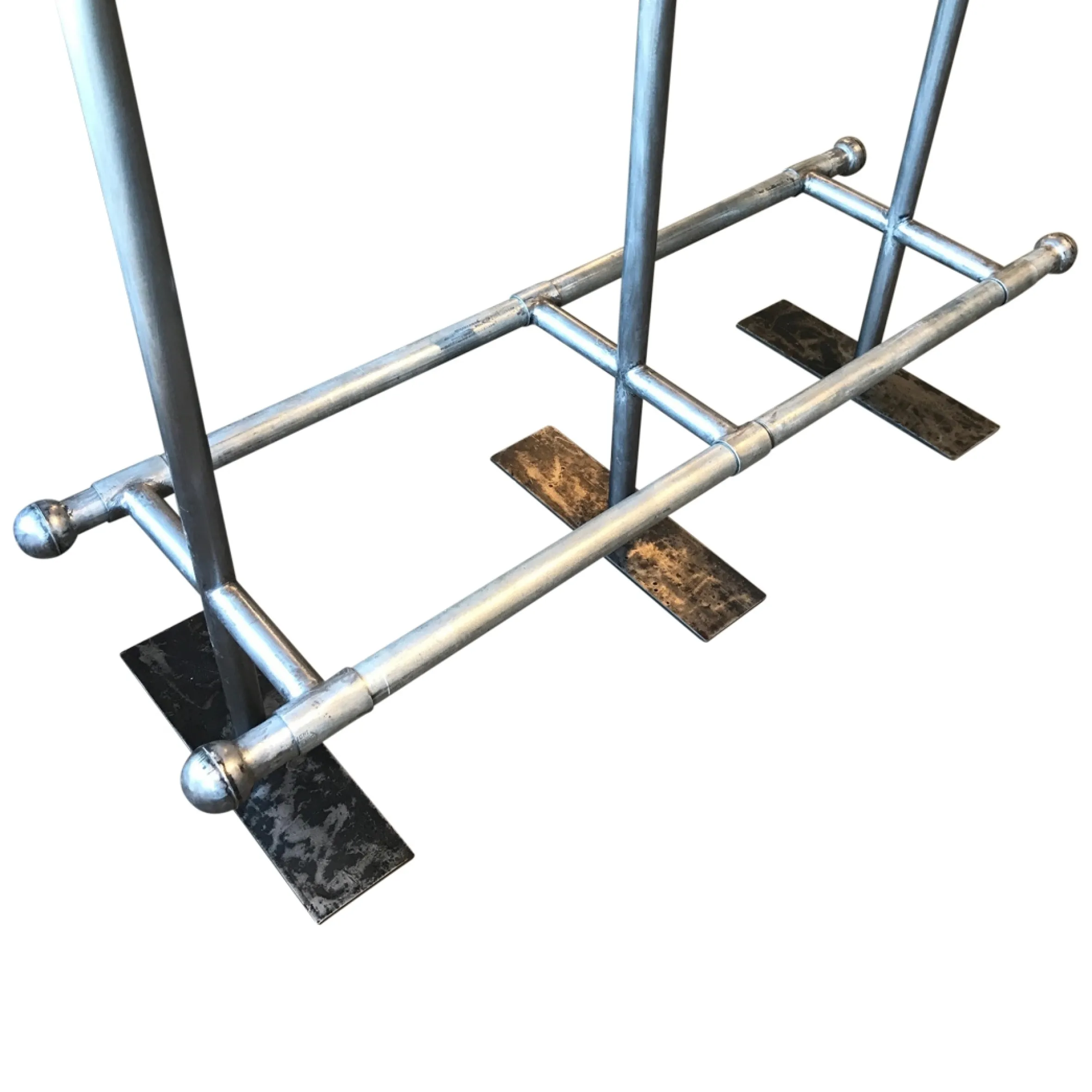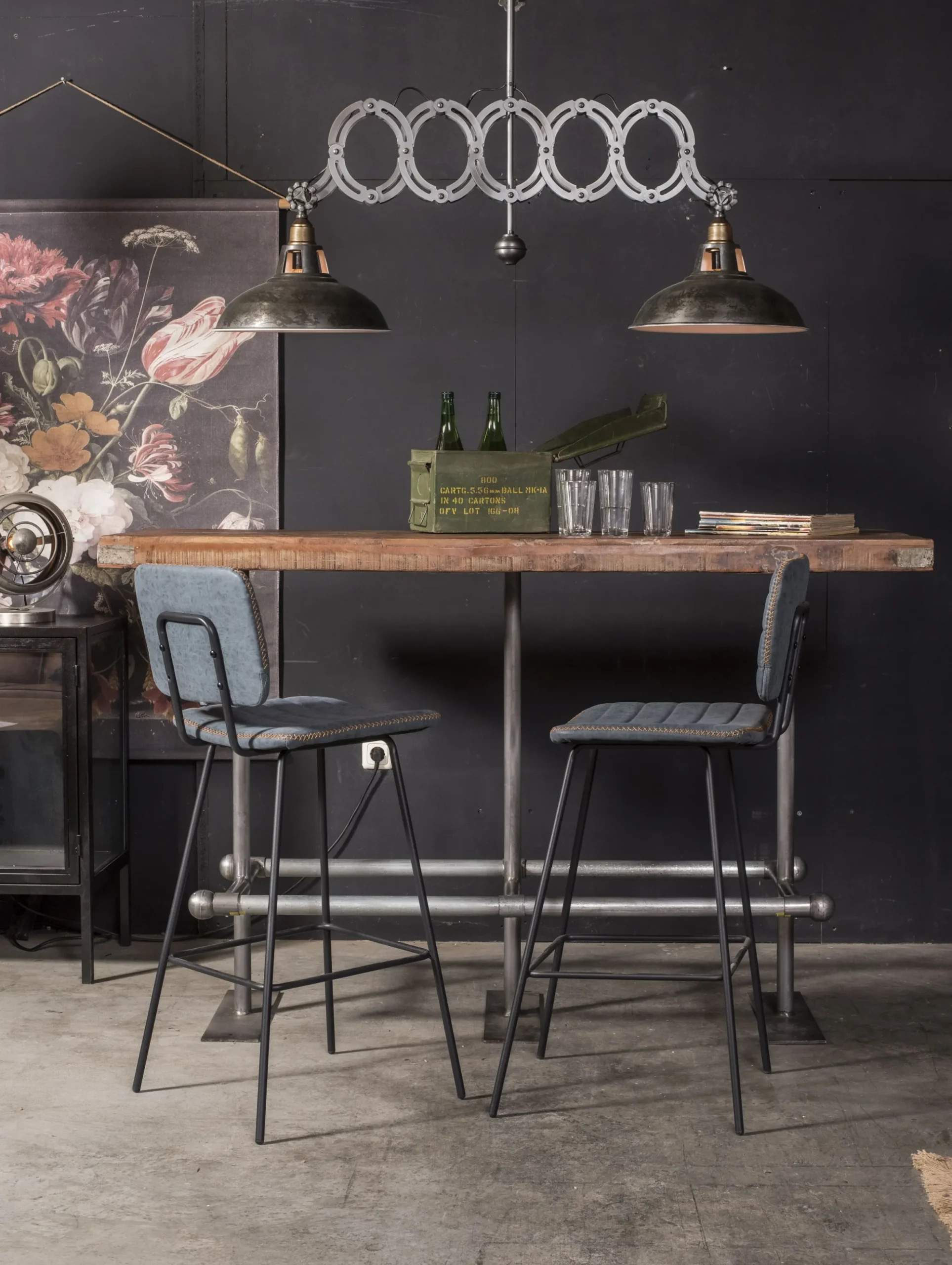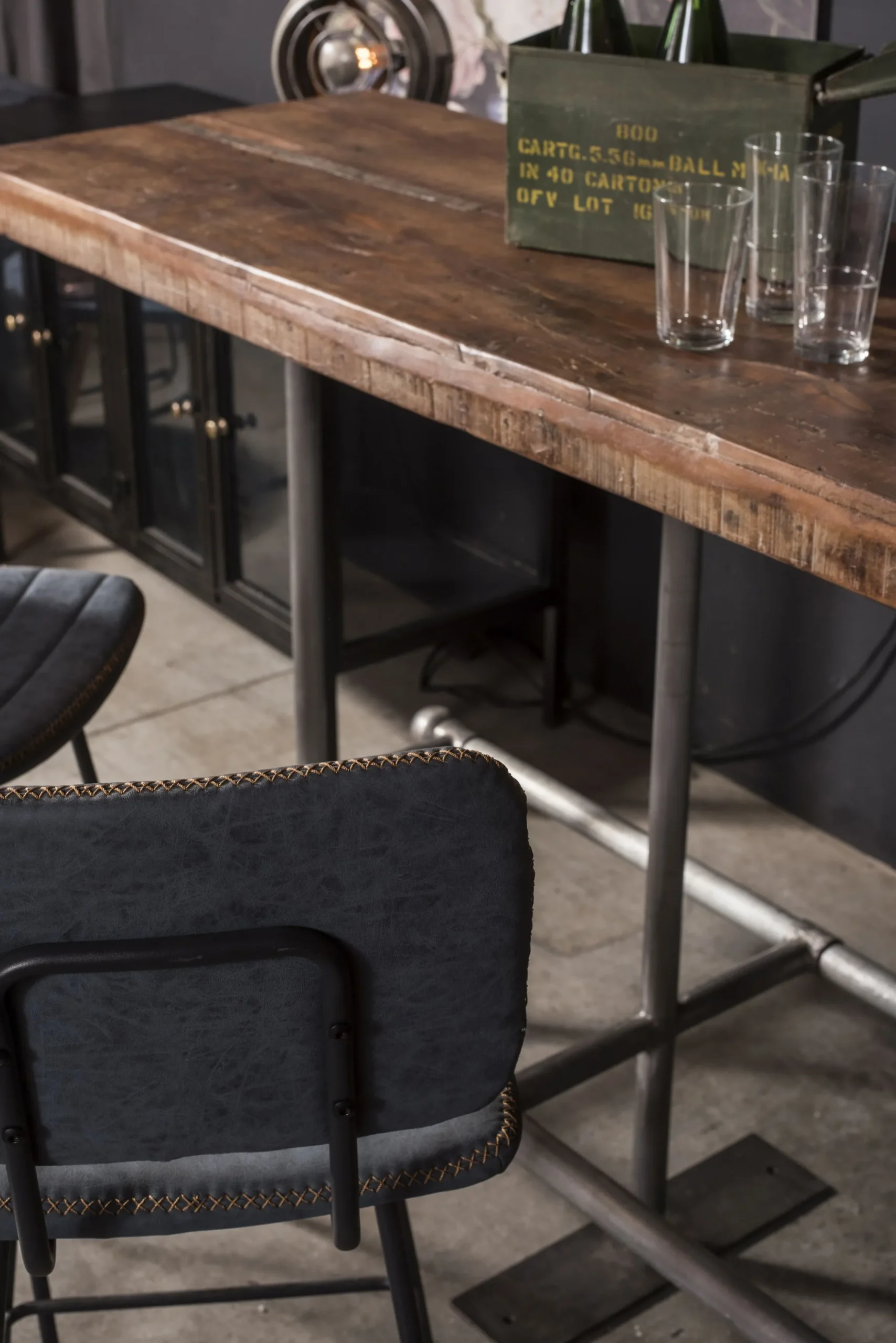 Der Stehtisch Factory ist mit seinen großzügigen Maßen ein perfekter Begleiter um Mahlzeiten allein oder mit der Familie zu genießen. Durch die Höhe verbreitet er den Flair eines Cafes, das Material und Design kommt im Industrial-Look daher. Die Metallrohre sind auf der richtigen Höhe um die Füße abzustellen. Die Platte im Vintagelook ist in einem warmen Holzton gehalten und sehr unempfindlich. Stylisches Teil für das Esszimmer, den Barkeller und natürlich für die Gastronomie.