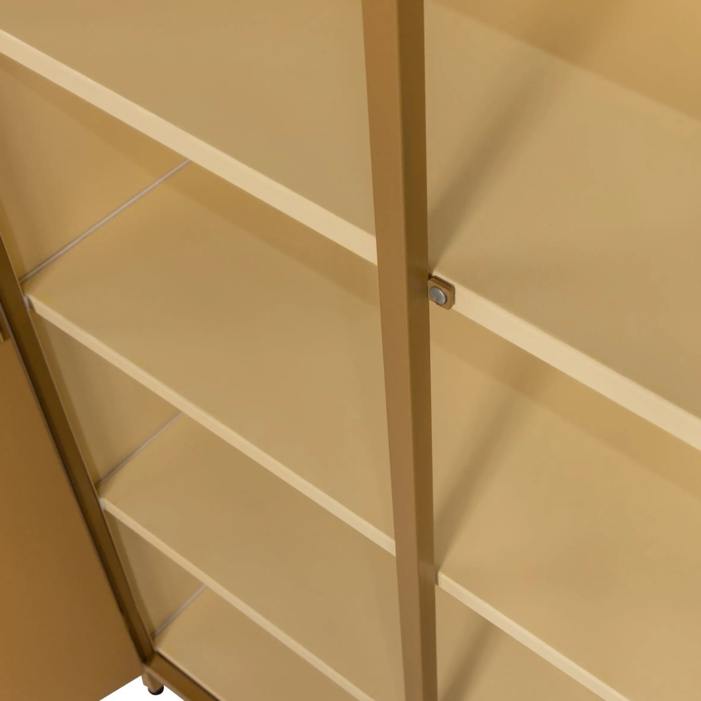 Diese robuste im industrial Style gefertigte Vitrine stammt aus der Kollektion der Firma BePureHome. Sie bietet mit sechs Fächern ausreichend Platz für Gläser, Geschirr oder ähnliches. Die Vitrine ist aus Metall mit einer trendigen, matten Beschichtung gefertigt, die Türen sind mit gehärtetem Glas und stabilen Metallgriffen ausgestattet. Die inneren Regale erstrecken sich über die gesamte Breite. Die Höhe der Fächer beträgt 29-34 cm, die Tragfähigkeit pro Regal 20 kg.