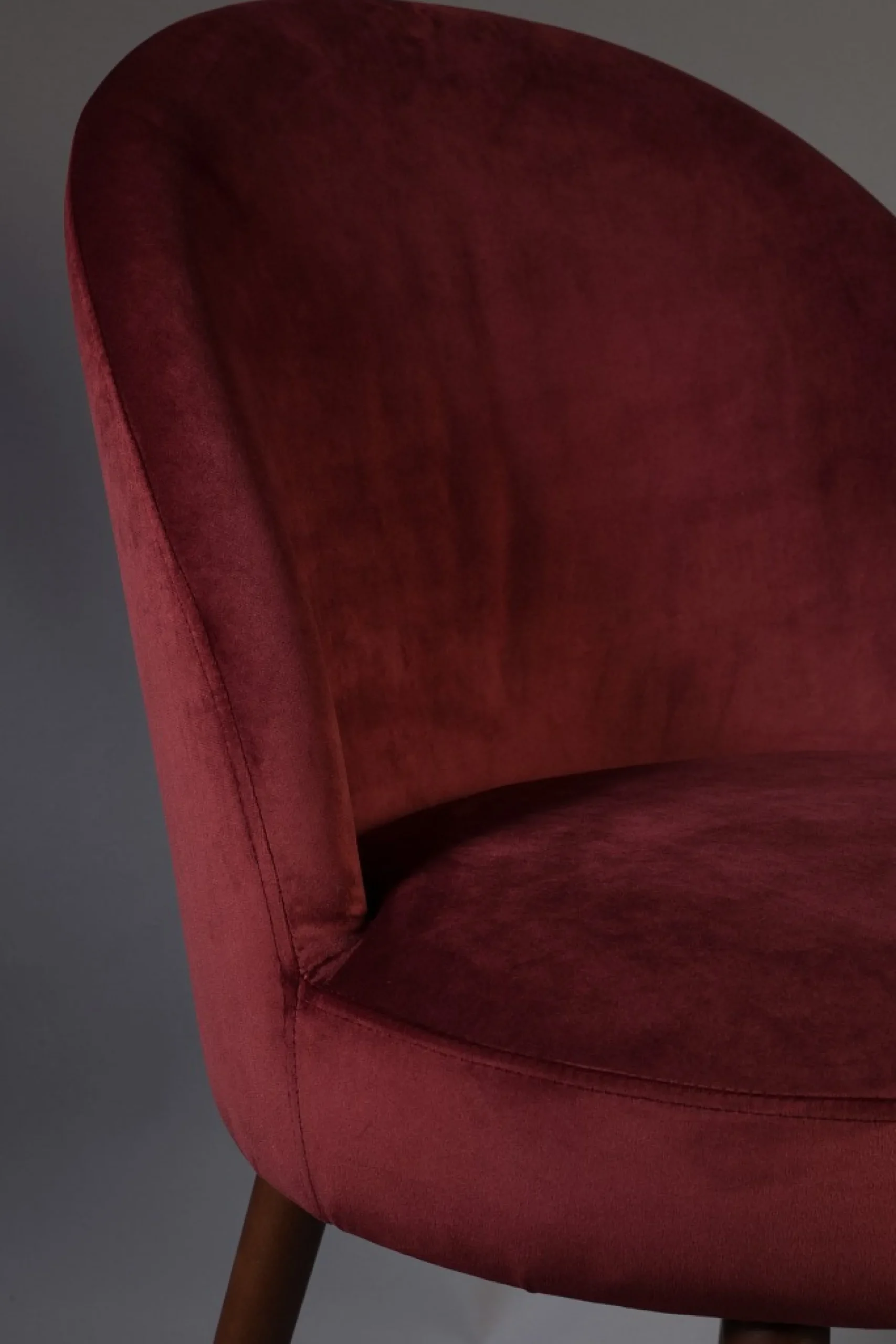 Satte Farbtöne und samtiges Material – Barbara ist ein außergewöhnlicher Stuhl, der sich beim sitzen weich an Sie schmiegt. Der warme Samtlook in Kombi mit den Buchenholzbeinen, die abgeschrägte runde Rückenlehne und die breite Sitzfläche ergeben zusammen eine klassische Schönheit an der Sie auch in Jahren noch Freude haben. Der luxuriöse Samtstoff rundet das Design ab. Wählen Sie Ihre Farben und kombinieren Sie diese miteinander.